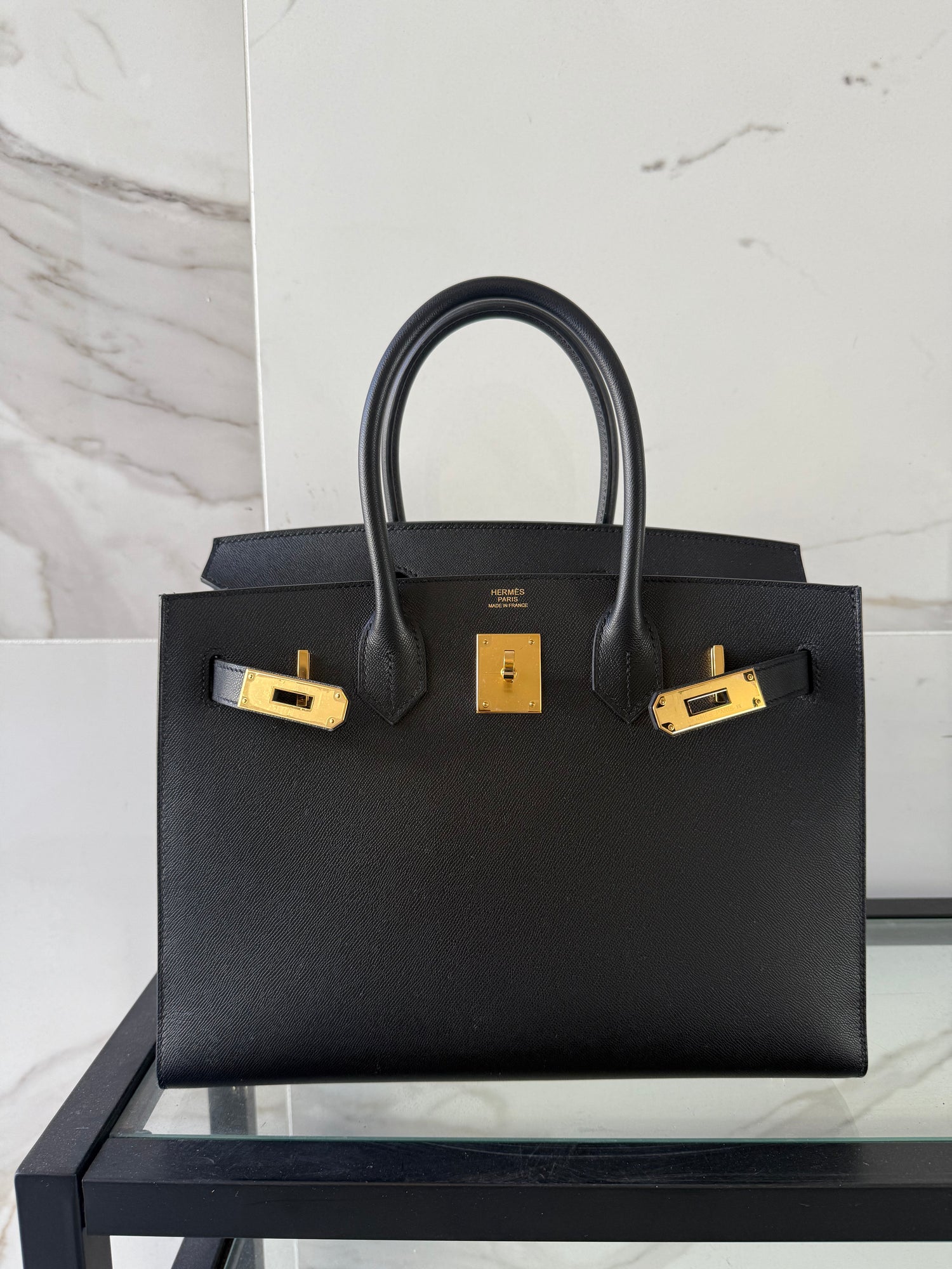 Hermes Birkin 30 Veau Madame Noir. Size 30cm with sellier stitching and gold hardware. Full set - box, dust bag, key, clochette, invoice.