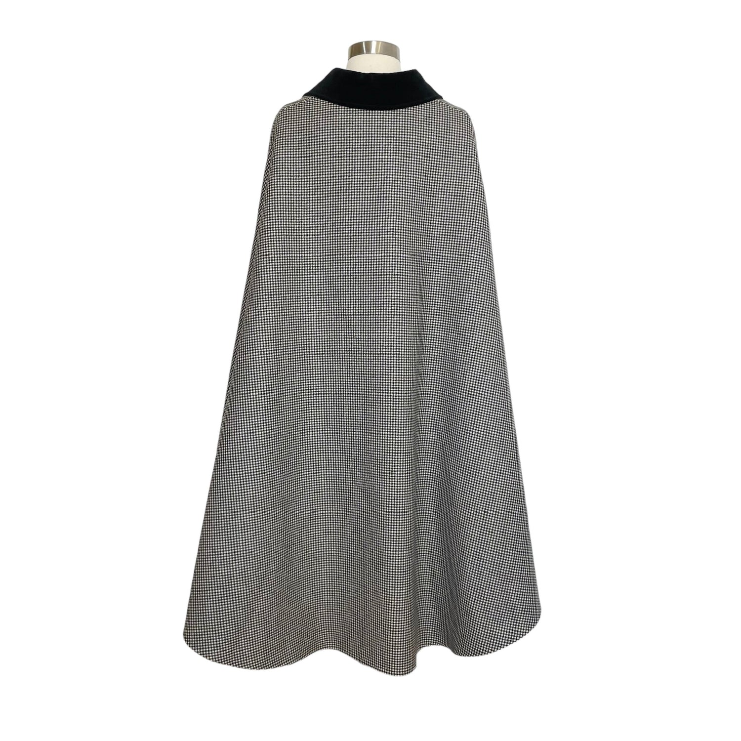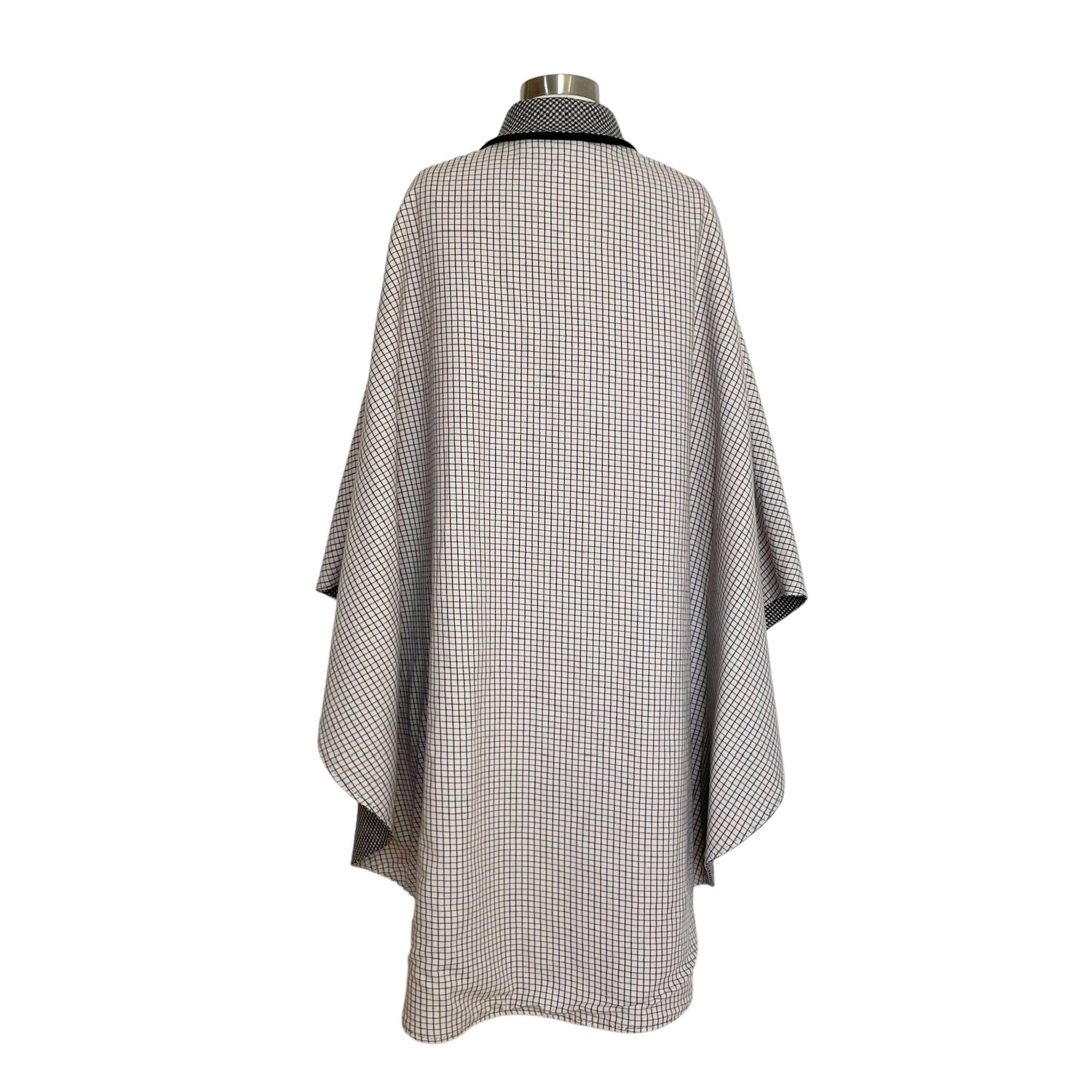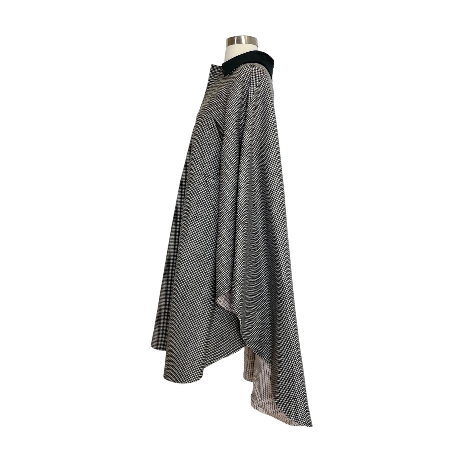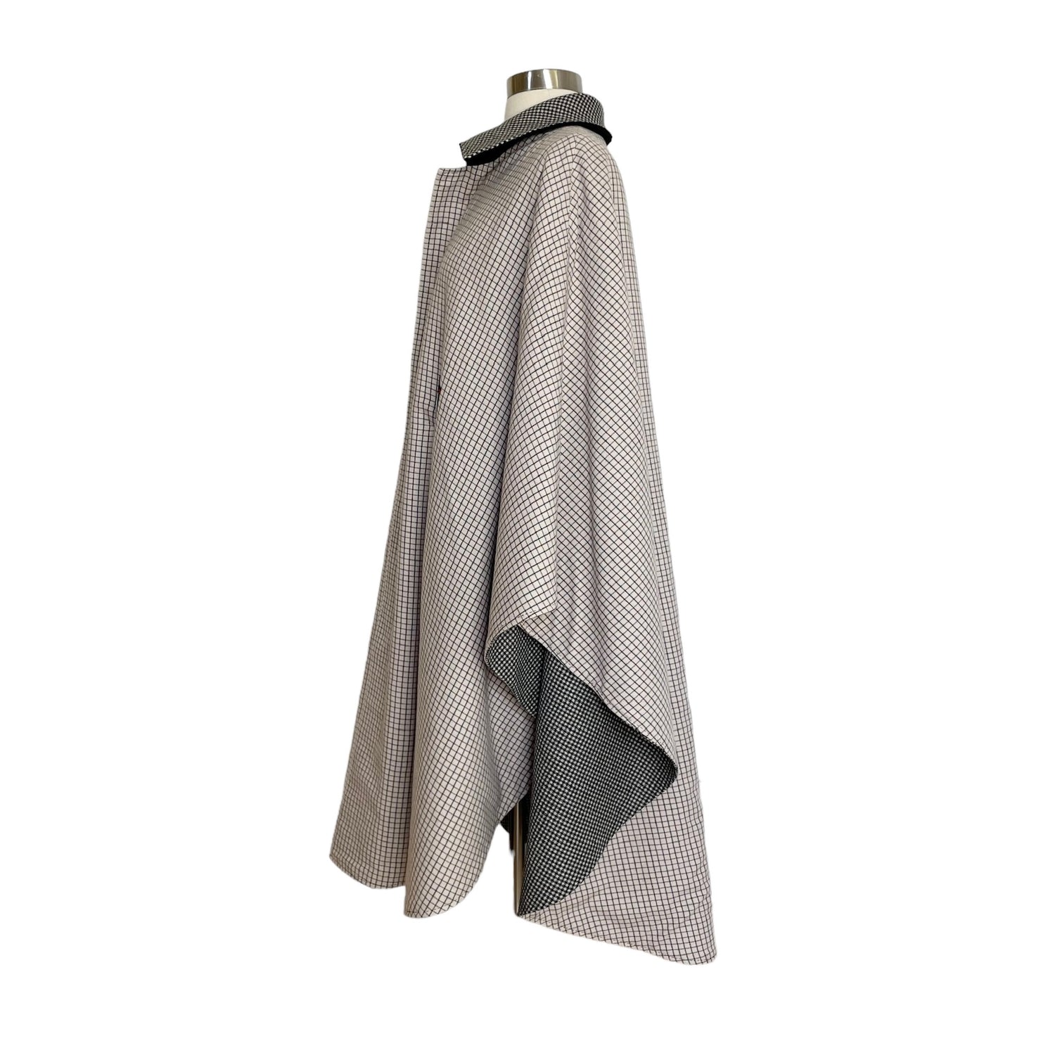 Gucci reversible houndstooth and plaid cape with collar and buttons down the front. Slit pockets at side. Designer size 44