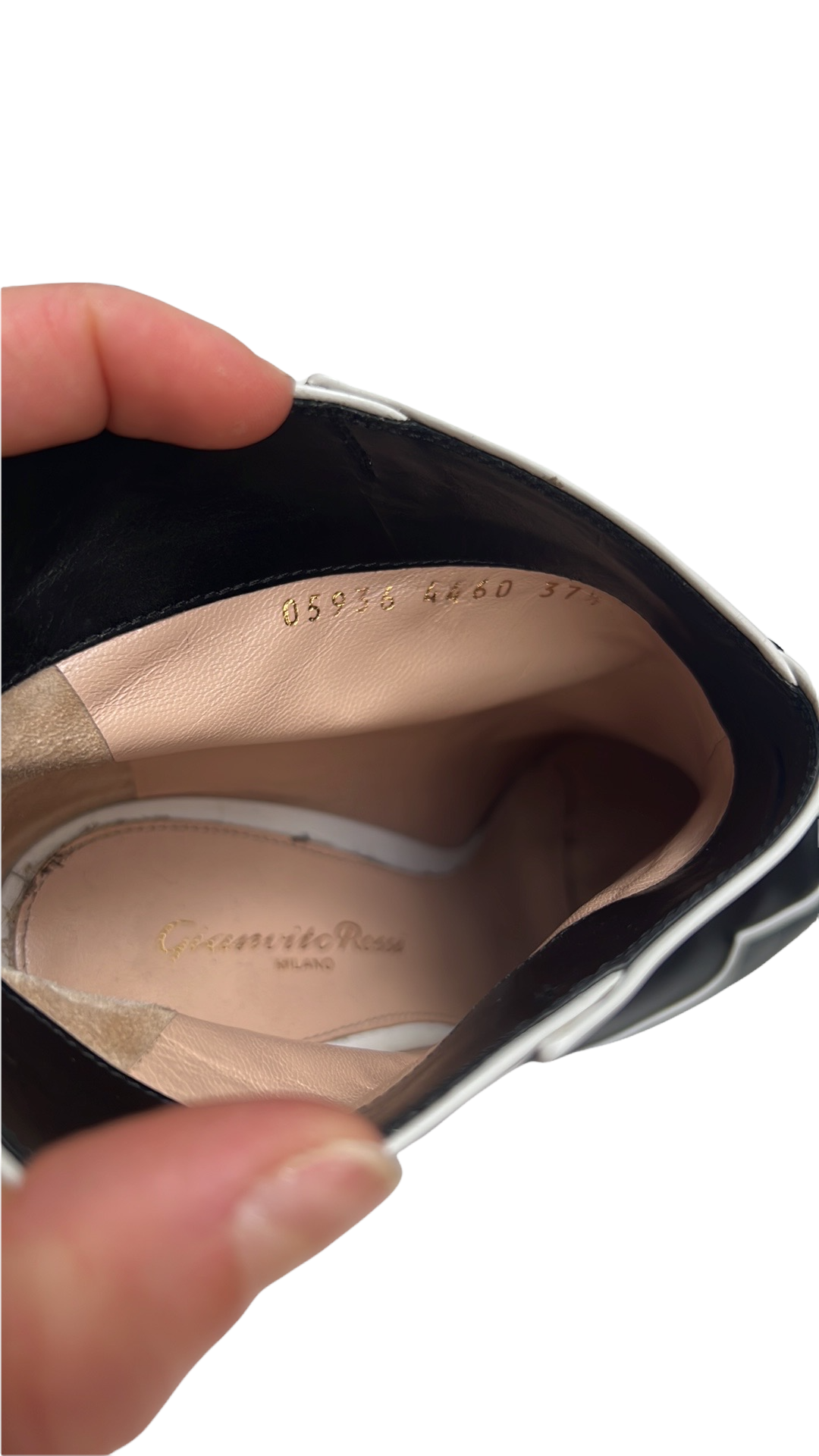 Cute and Edgy pair of Black Leather boots by Gianvito Rossi. Size 37.5.