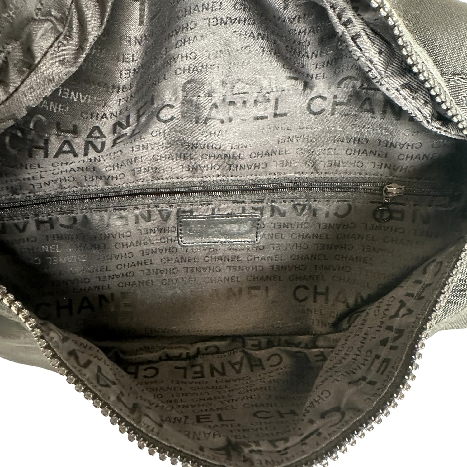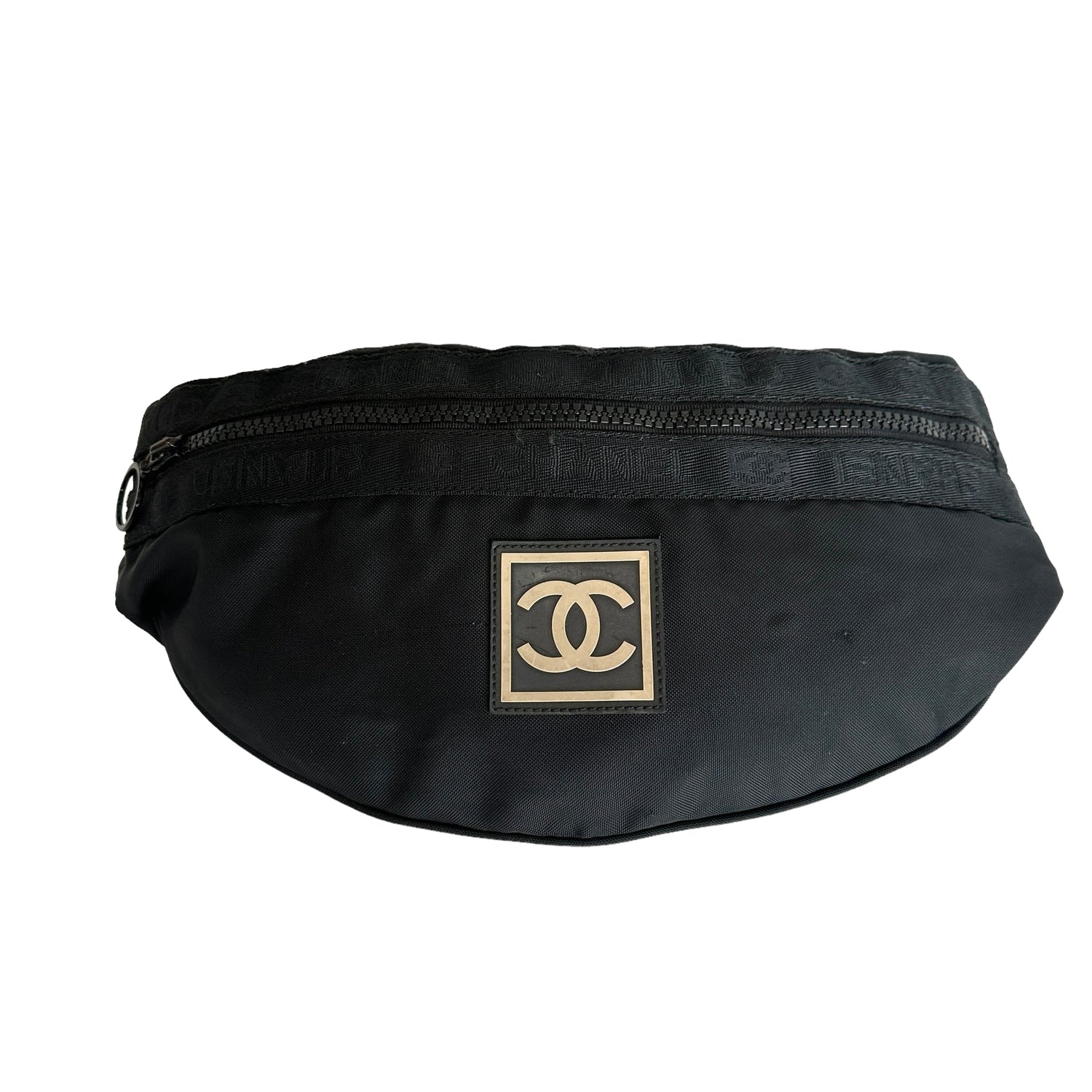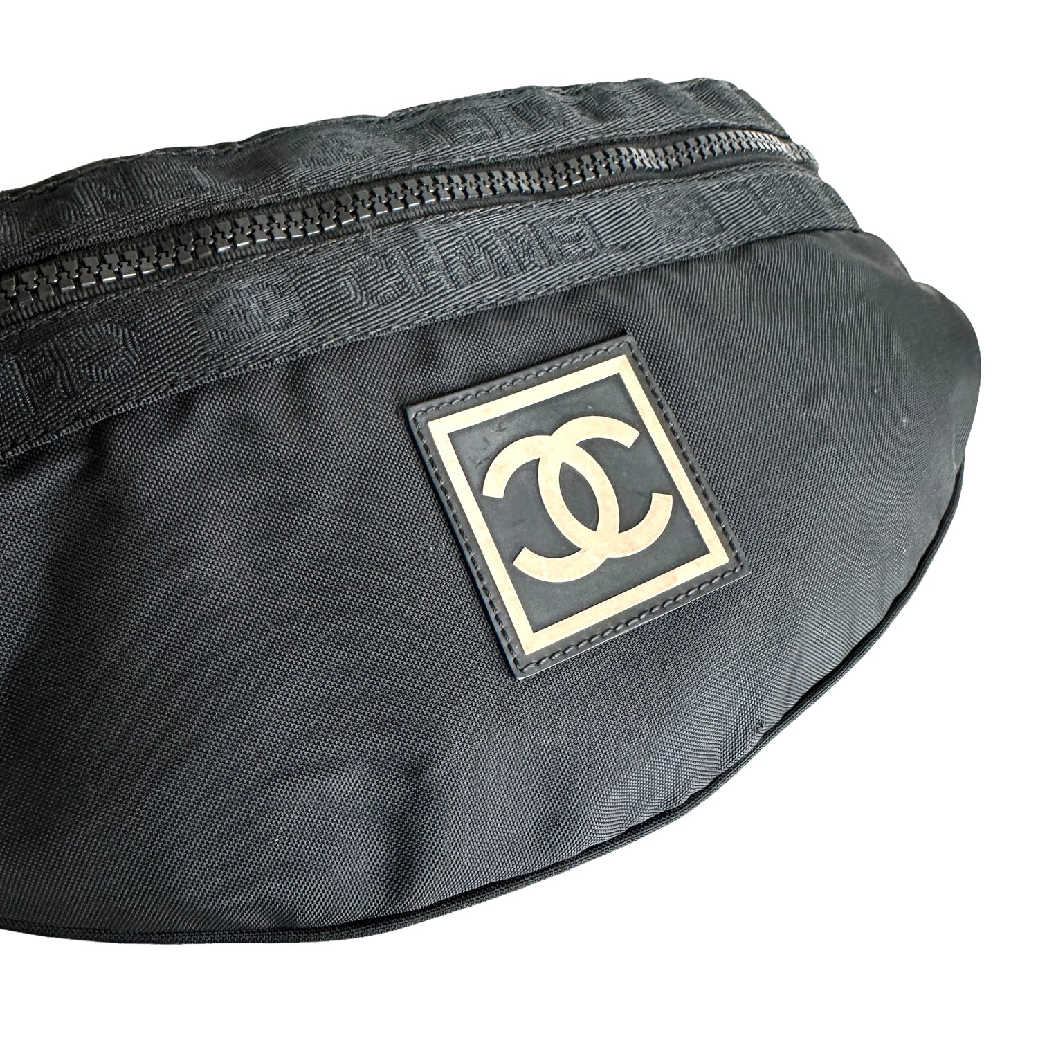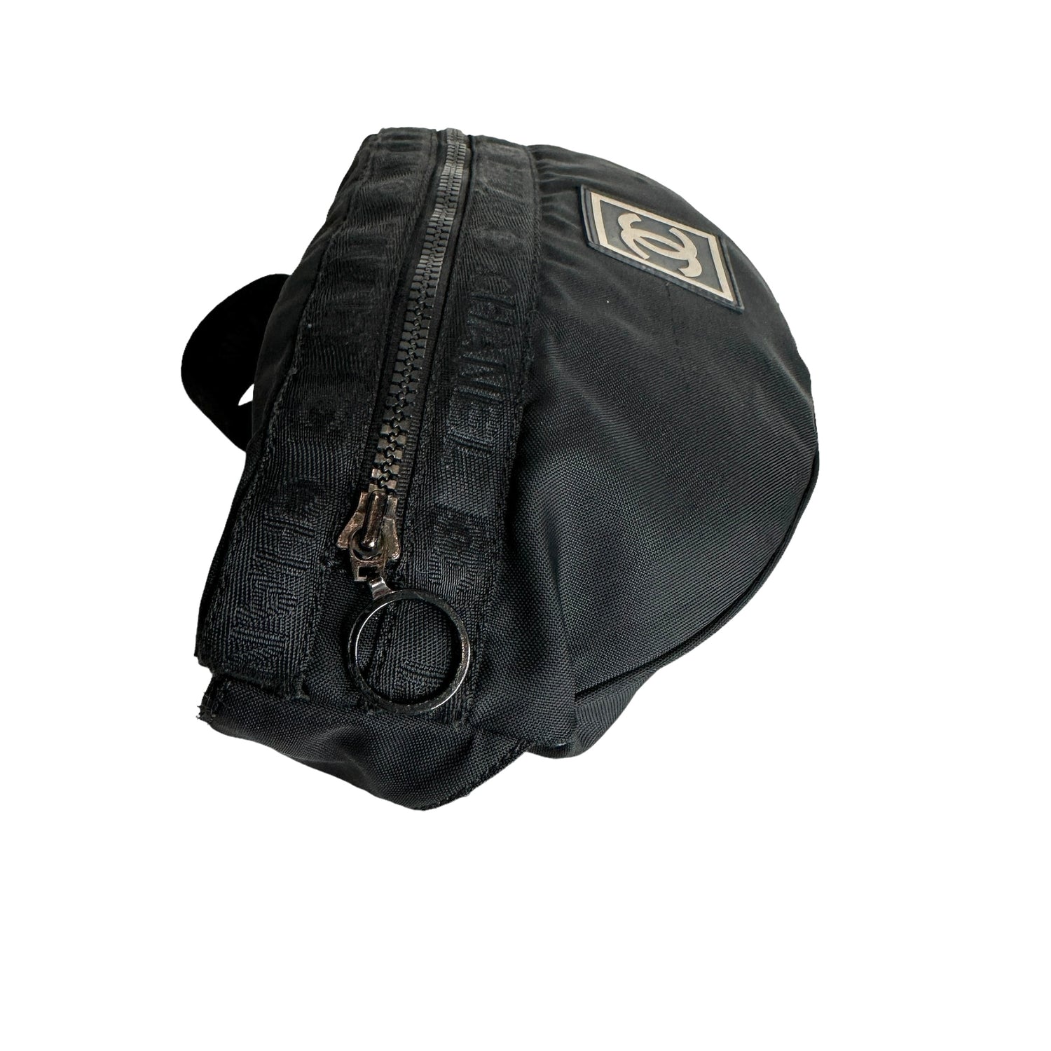 Chanel Identification bum bag. 2004 by Karl Lagerfeld. Black nylon with CC logo patch at front. Zipper closure. Logo canvas lining. Interior zipper pocket.