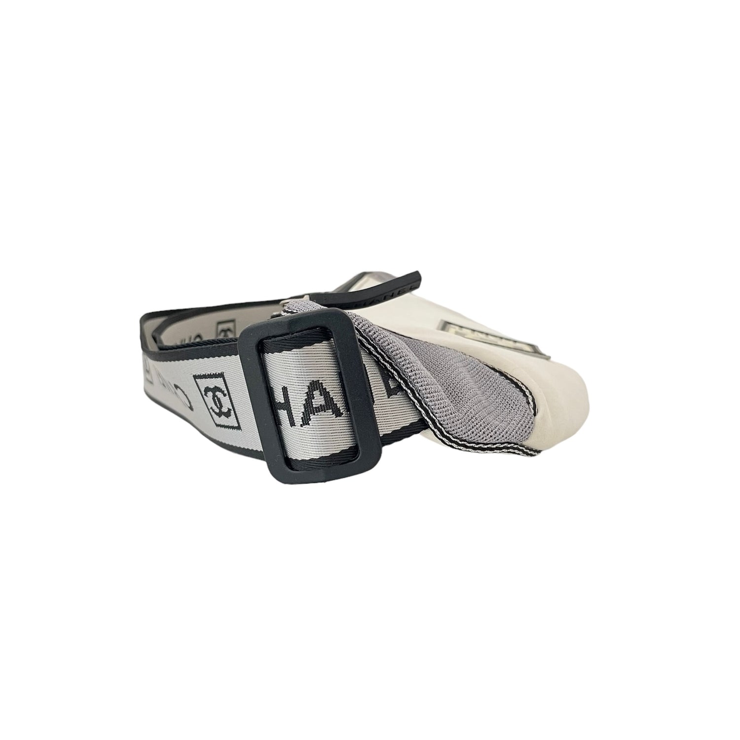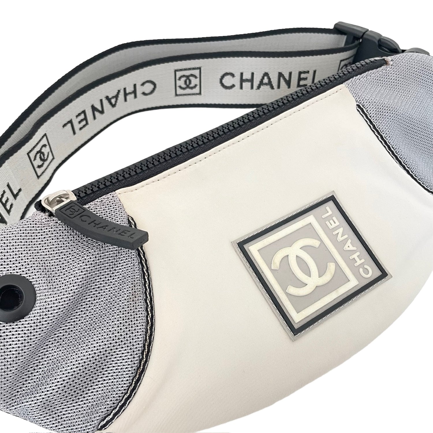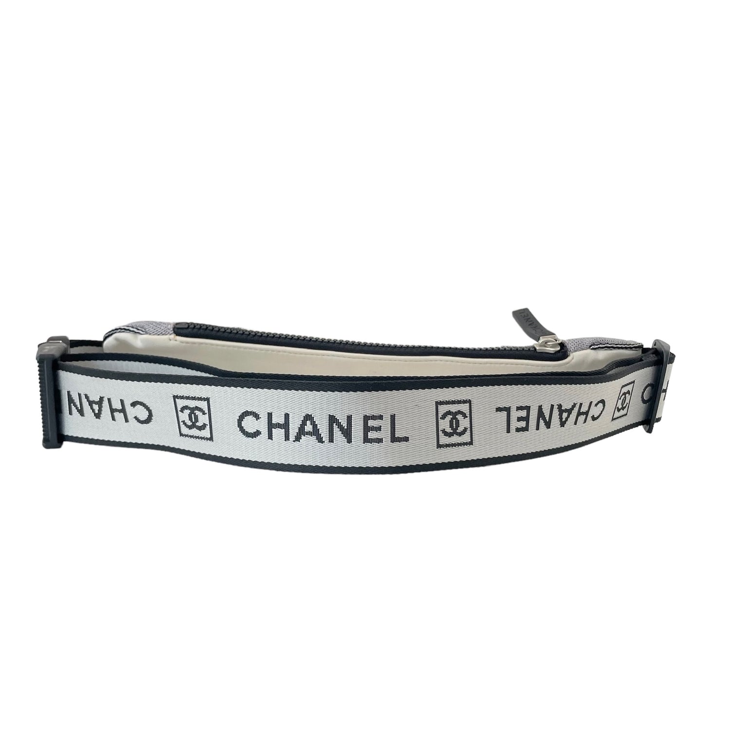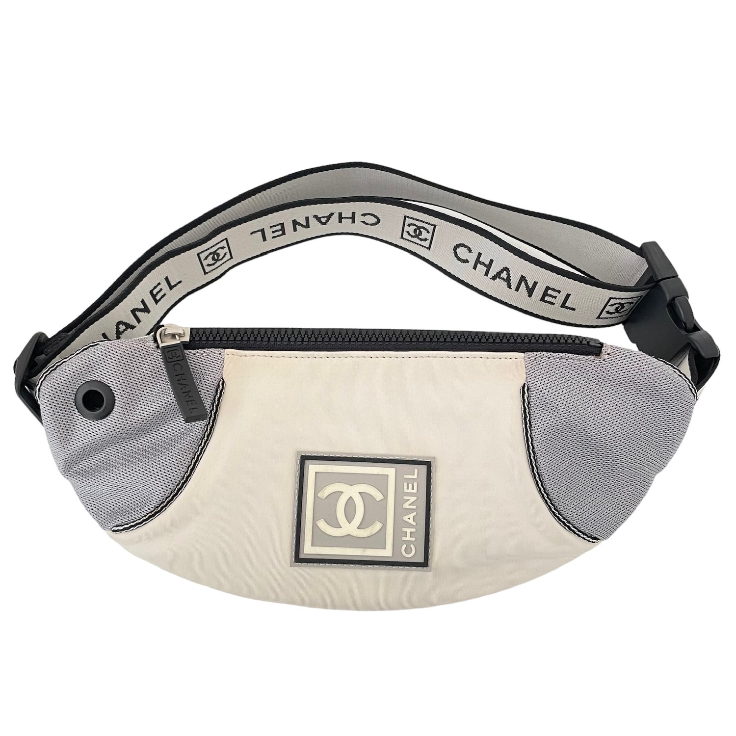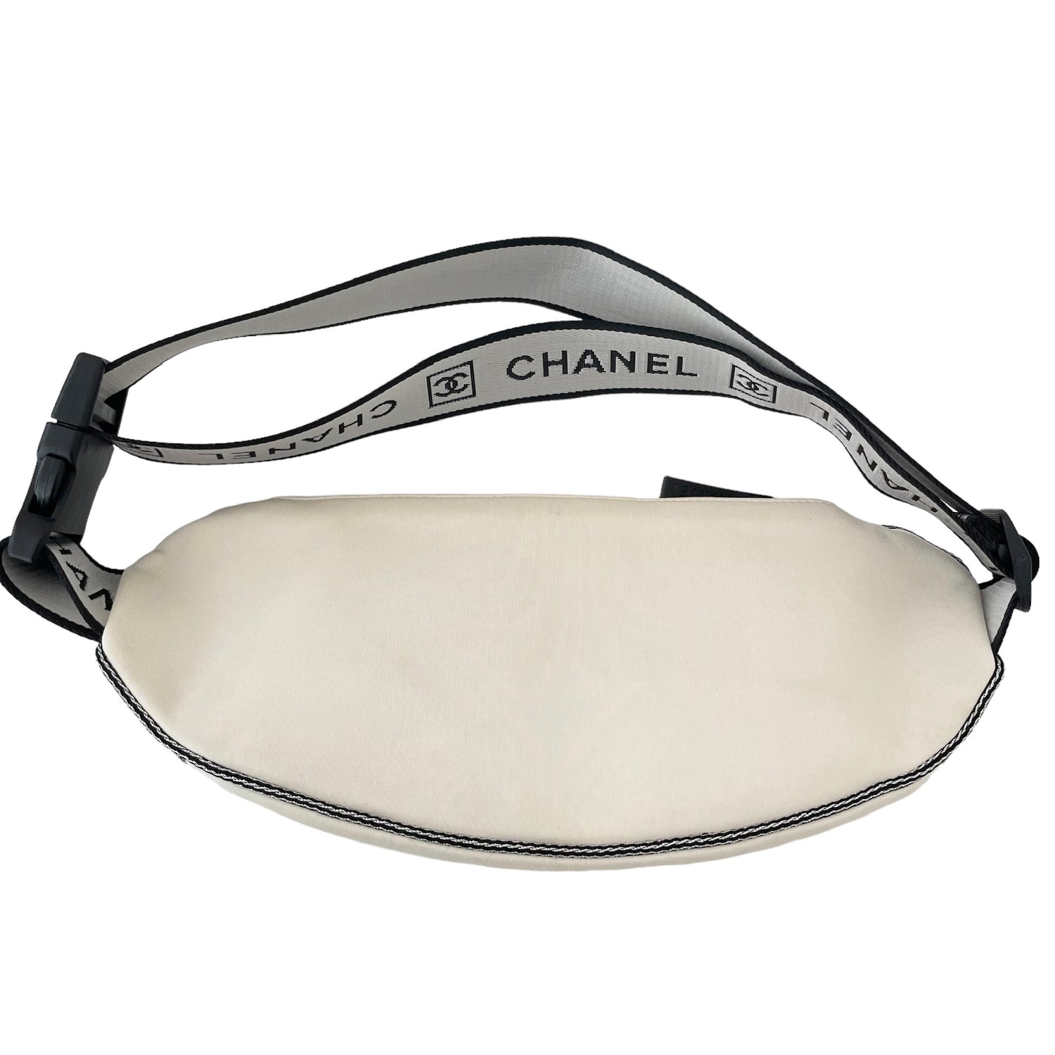 Chanel neoprene and nylon belt bag. Identification logo at front. Logo nylon adjustable strap. Easy to pack as it folds flat and great for travels and adventures!
