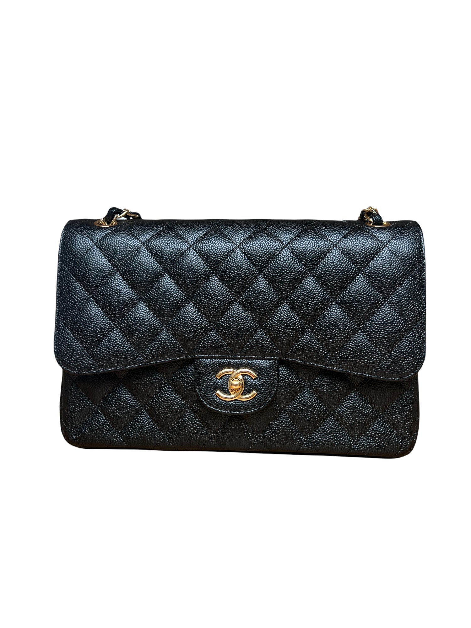 Chanel Shoulder Bag by Karl Lagerfeld, Black Caviar Leather and gold-tone hardware.