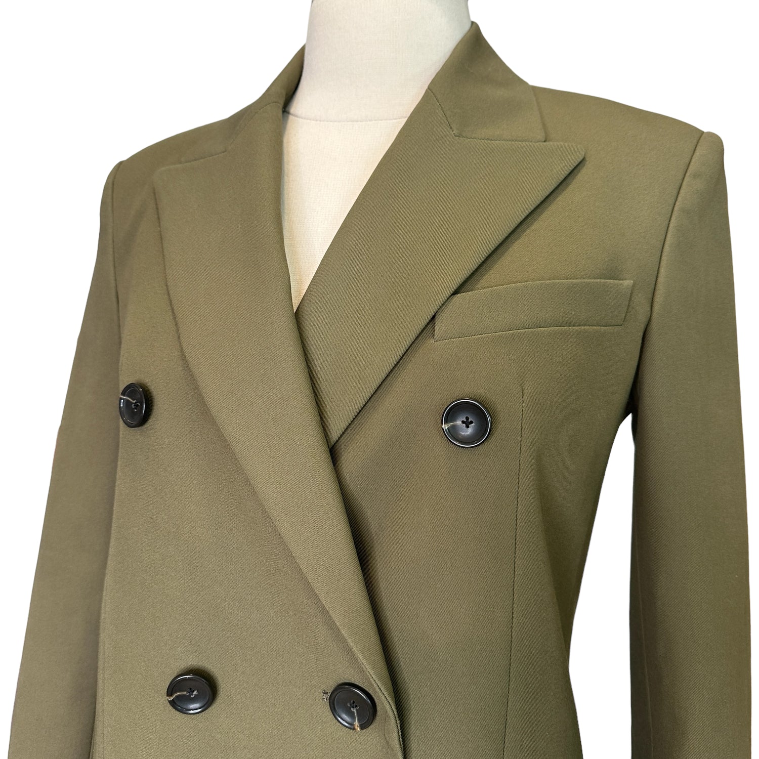 Maria McManus kaki blazer. Double breasted. Pointed collar. Designer size 0.