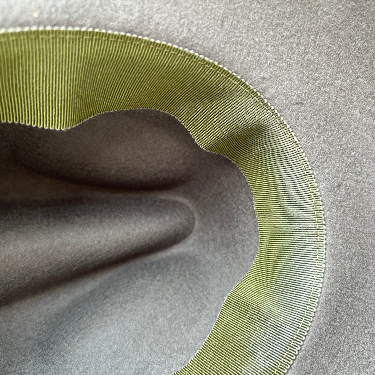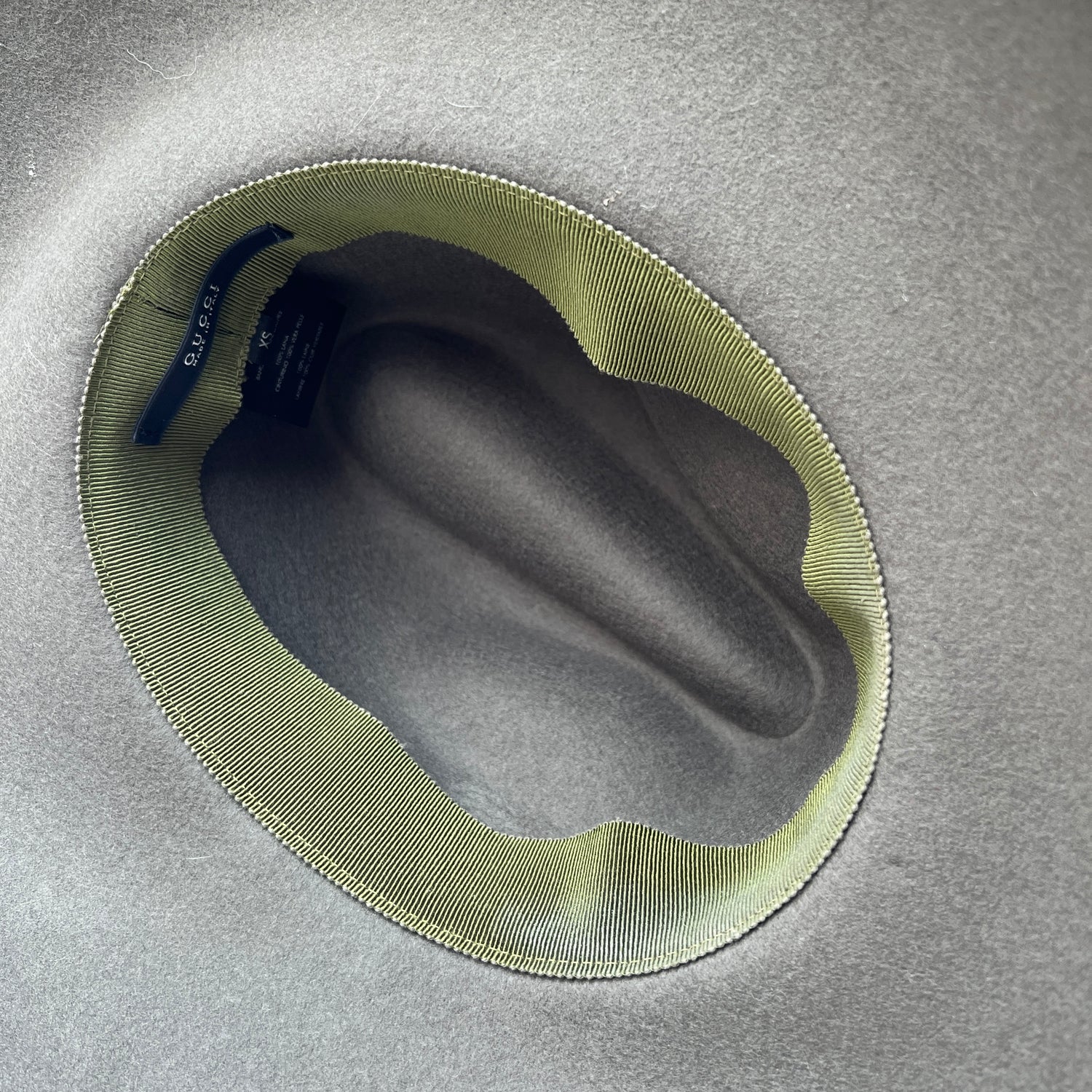 Gucci kaki felt hat. Leather detail and gold-tone buckle. Designer size XS.