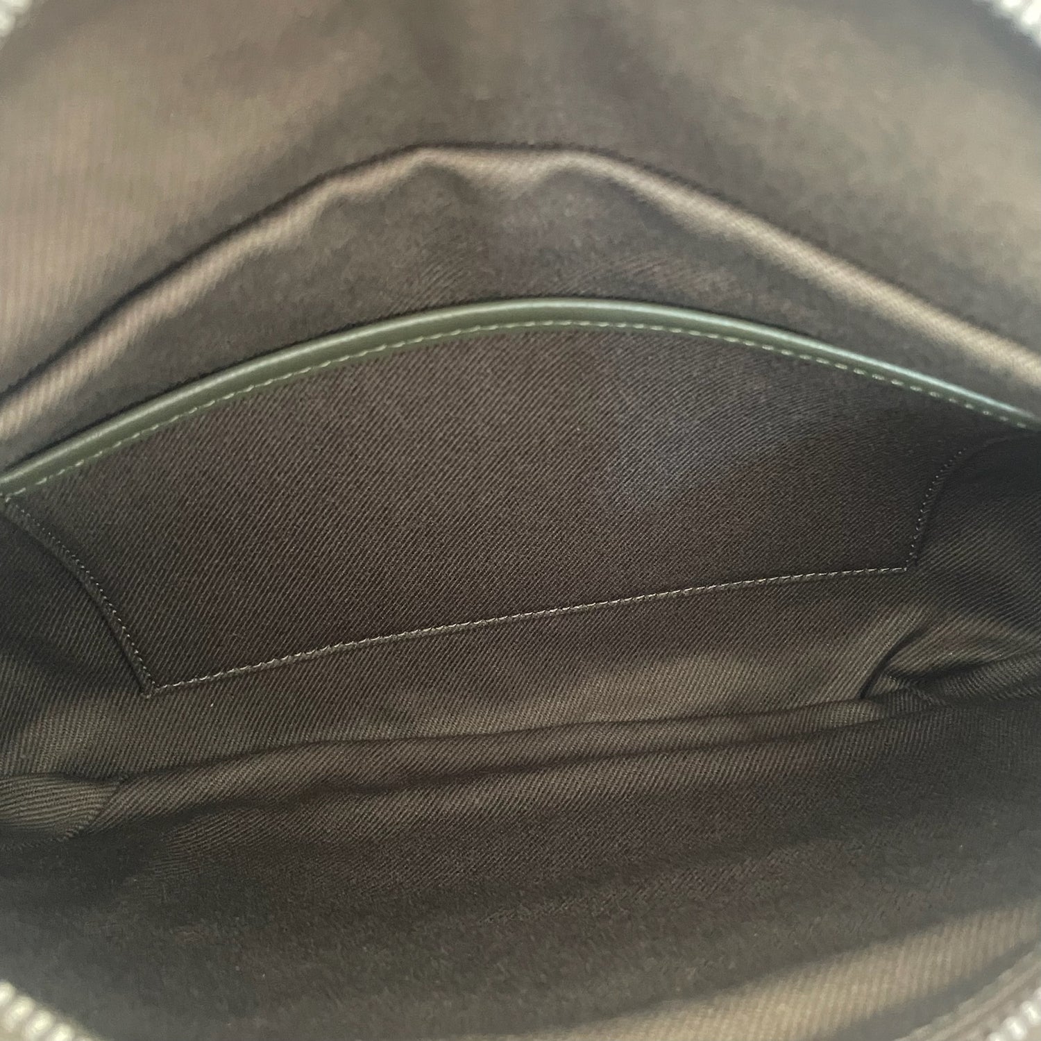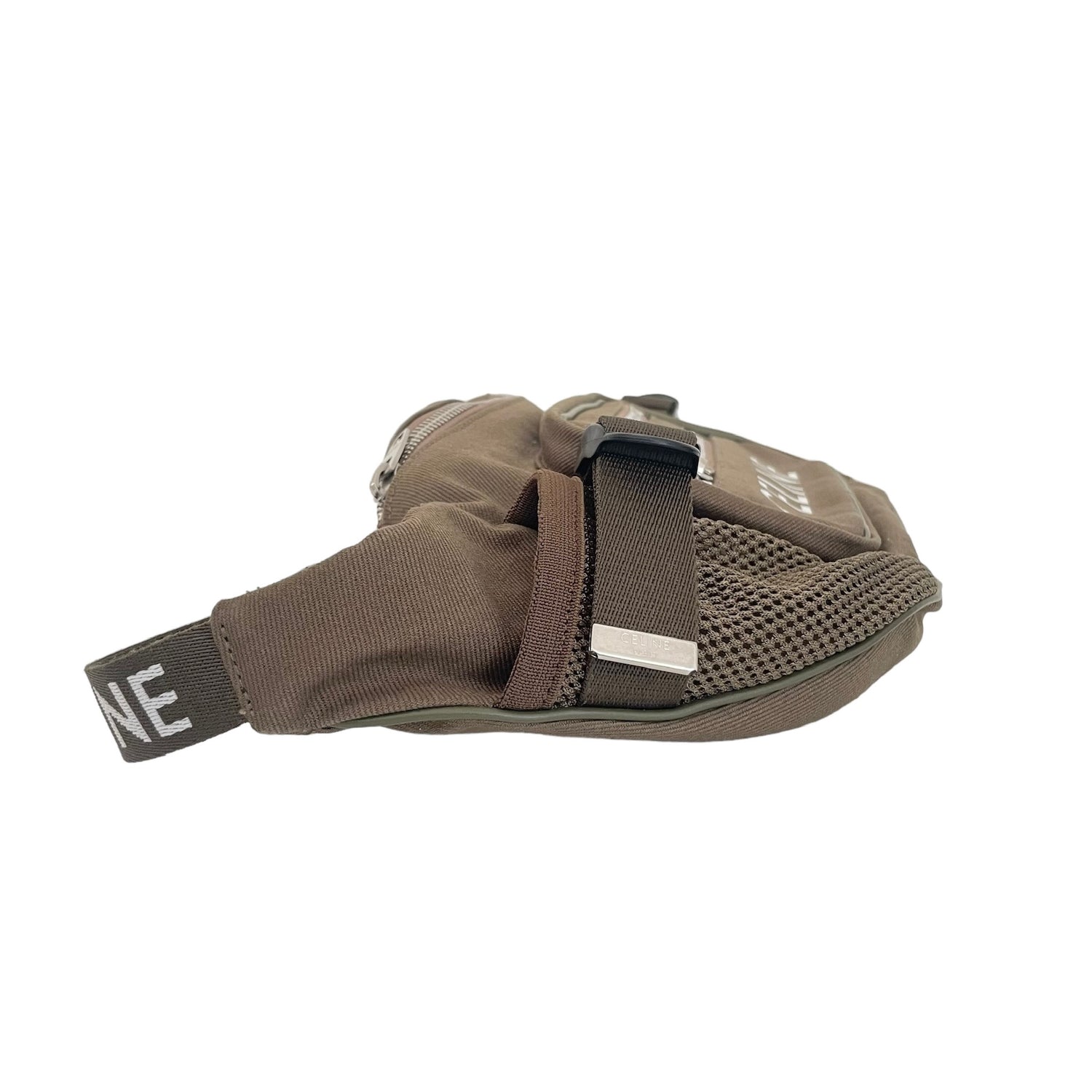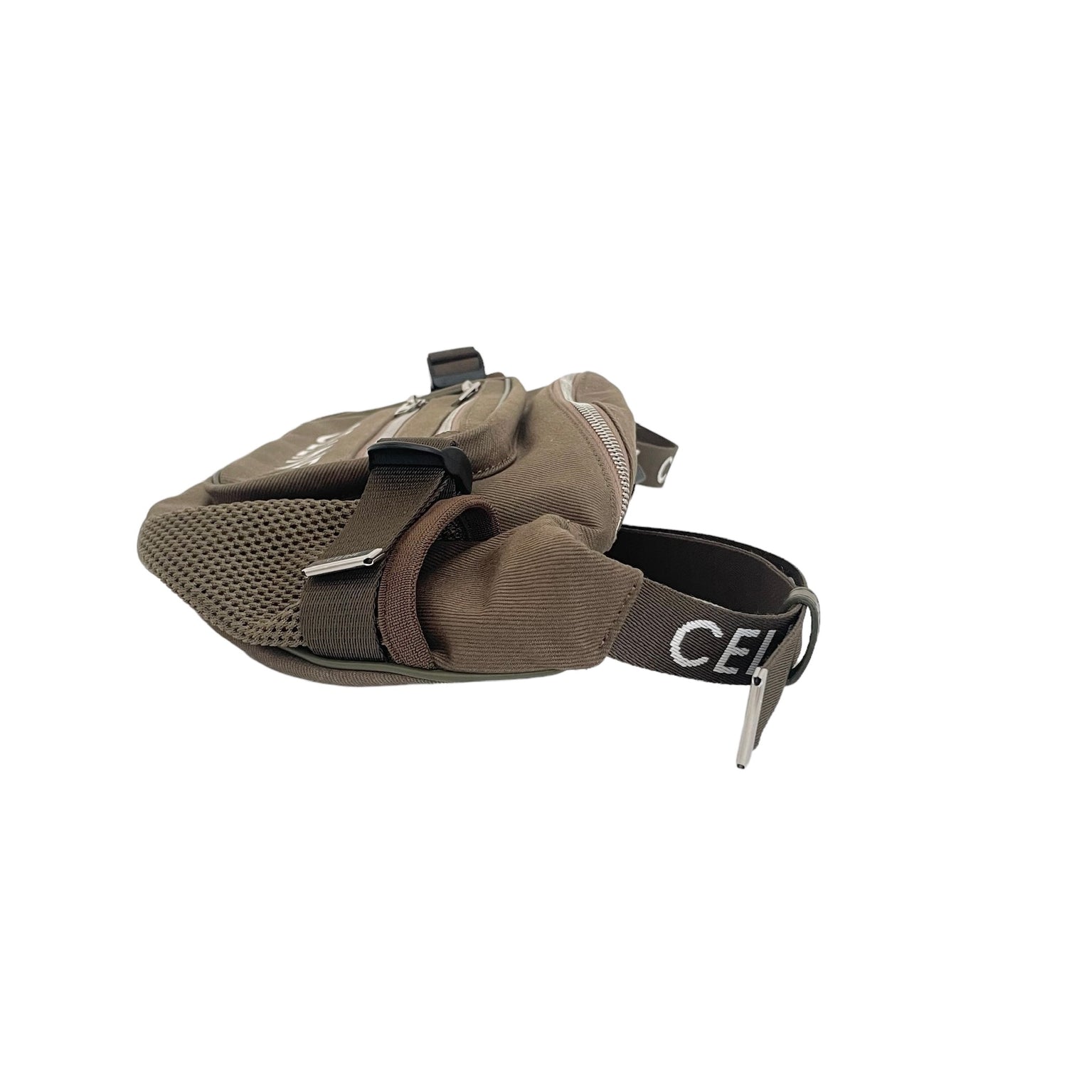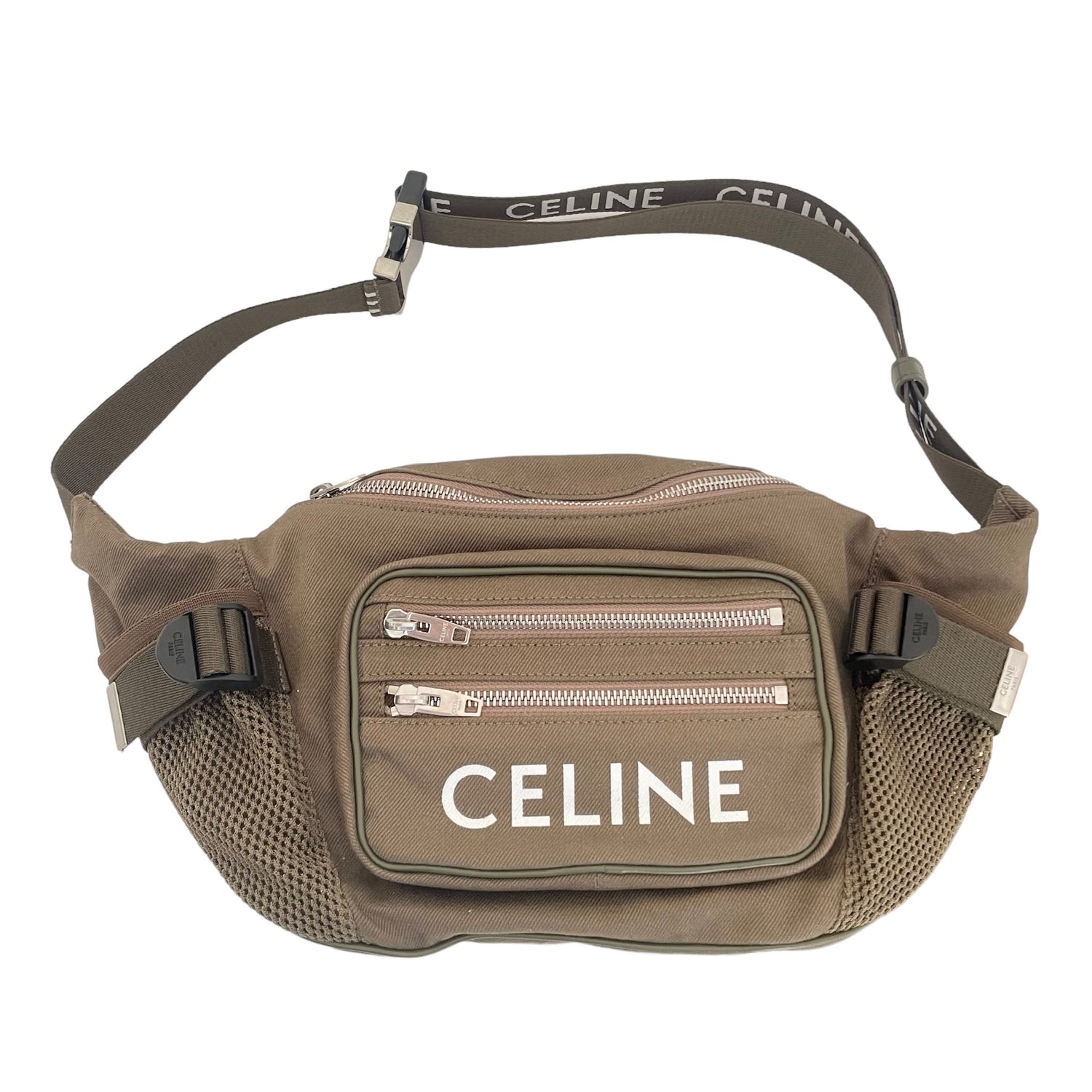 Celine Kaki bum bag. Cotton canvas. Celine logo at front and on the nylon strap. Adjustable strap. Multiple pockets.
