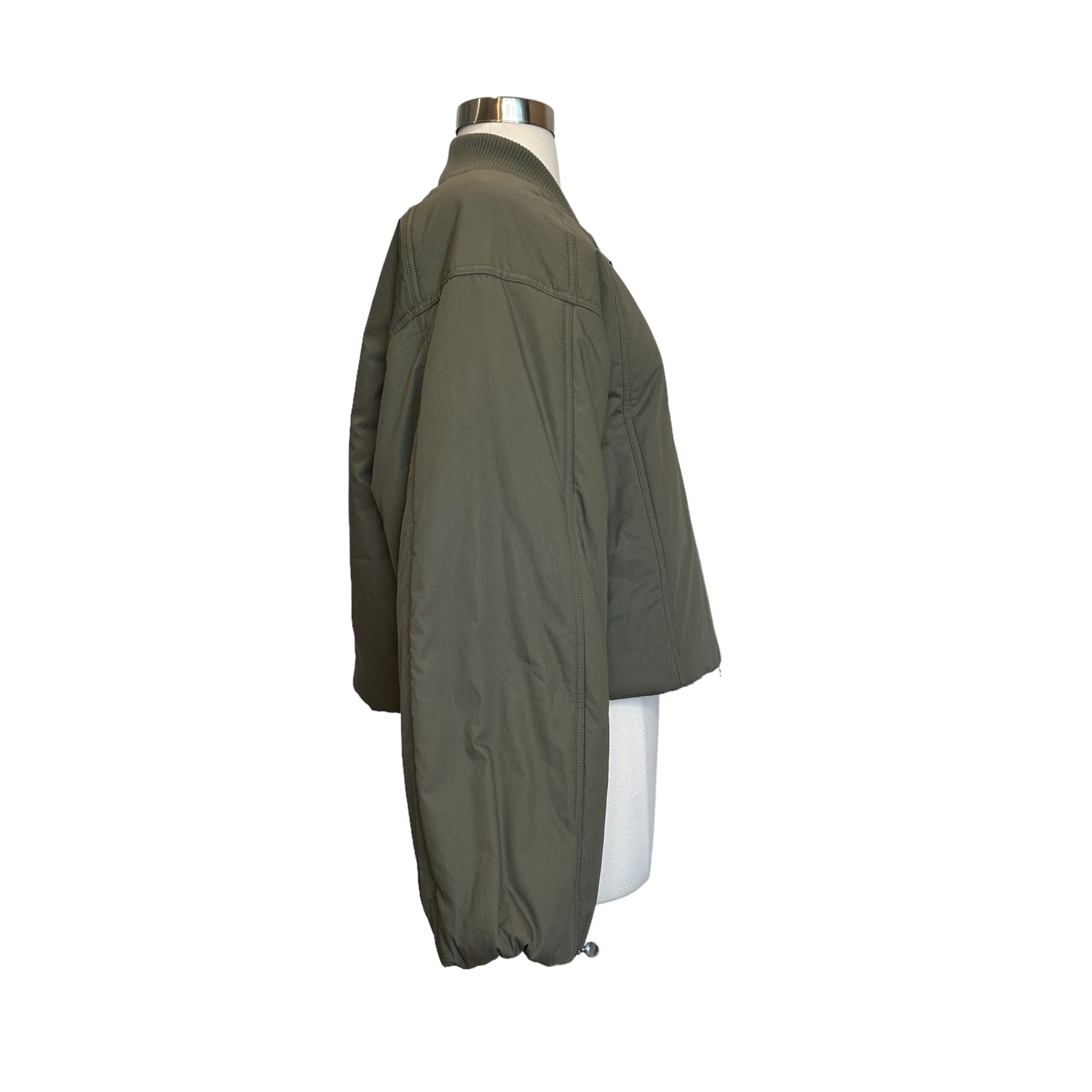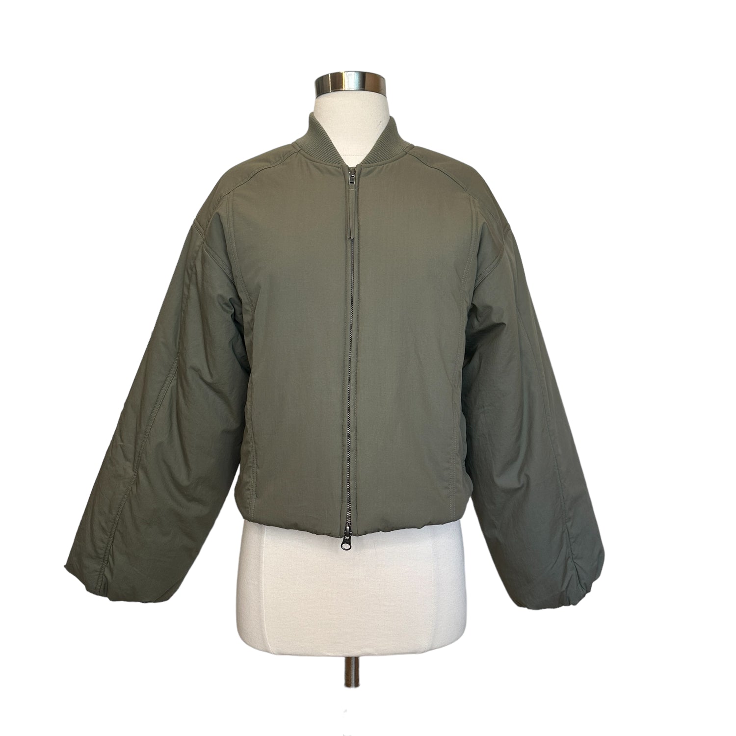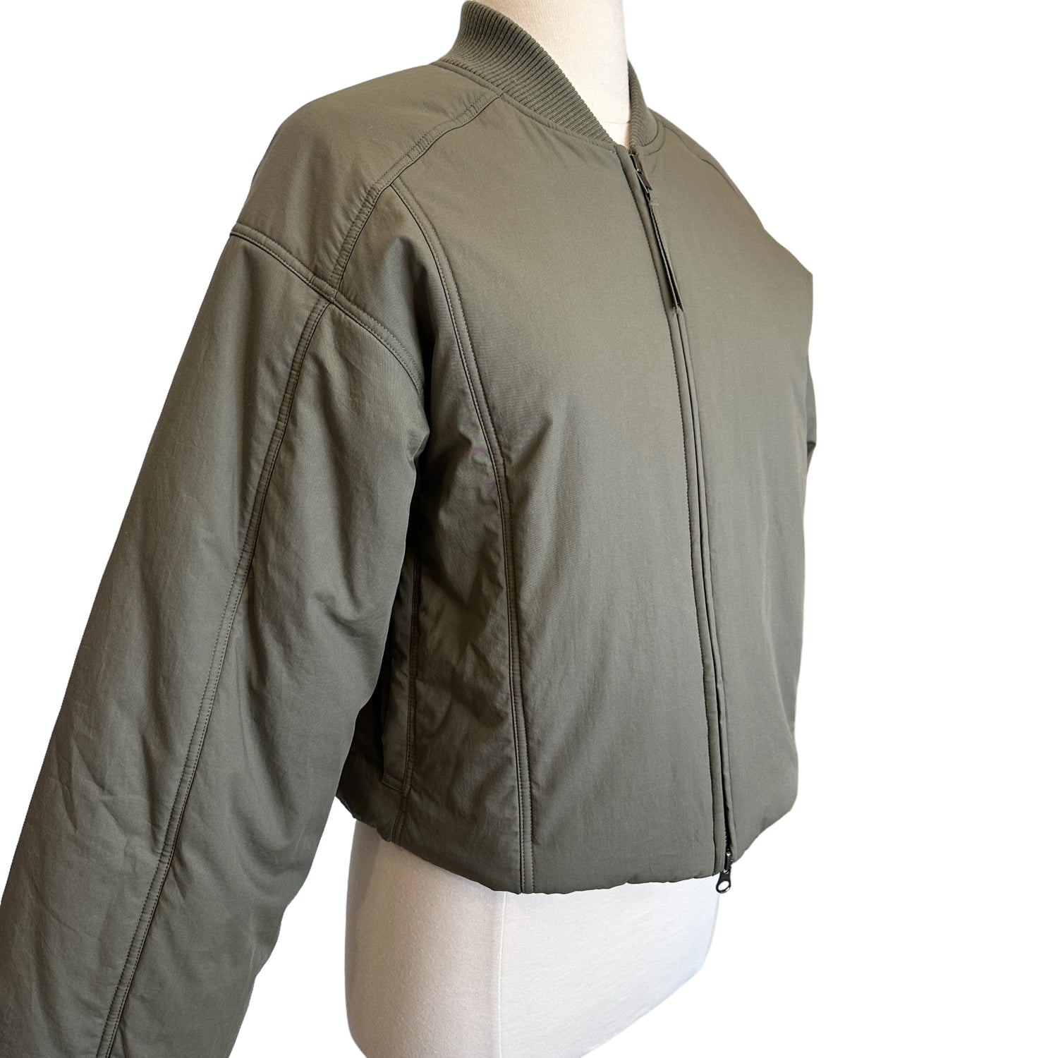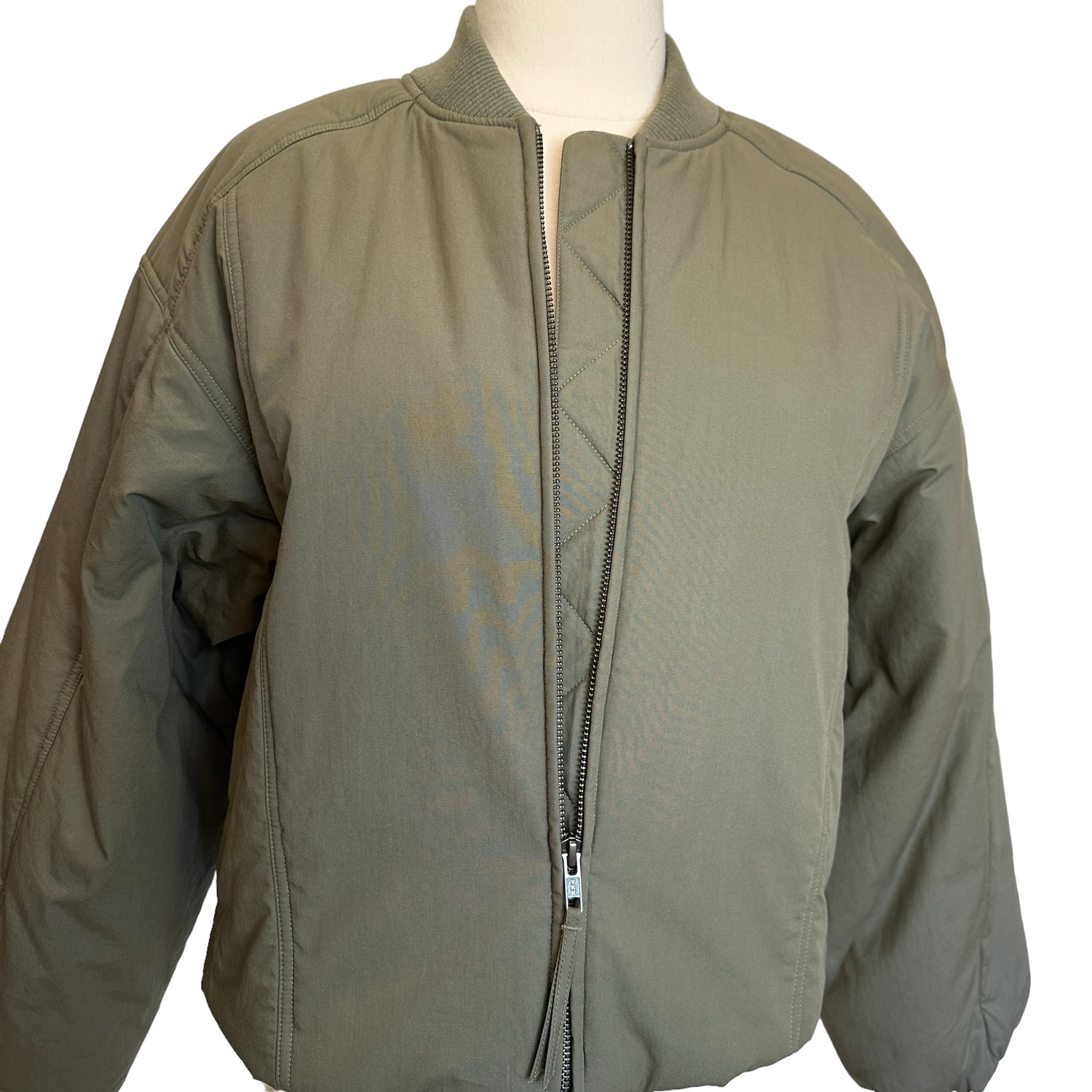 A Piece Apart kaki jacket. Puffed and oversized bomber jacket. Two pockets. Cropped bomber. Zipper closure at front. Designer size small.