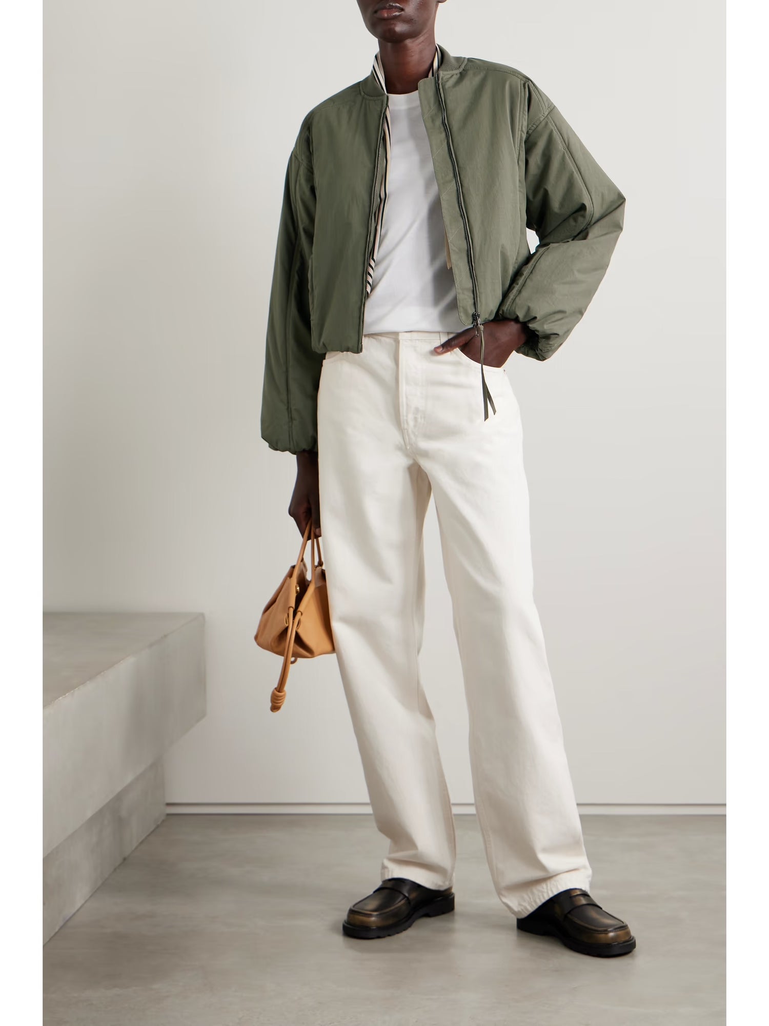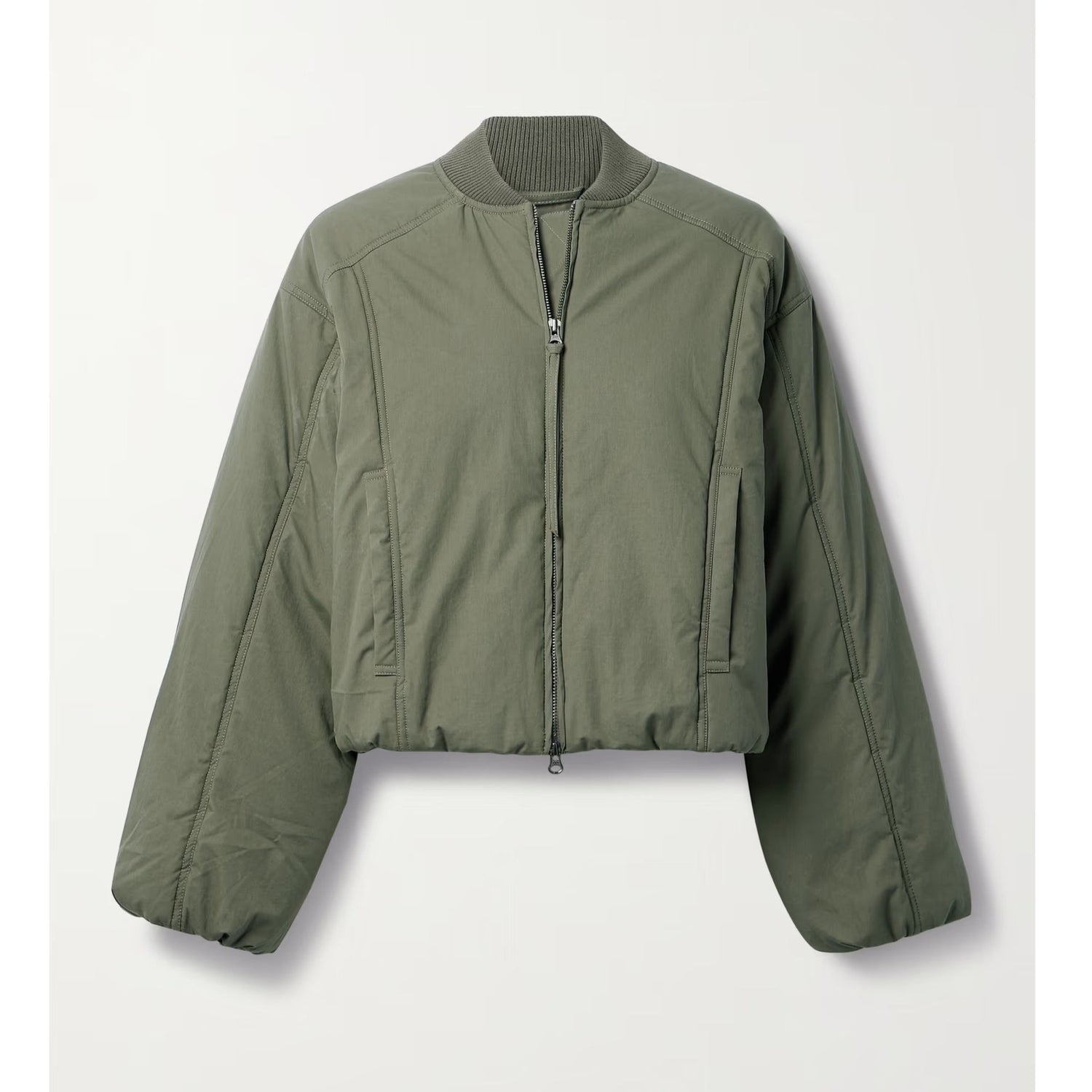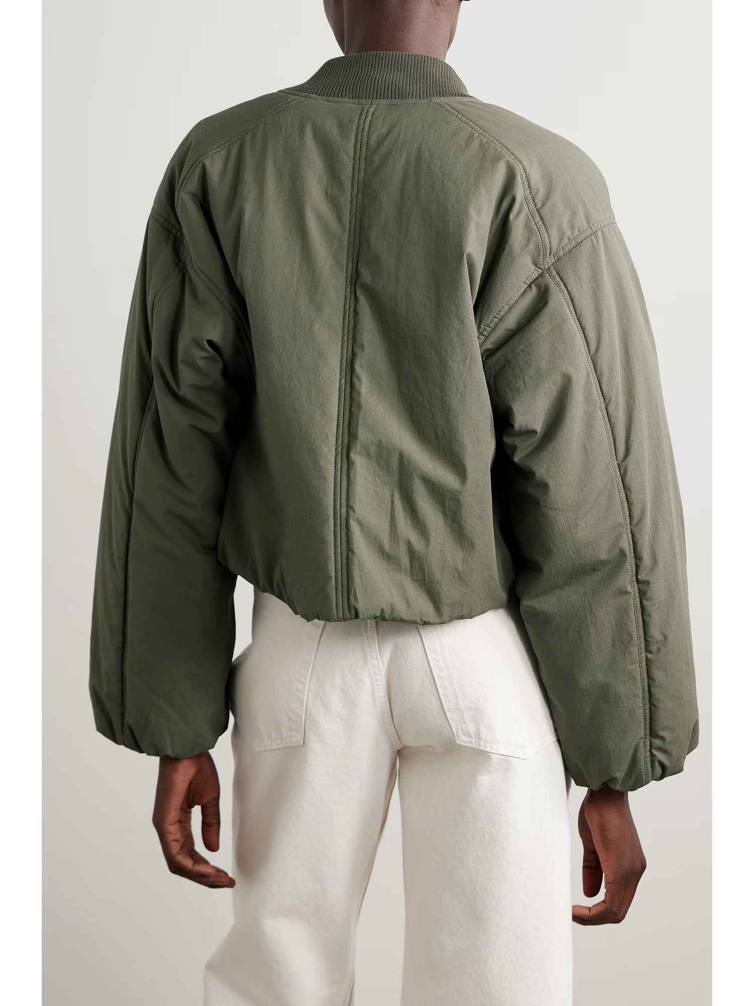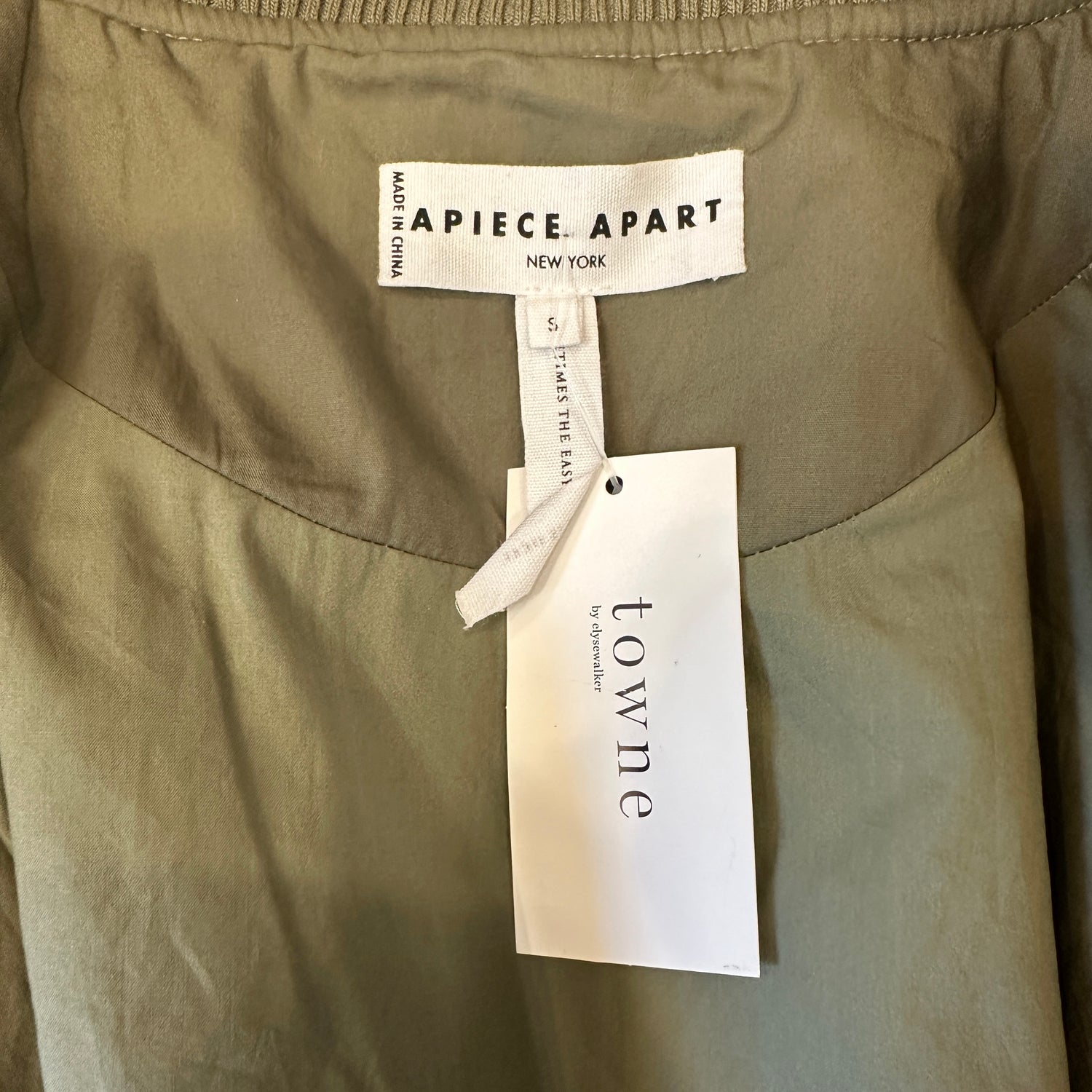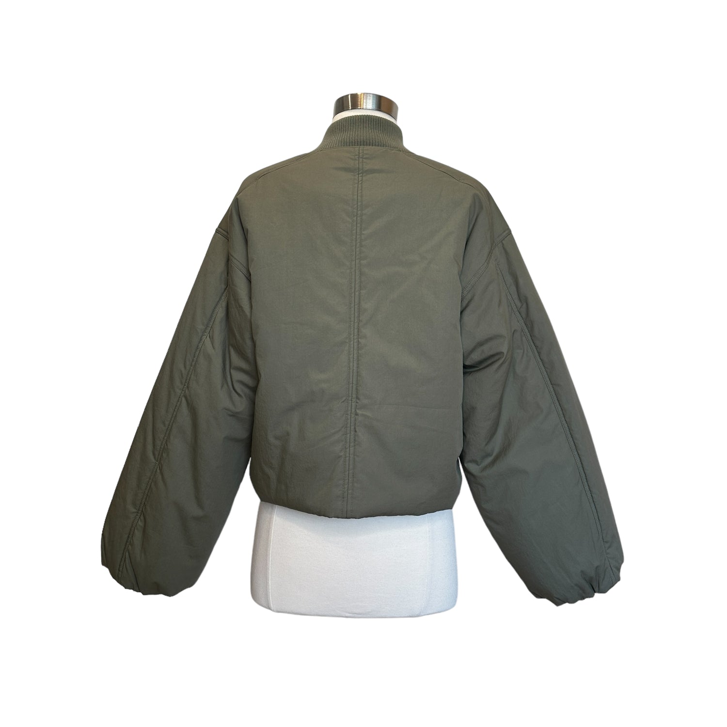 A Piece Apart kaki jacket. Puffed and oversized bomber jacket. Two pockets. Cropped bomber. Zipper closure at front. Designer size small.