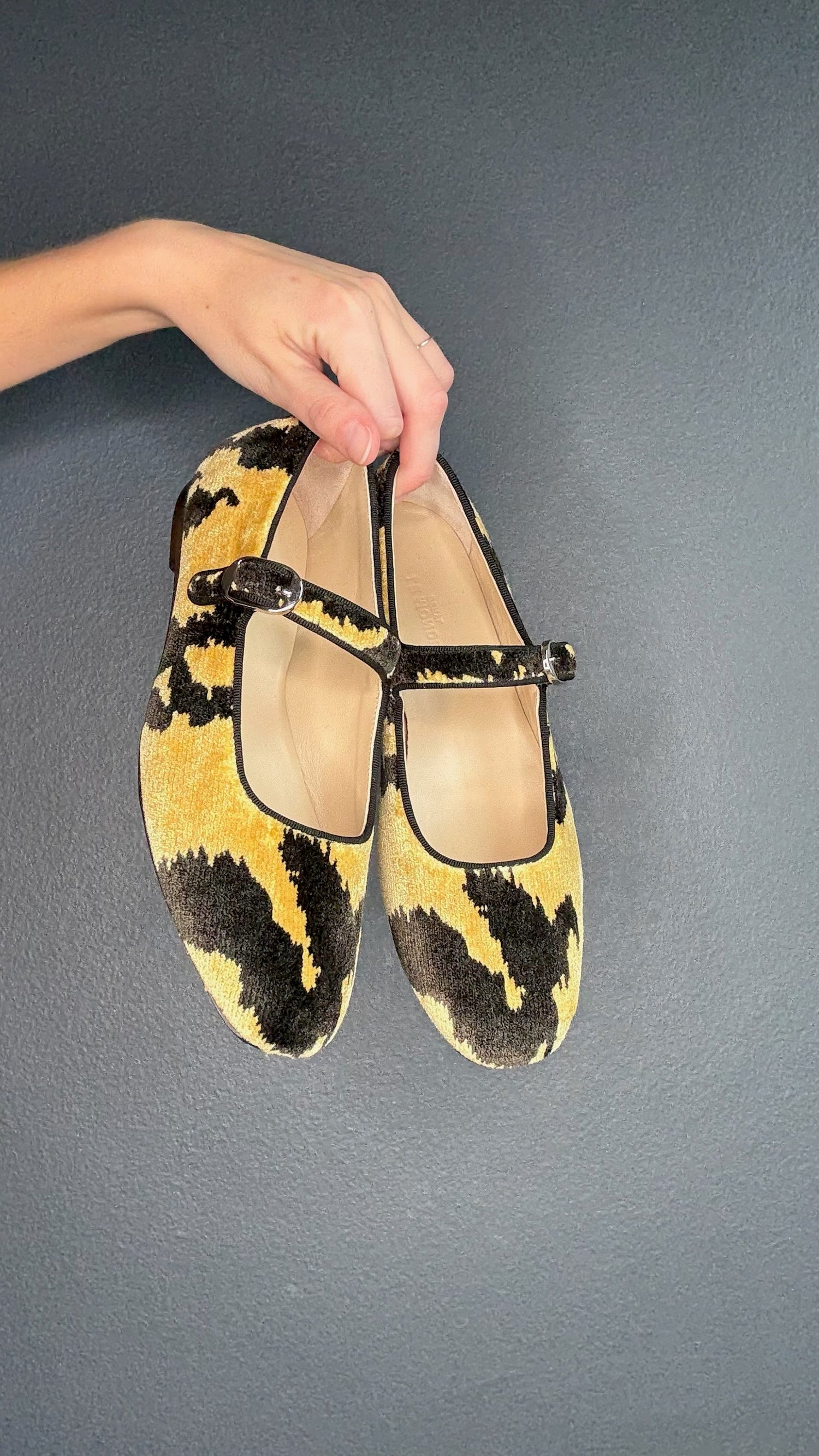 Le Monde Beryl ballet flats. Cream and black velvet texture. Buckle detail. Designer size 37.