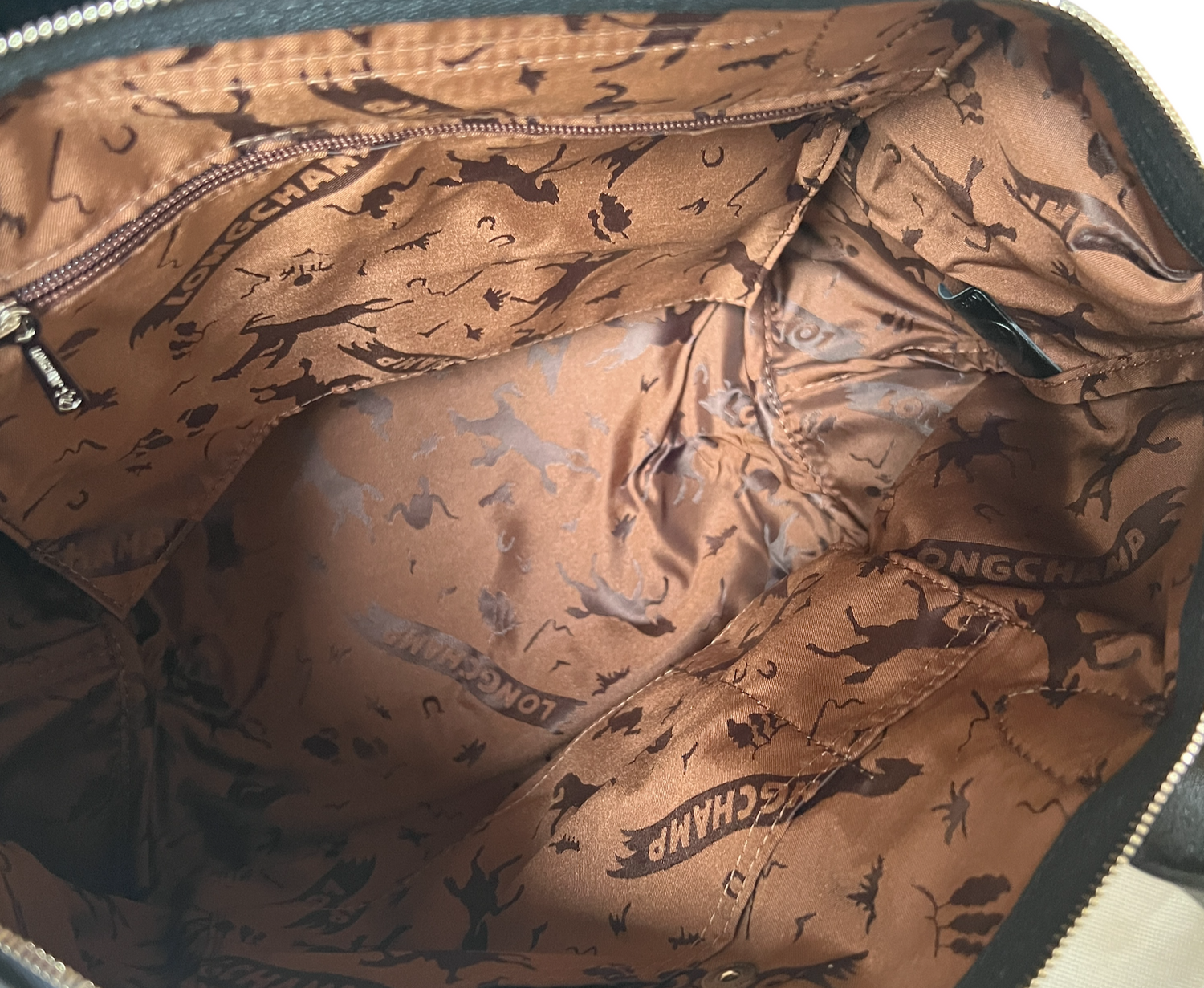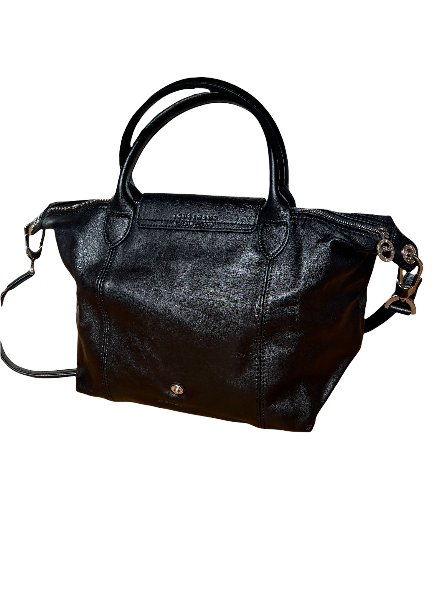 Made of black leather. This is a beautiful twist to the classic pliage bag. Can be folded and taken anywhere. It can be worn shoulder, crossbody or as a handle bag. Very practical and versatile.