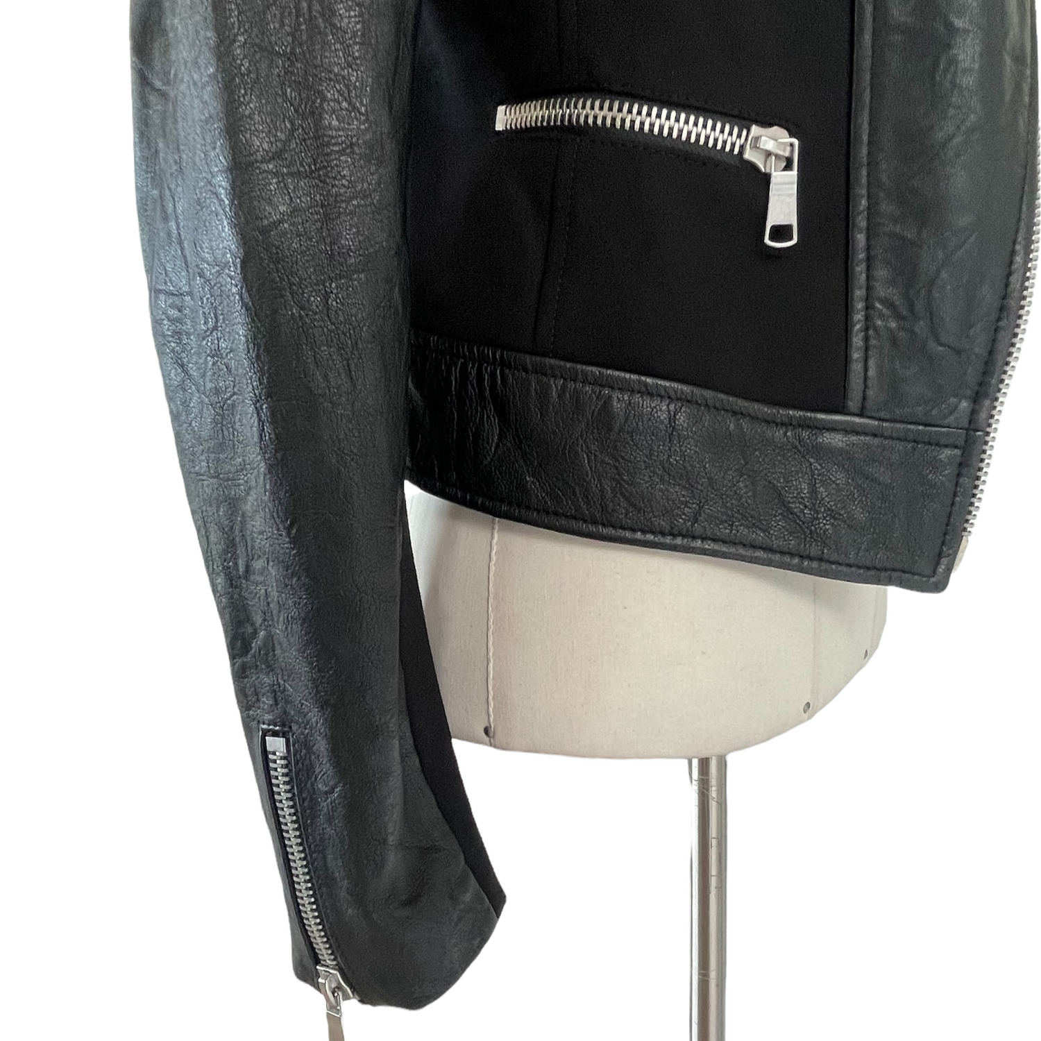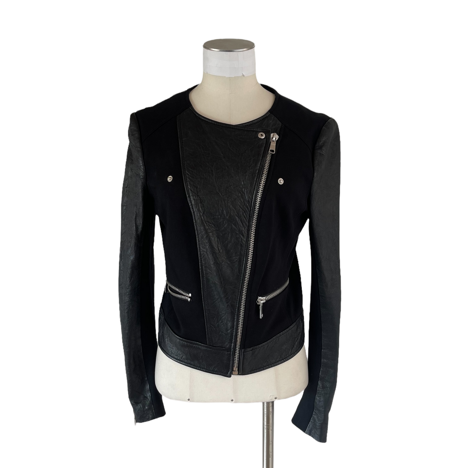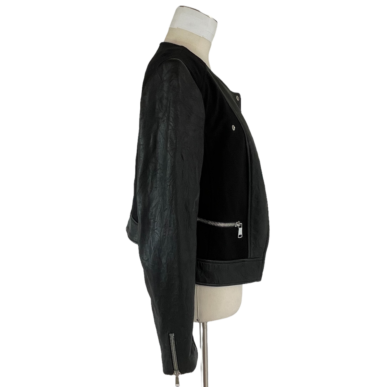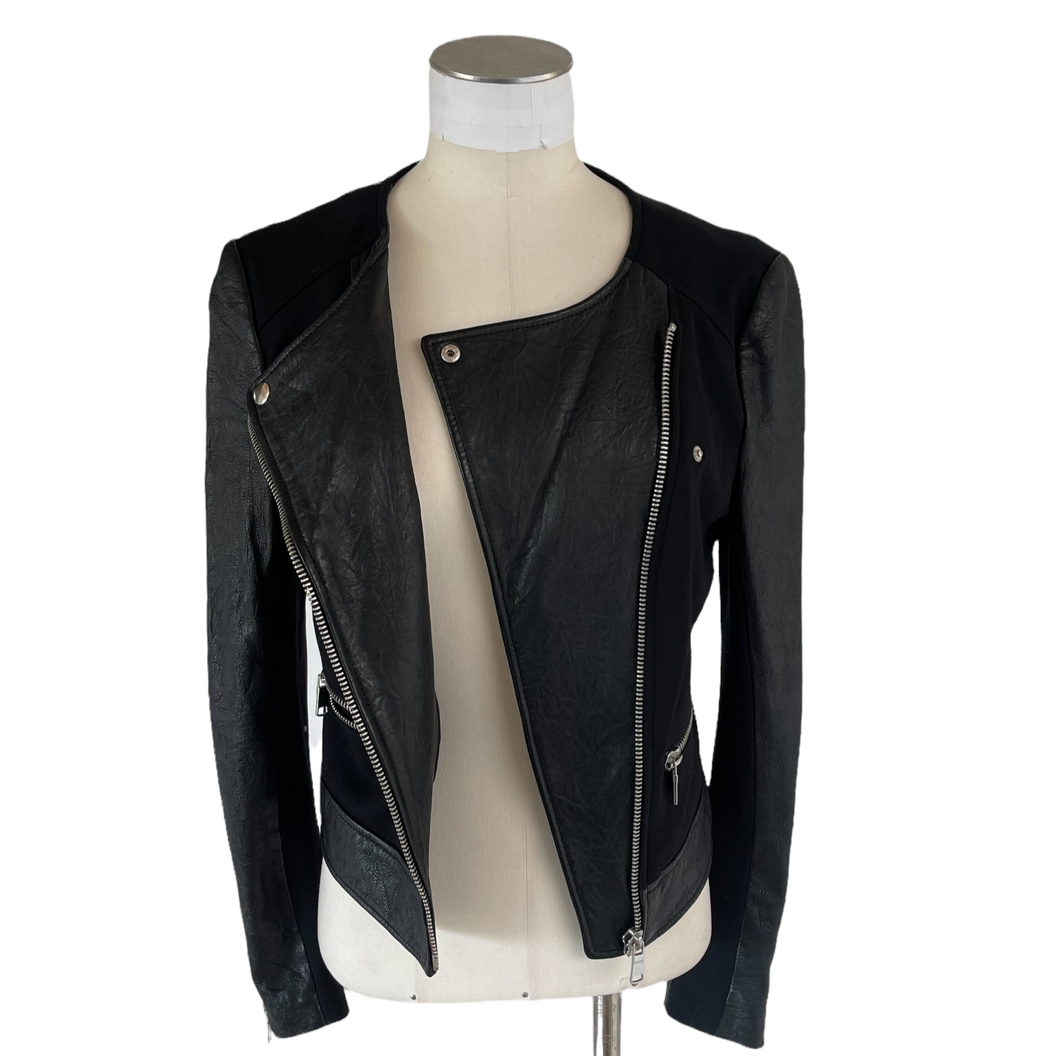 Very chic Joie leather jacket with buttons and zipper at front. Two side pockets.