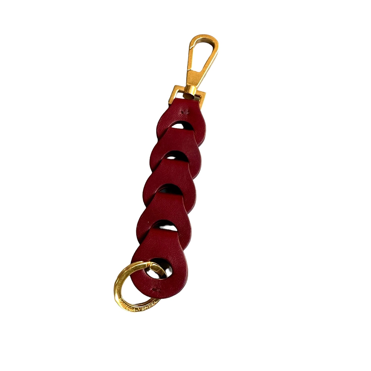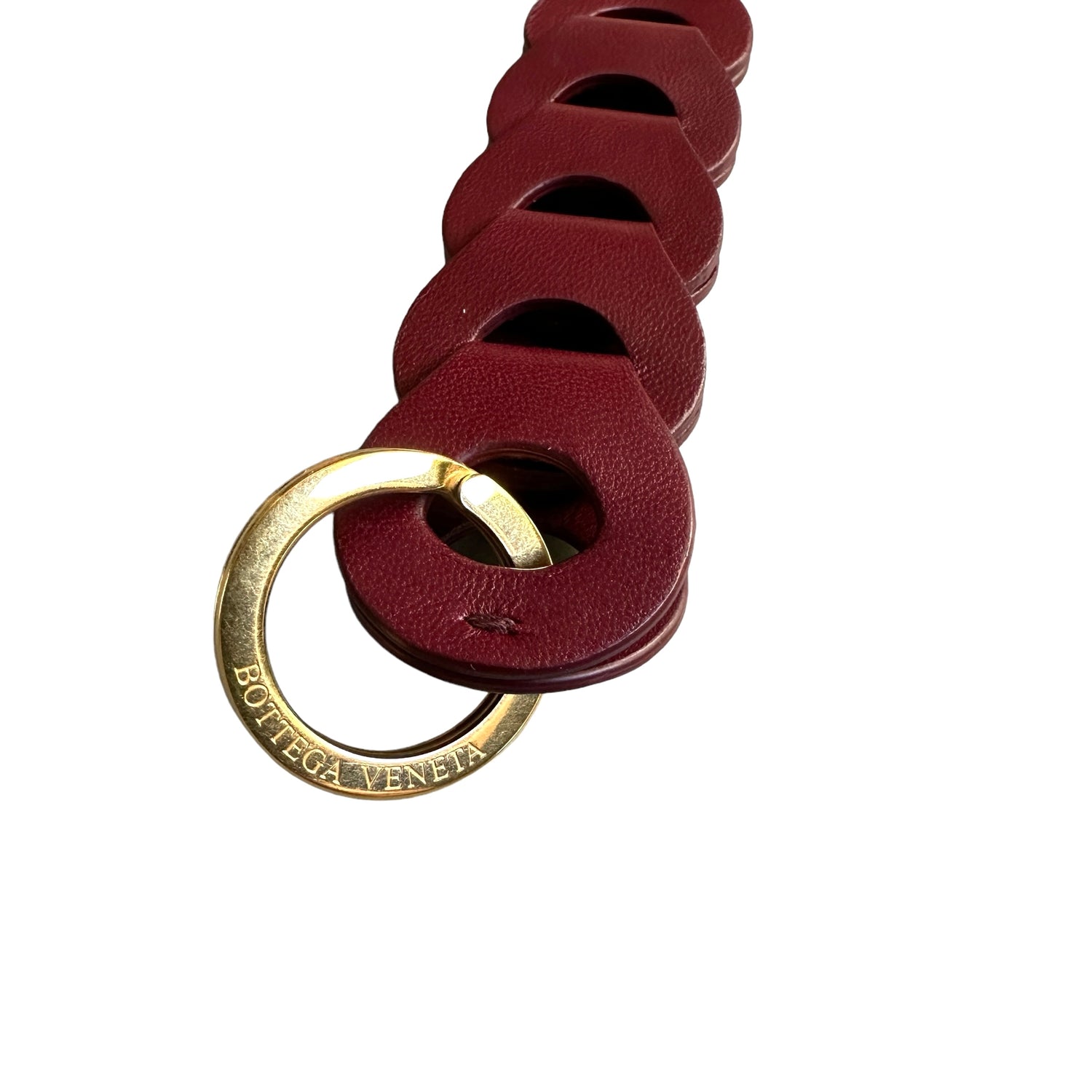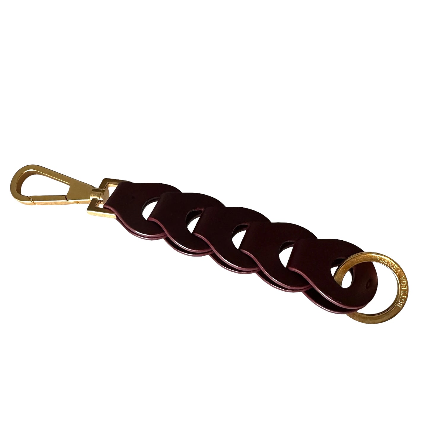 Bottega Veneta leather key chain. Burgundy red leather. Gold-tone hardware.