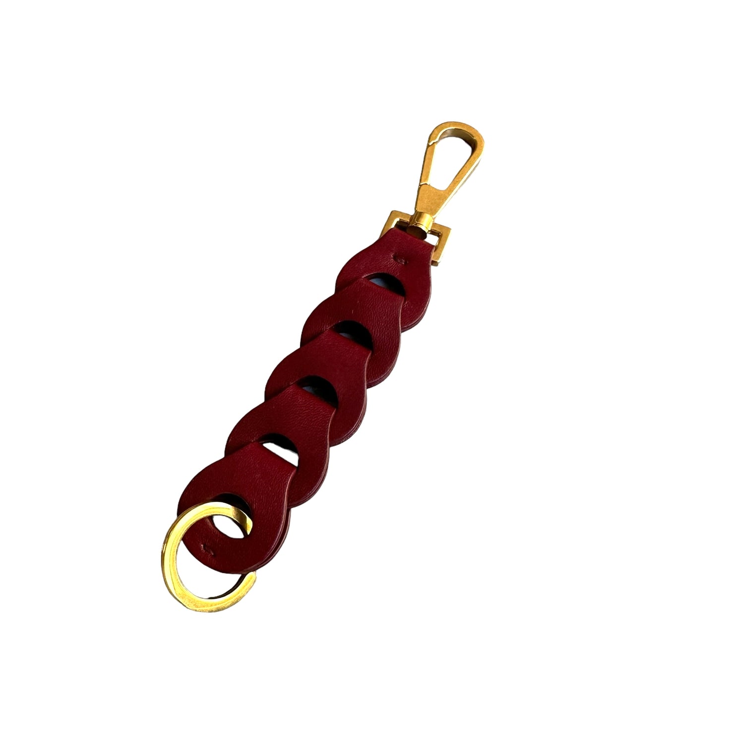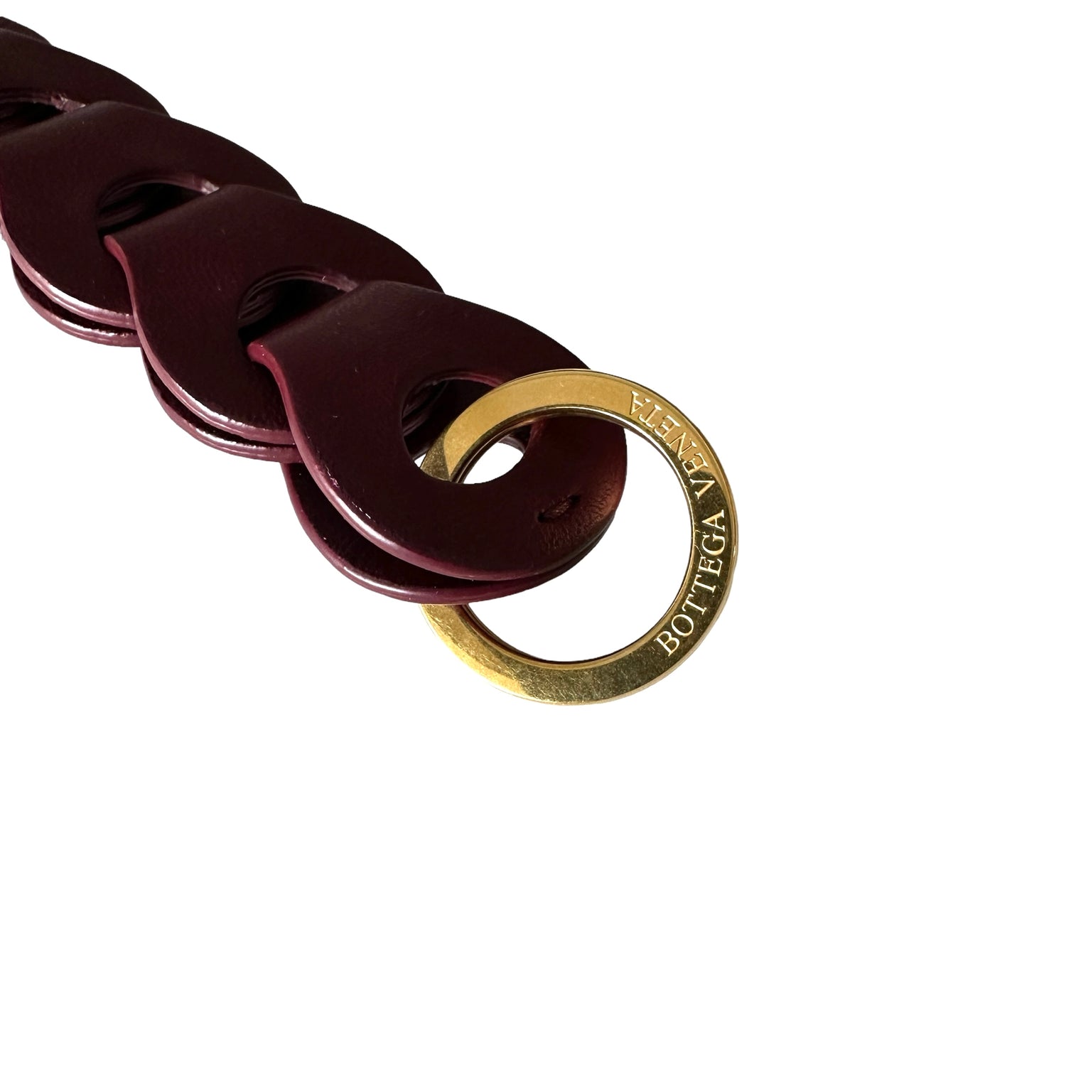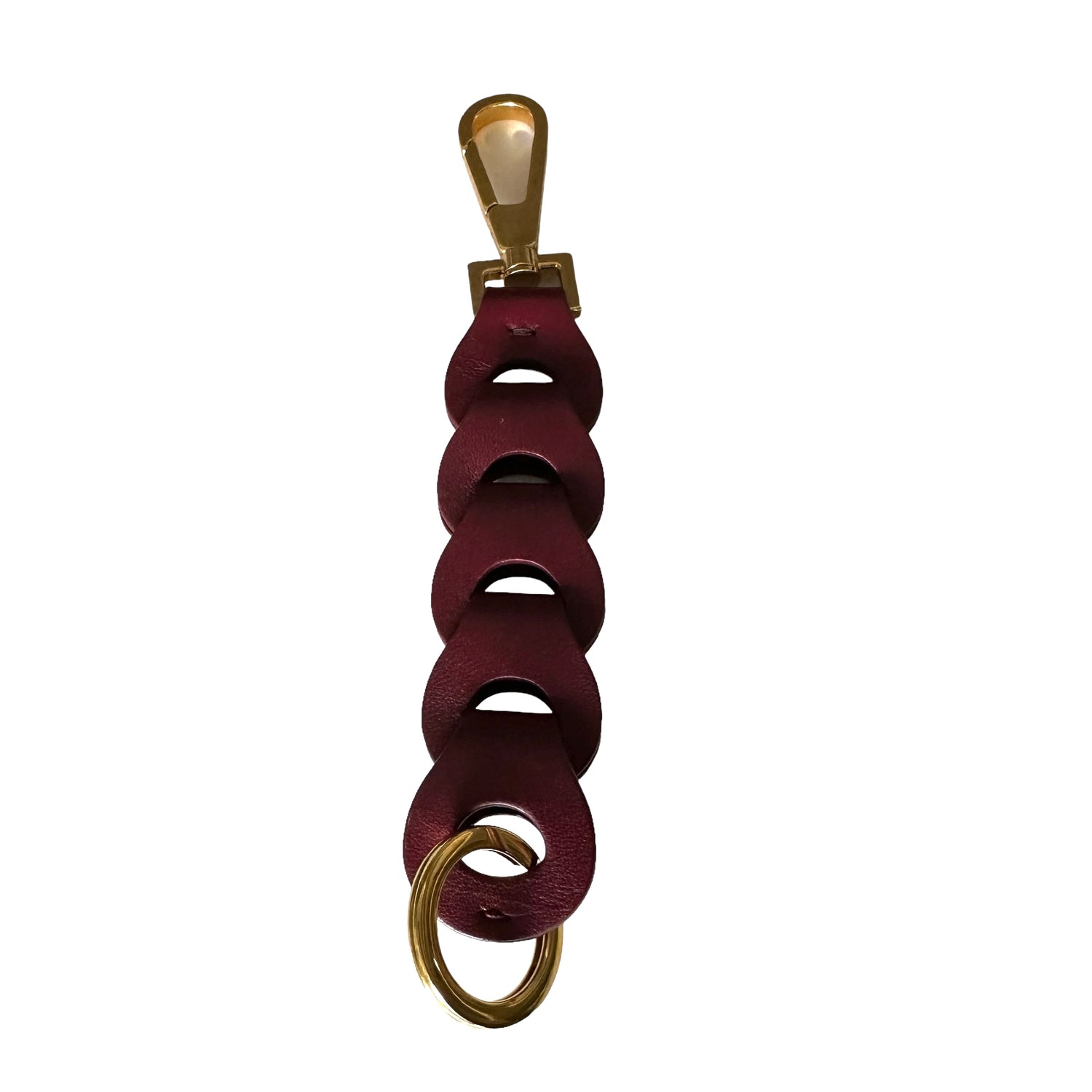 Bottega Veneta leather key chain. Burgundy red leather. Gold-tone hardware.