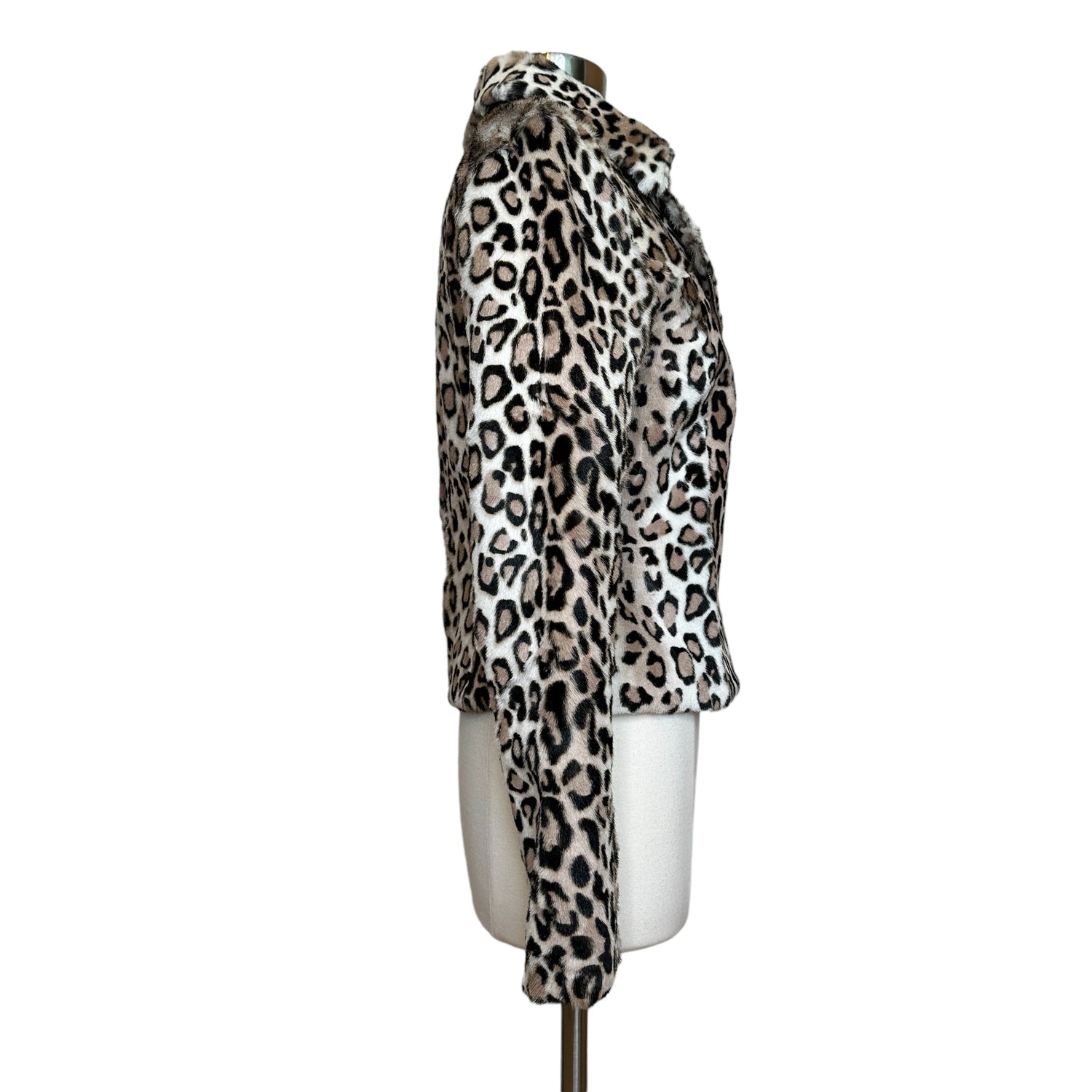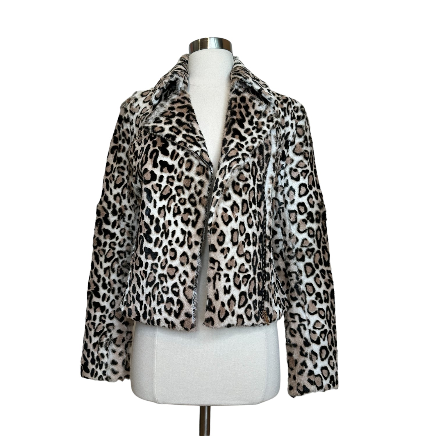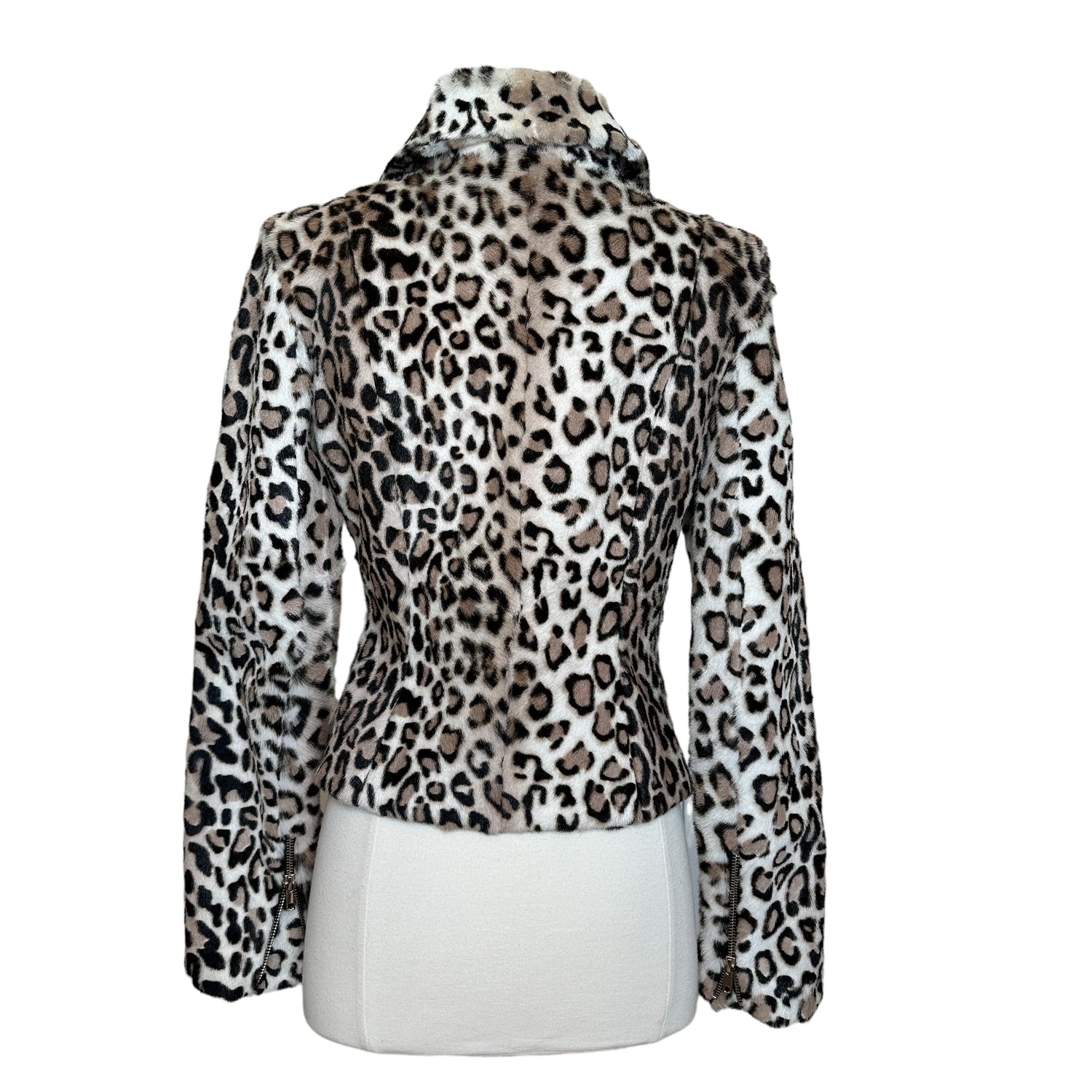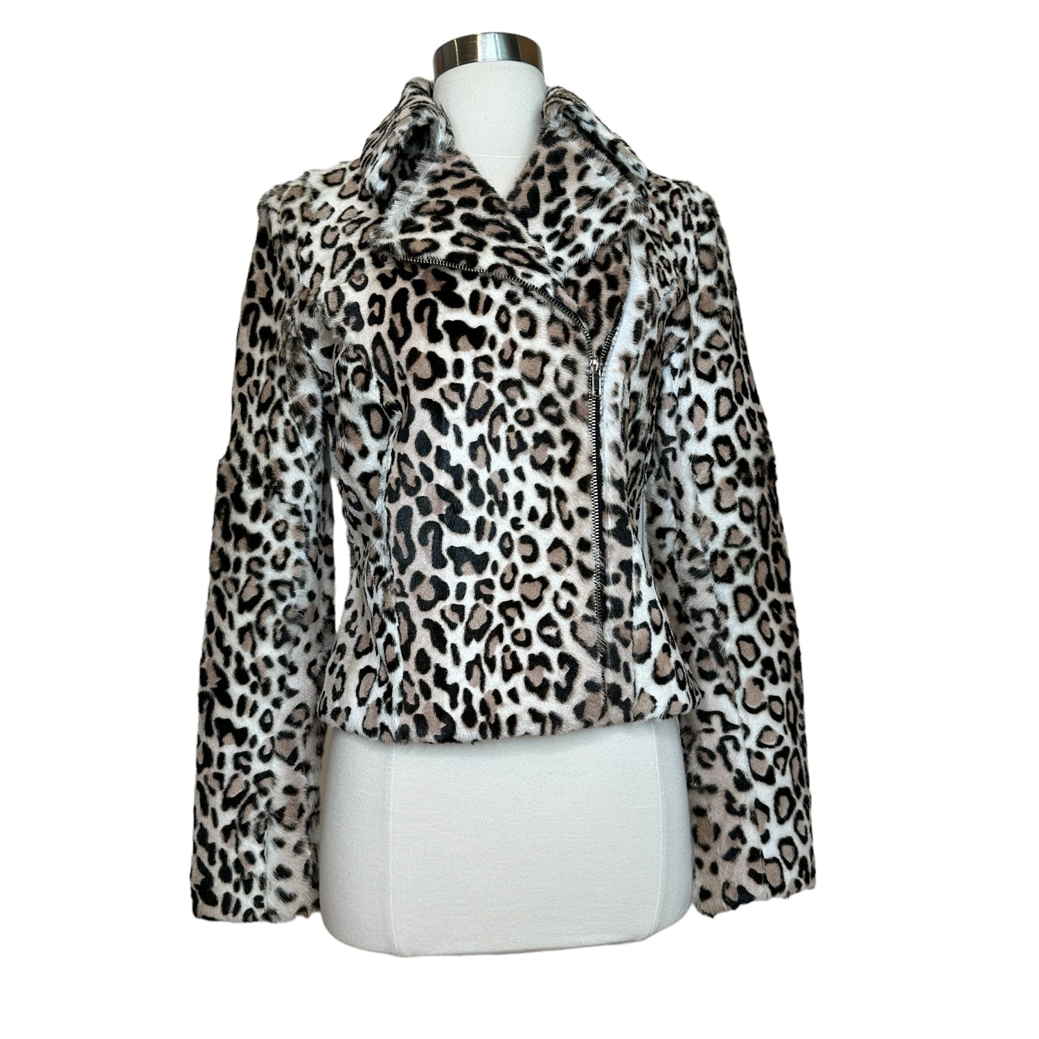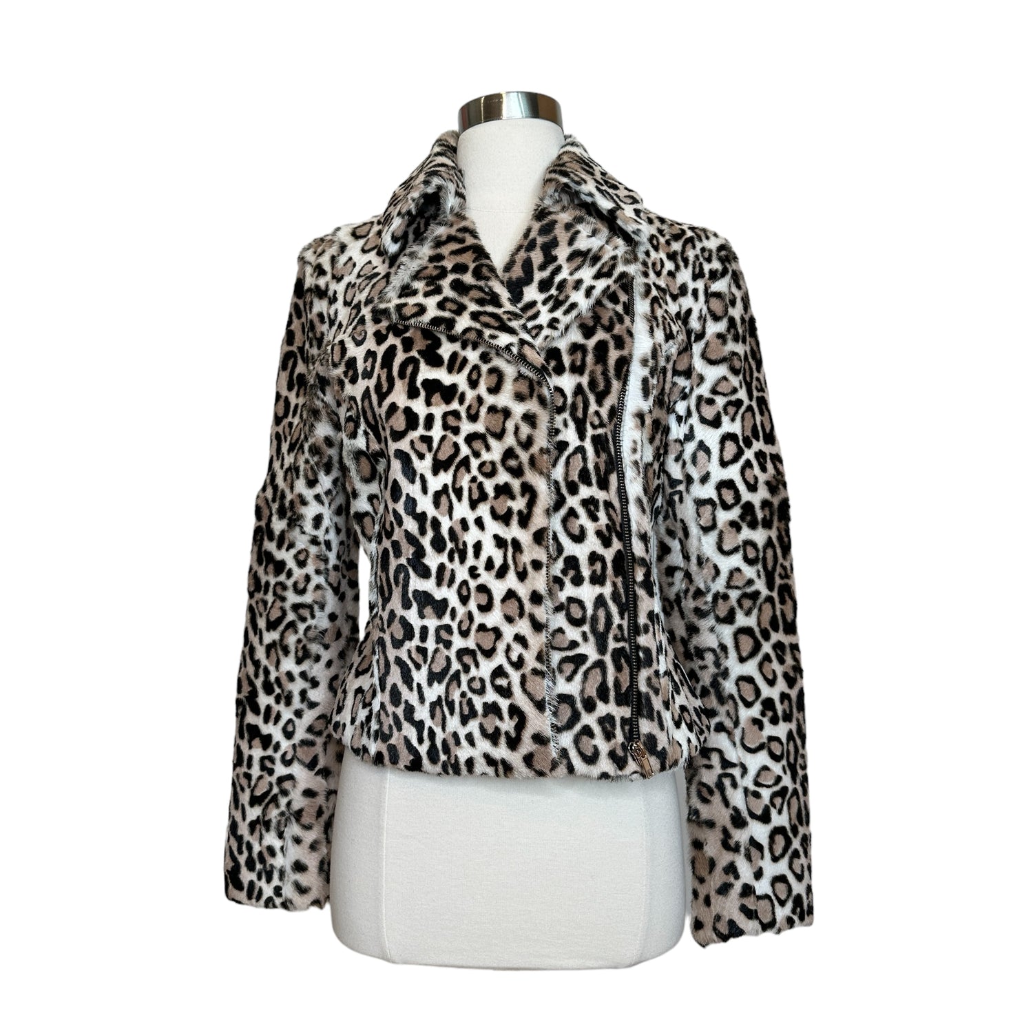 Intermix leopard fur jacket. Perfecto style. Zipper closure at front. Designer size Small.