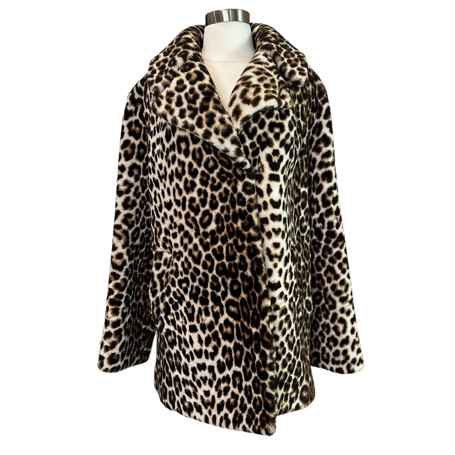 ALC leopard shearling jacket. Pointed collar. Hook closure at front. Two slit pockets. Very soft and plush. Designer size medium.