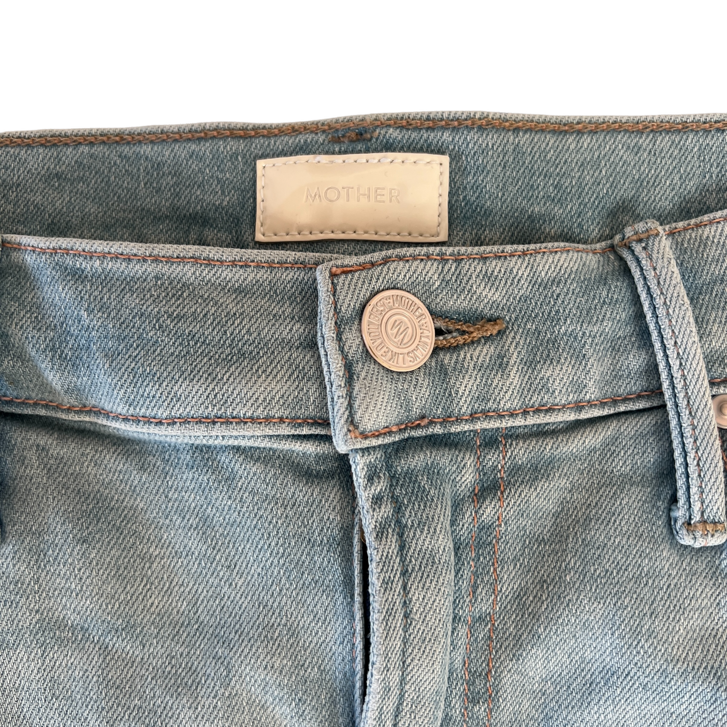 Light wash Mother denim skirt. Raw hem. Size US 27.