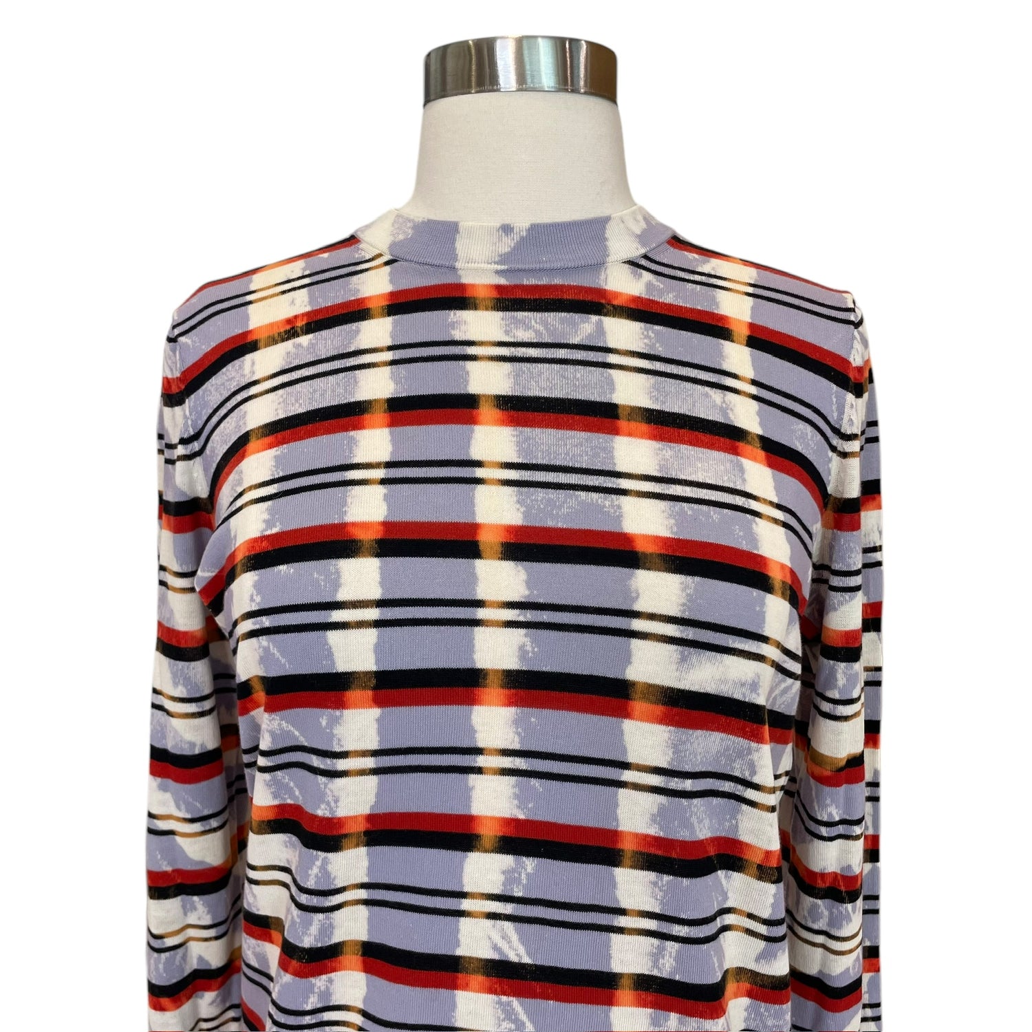 Proenza Schouler pullover. Multicolor print in lavender, red, cream and black. Round neck. Lightweight. Designer size XS.