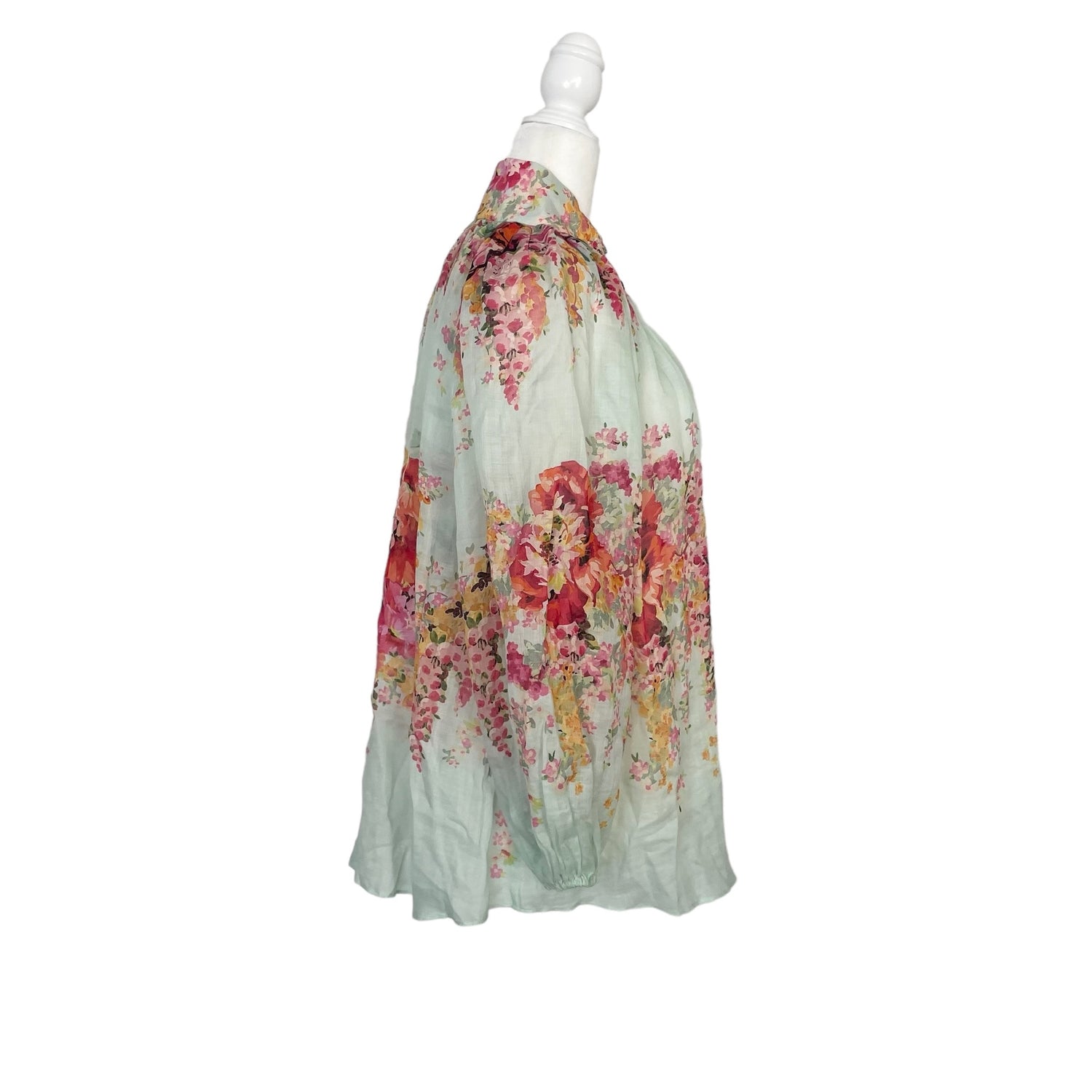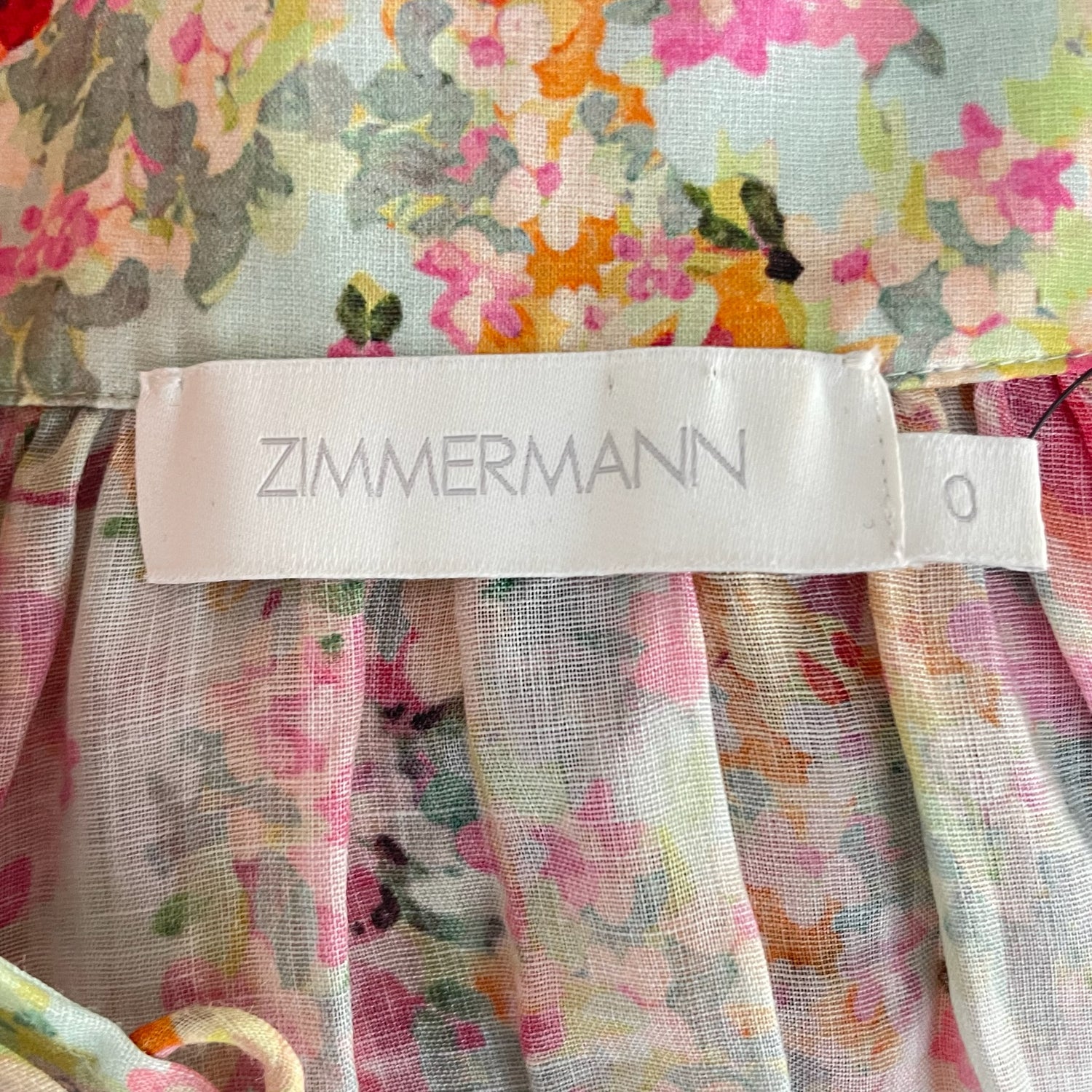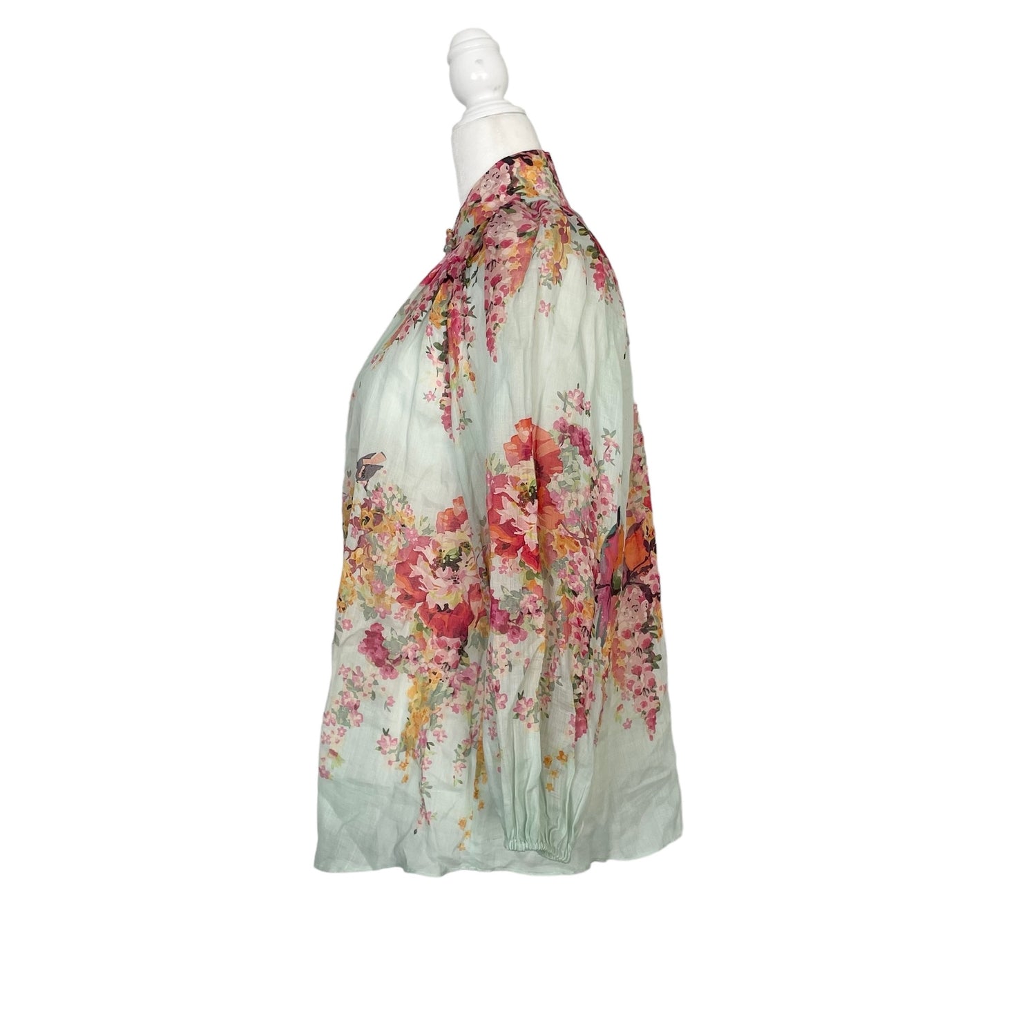 Zimmermann blouse. Beautiful bird and floral print. Mini buttons at front. Whimsical loose and comfortable. Designer size 0.