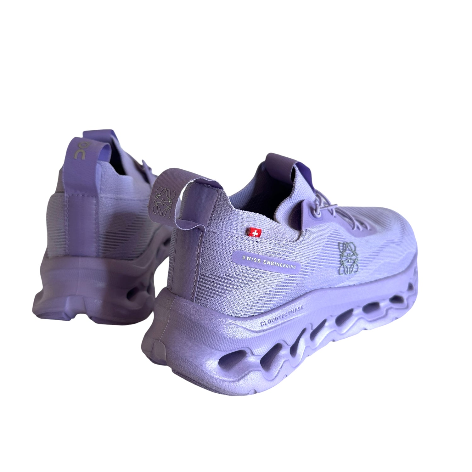 Loewe x On collab purple sneakers. Anagram logo at sides and back. Designer size 38.