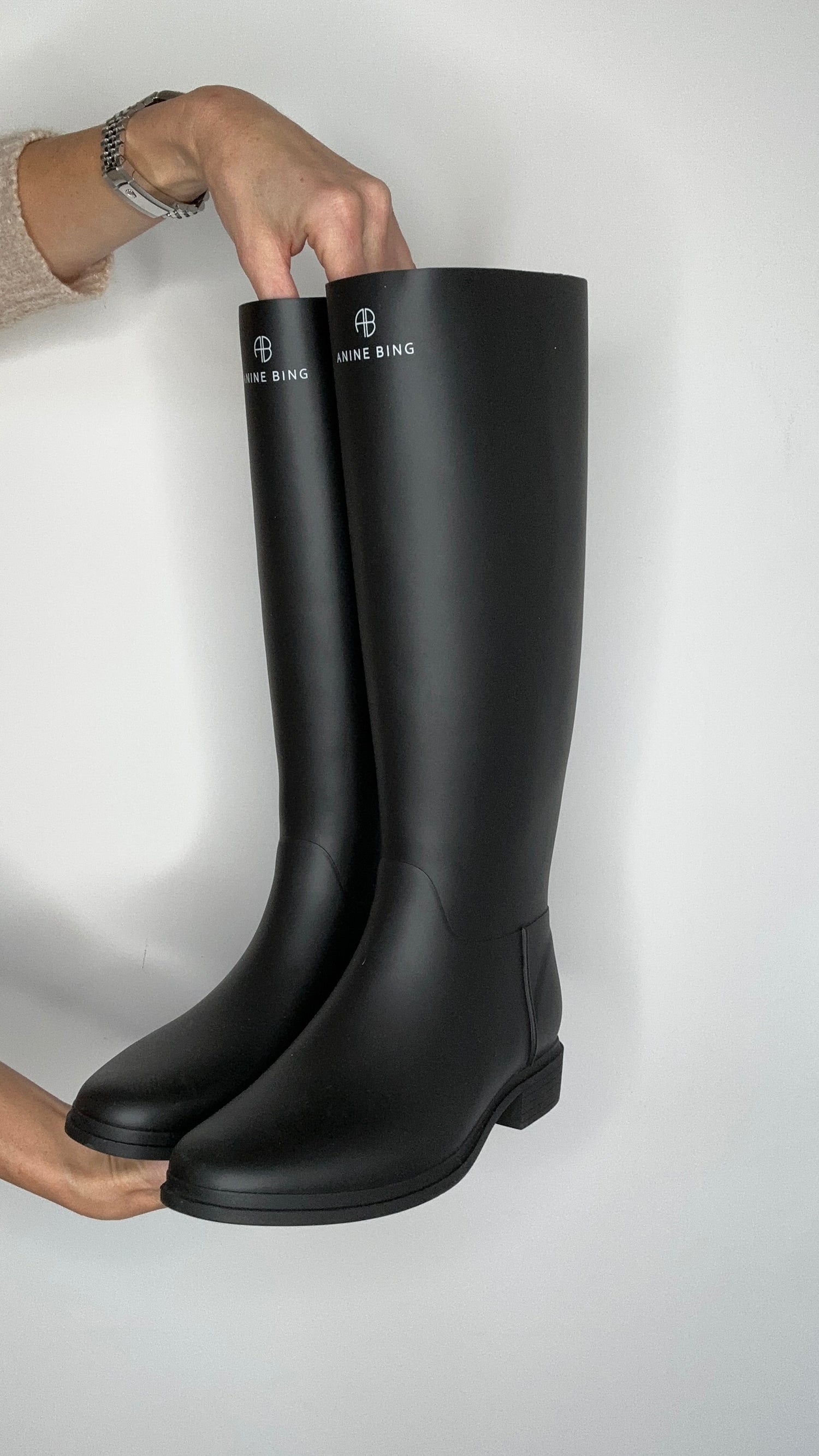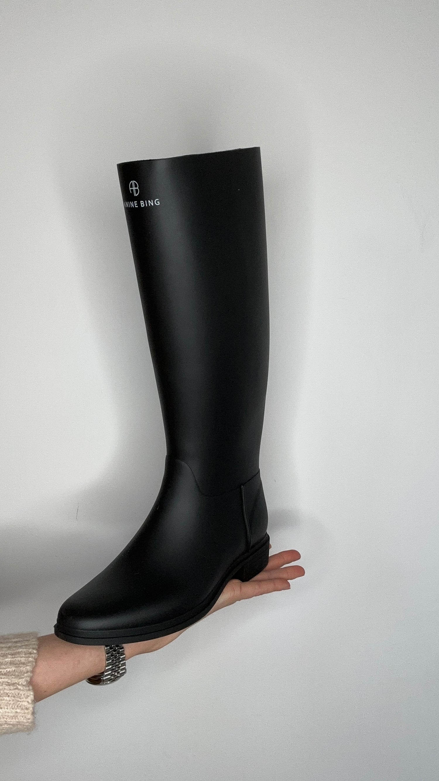 Anine Bing black rubber rain boots. Logo at front. Designer size 36.