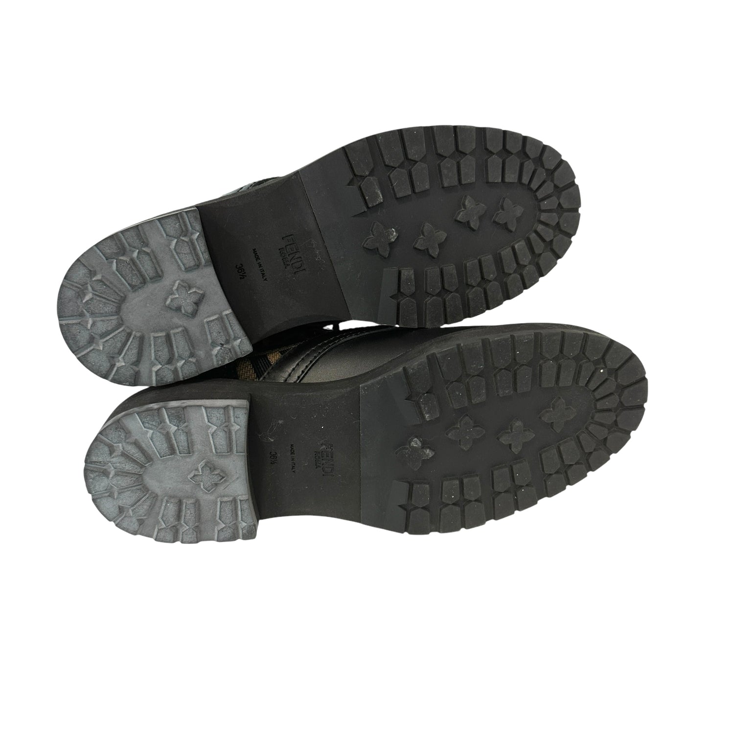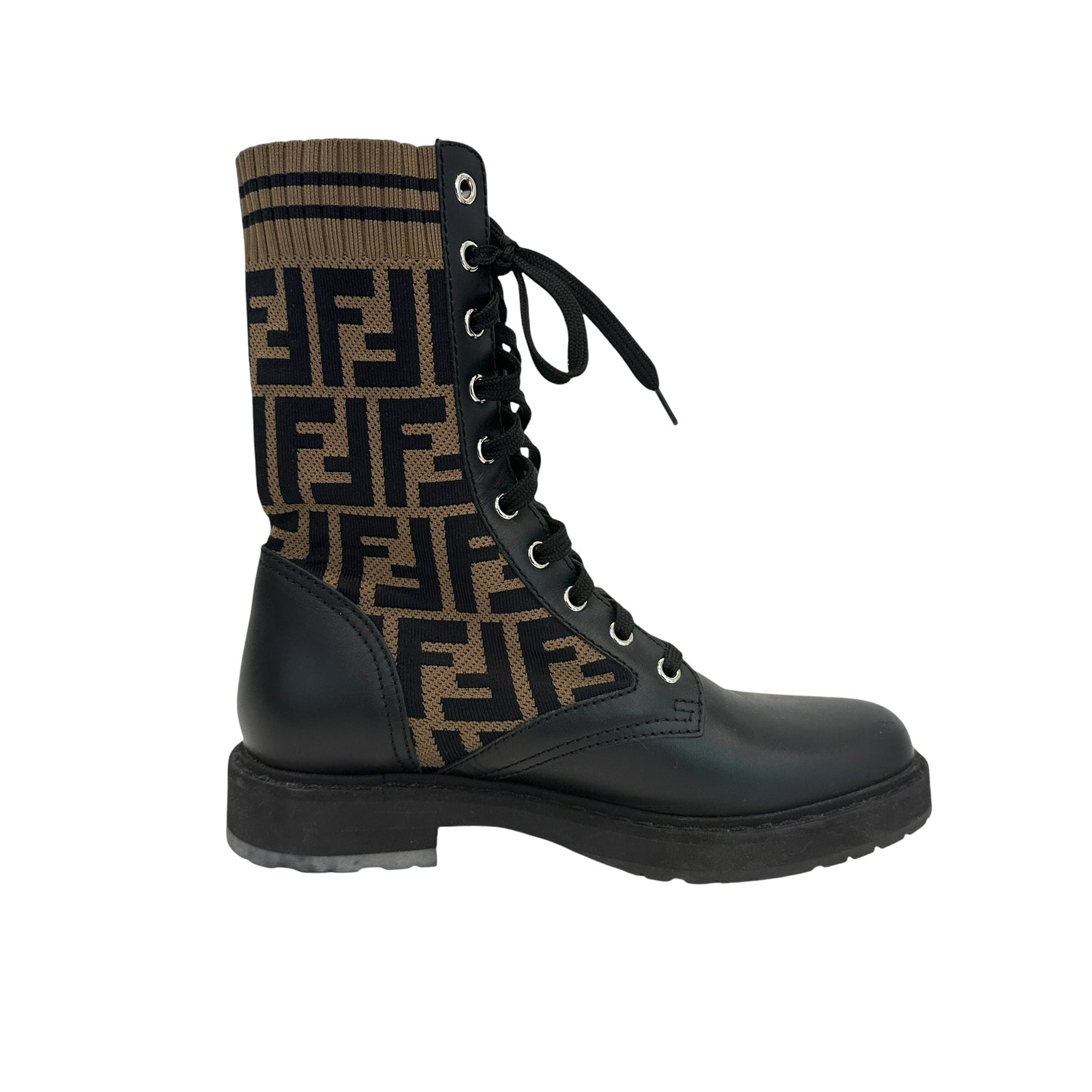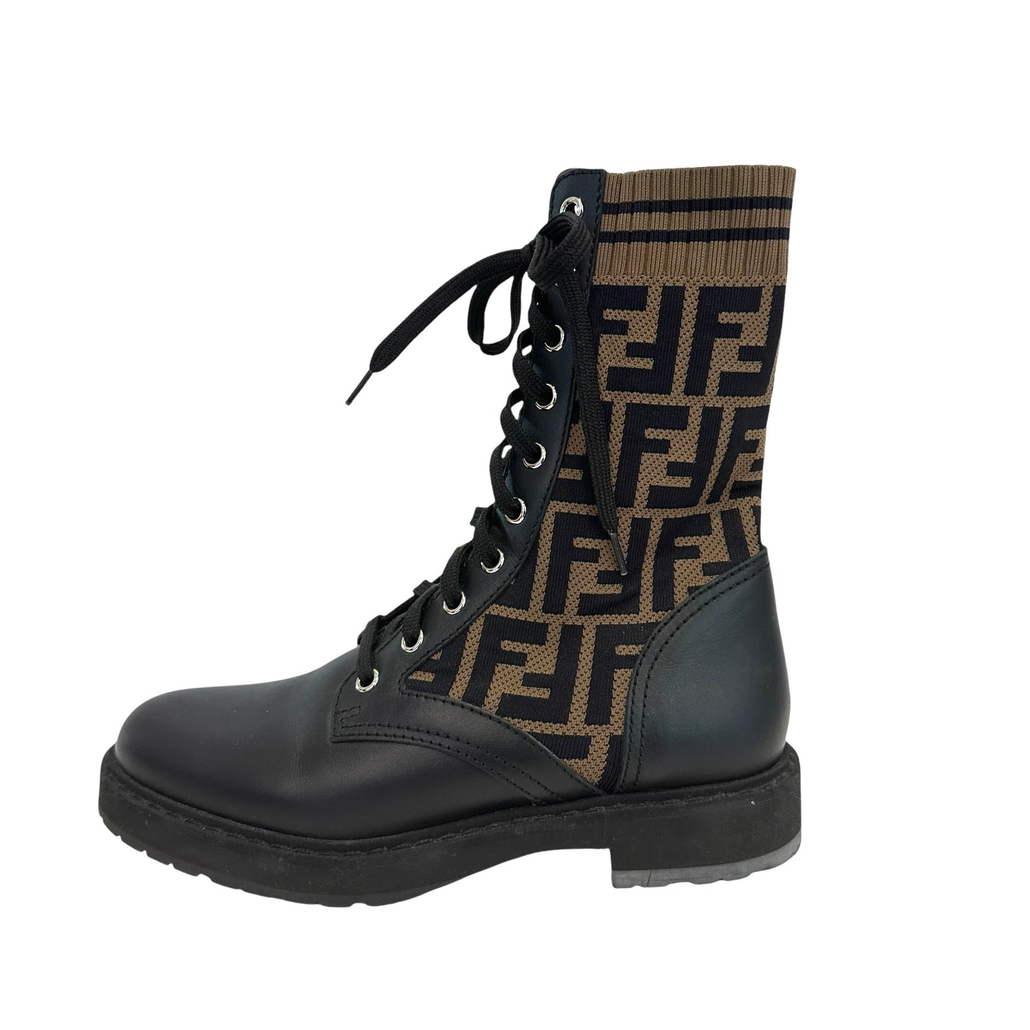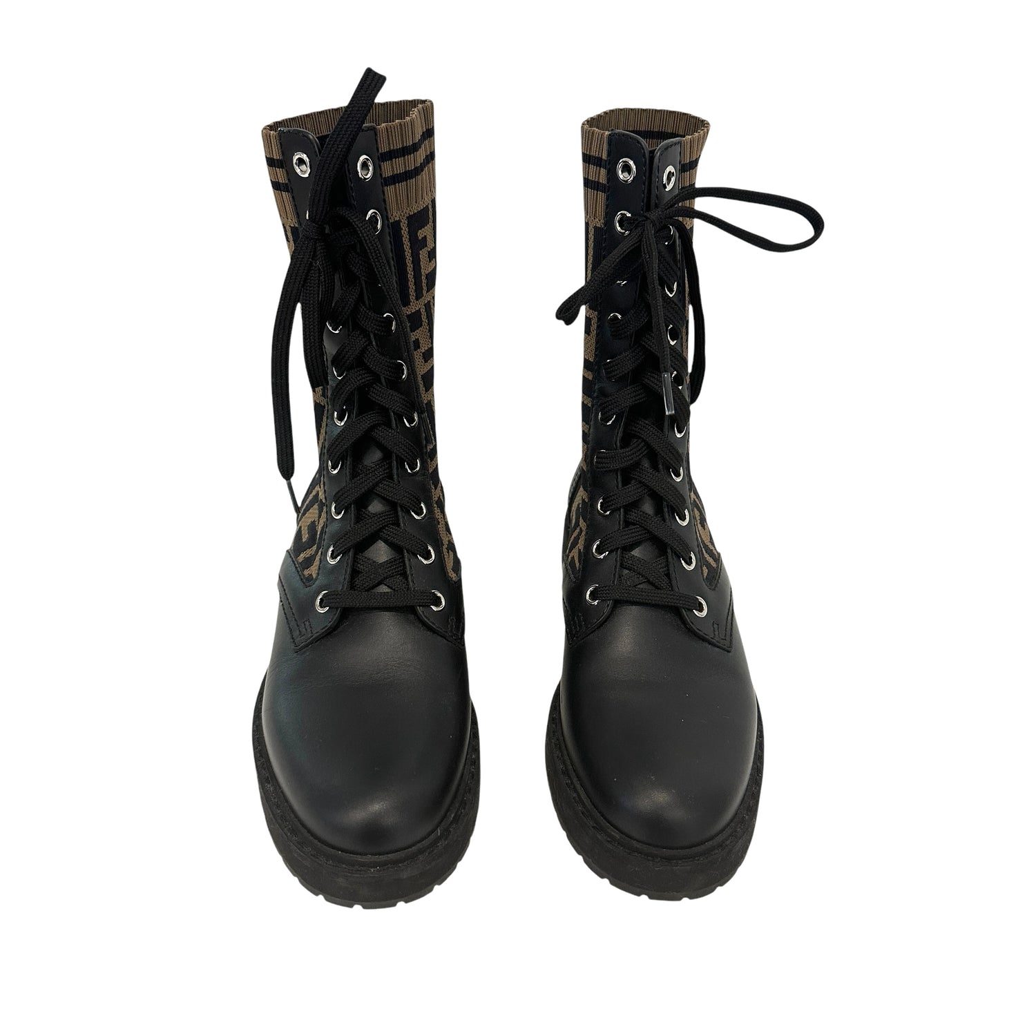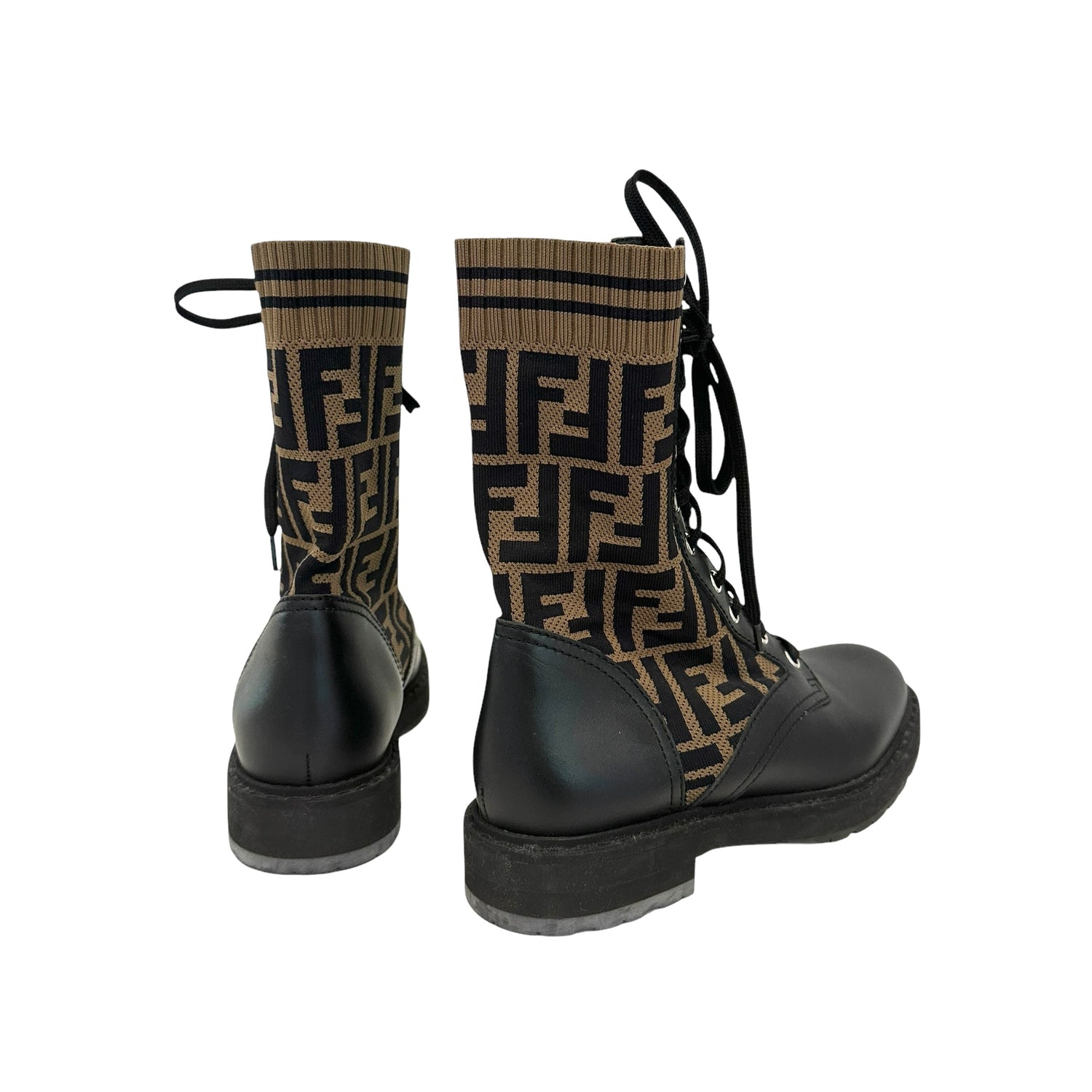 Fendi boots with Zucca logo socks. Laces at front. Very easy to slide on thanks to the sock like ankle. Designer size 36.5