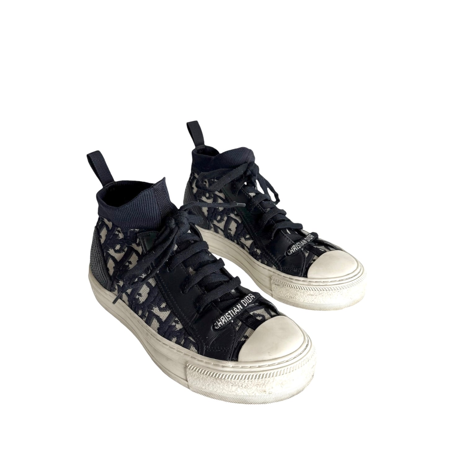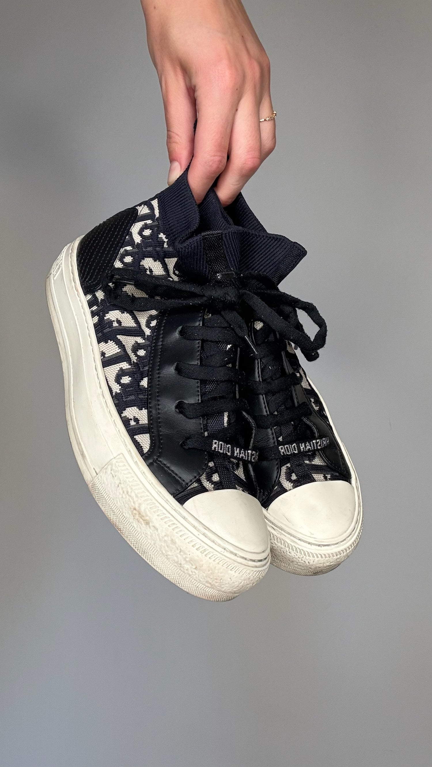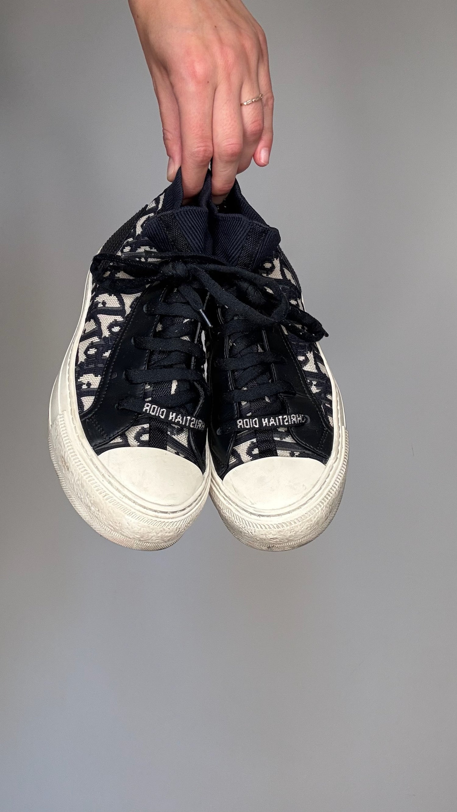 Christian Dior Slip On sneakers. Blue and cream logo canvas. White rubber outer soles. Designer size 36.5