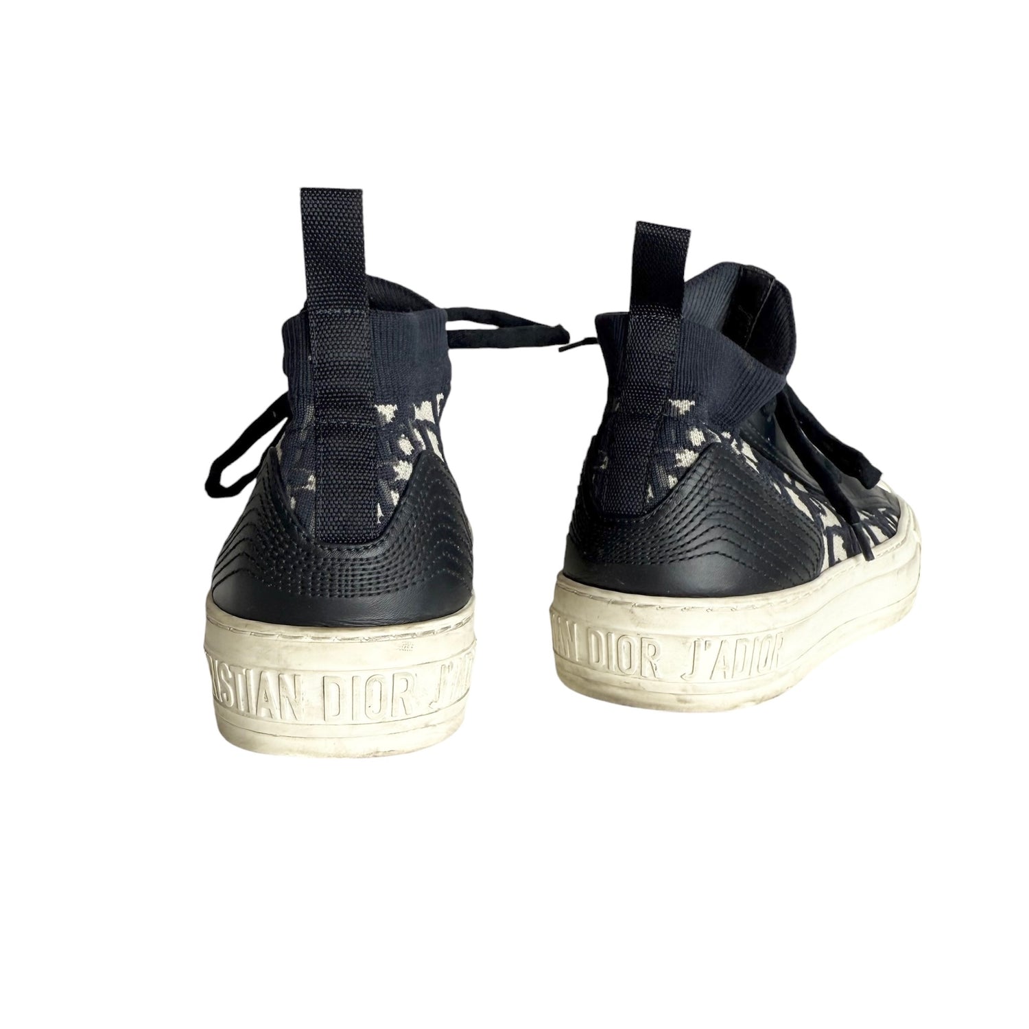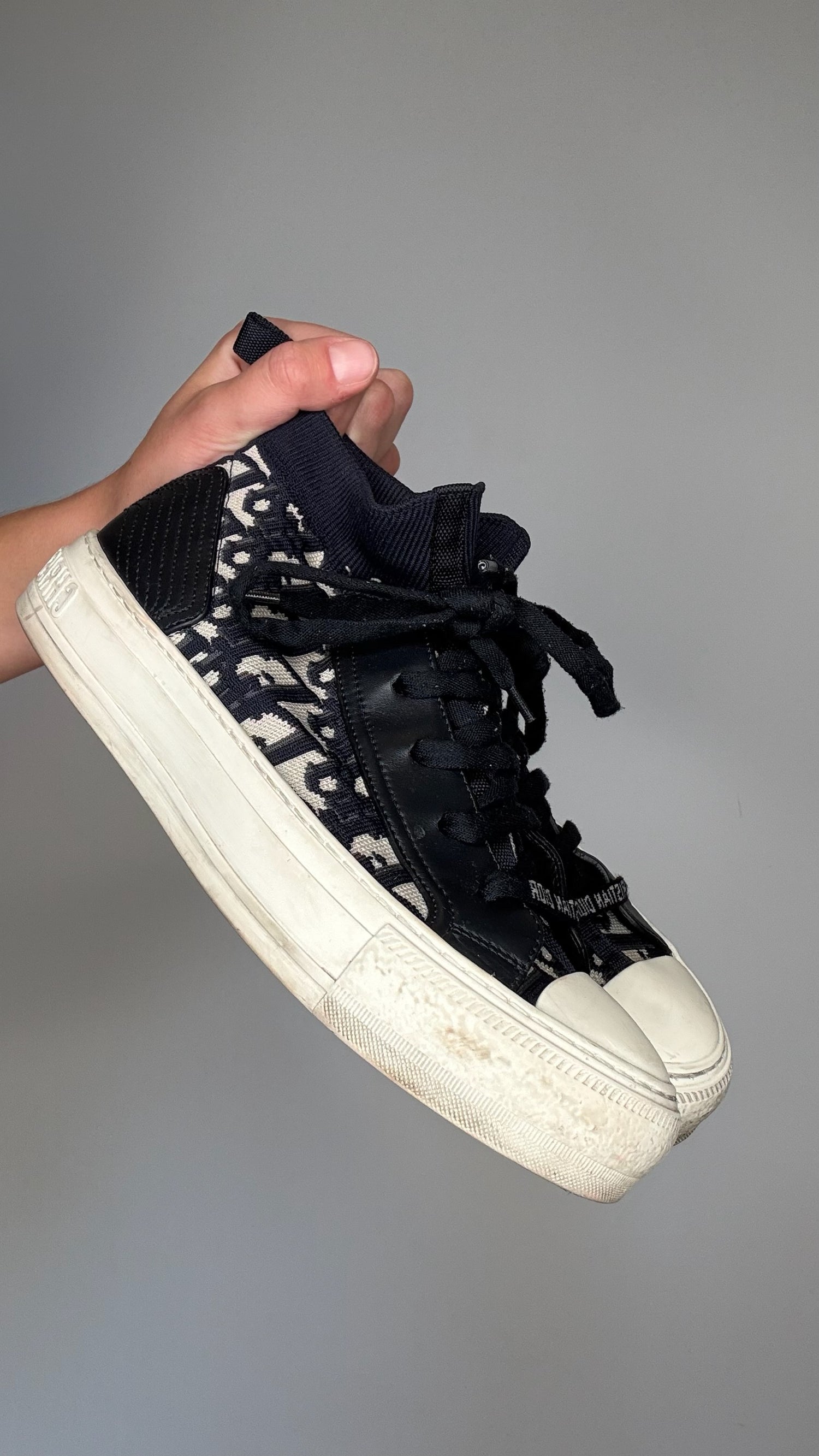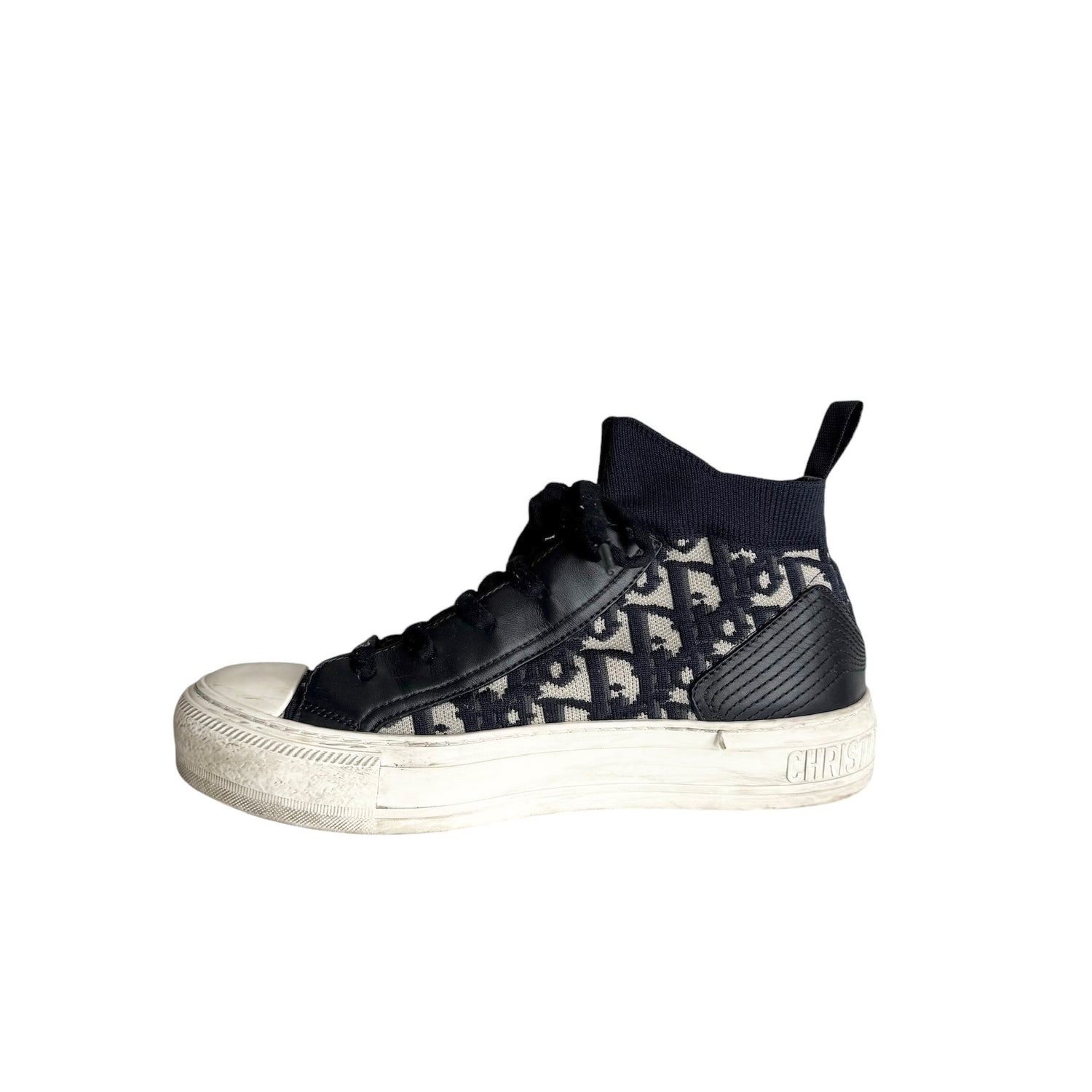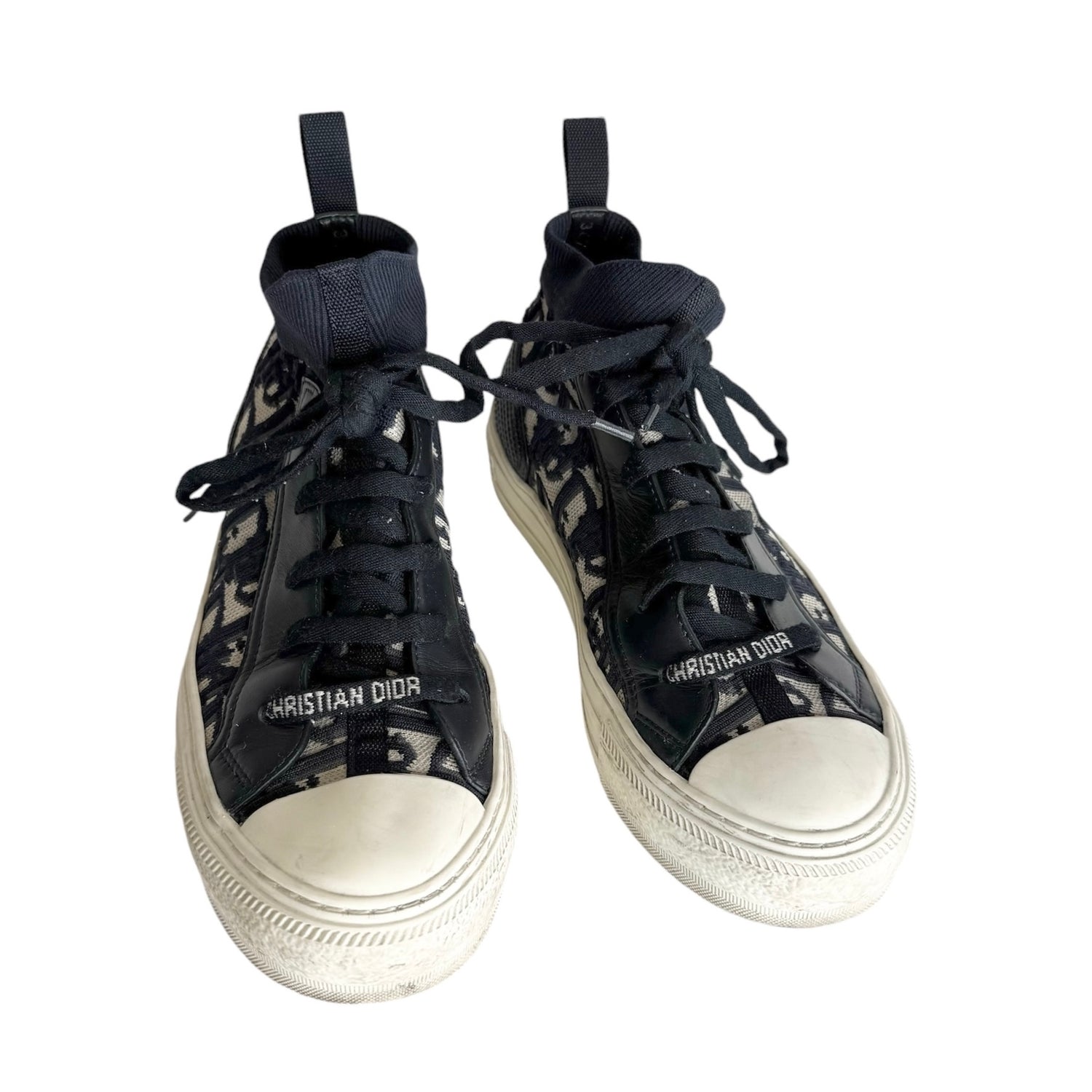 Christian Dior Slip On sneakers. Blue and cream logo canvas. White rubber outer soles. Designer size 36.5