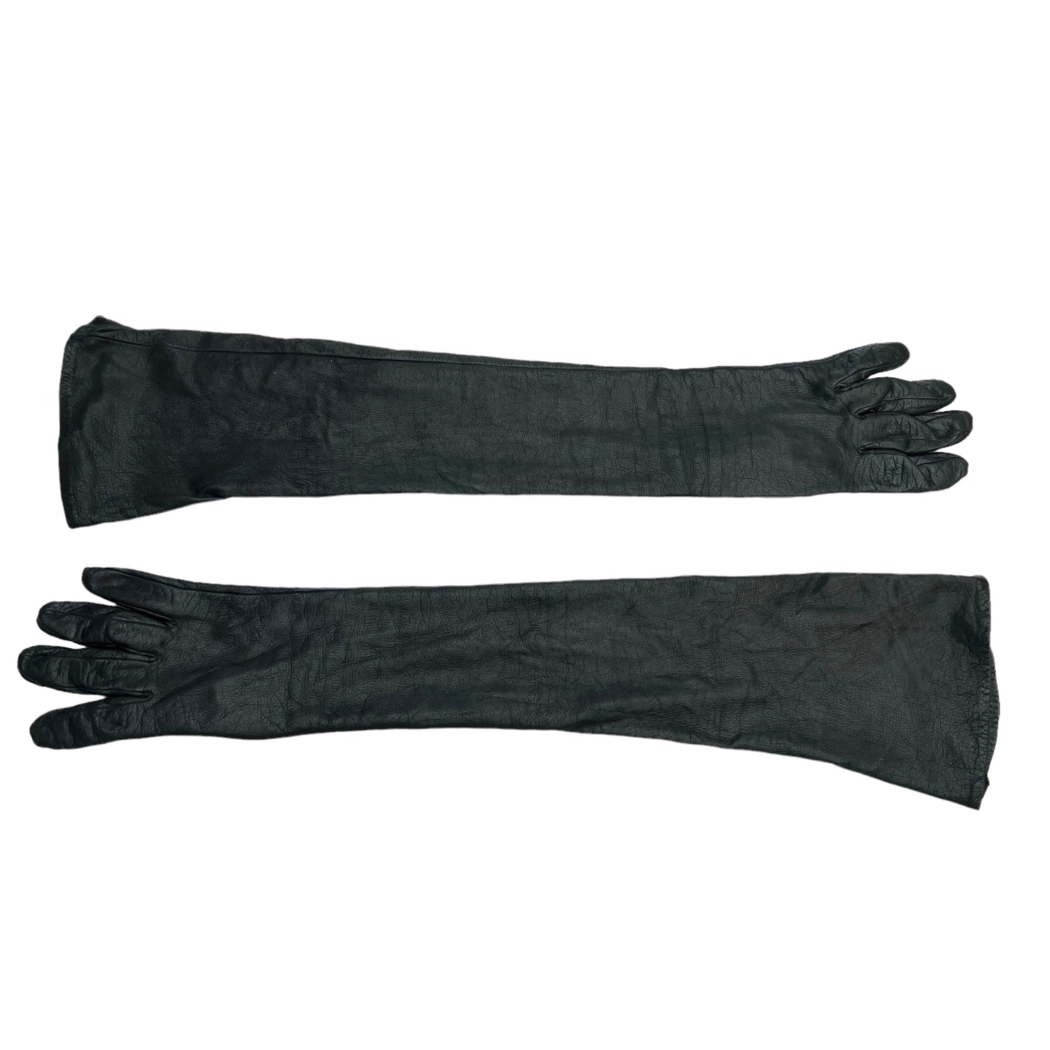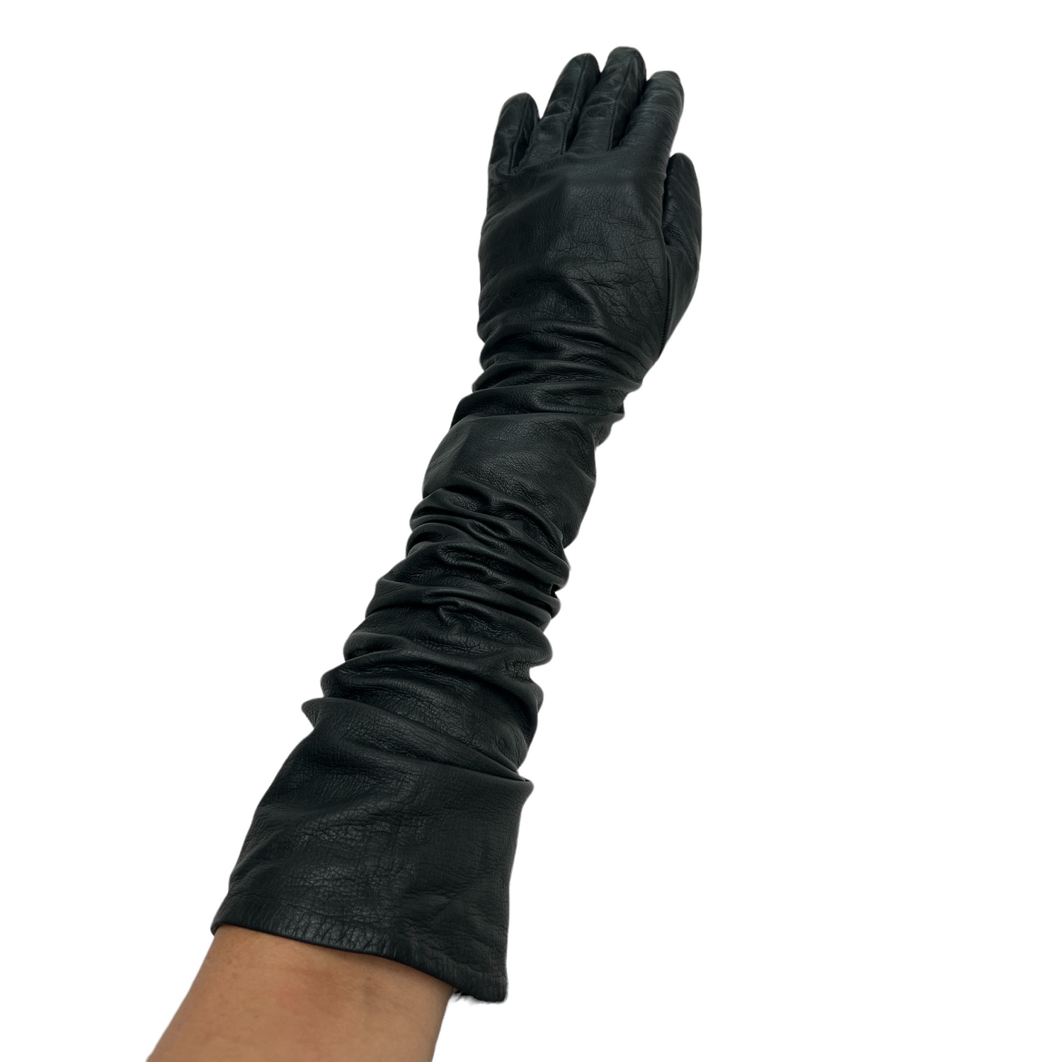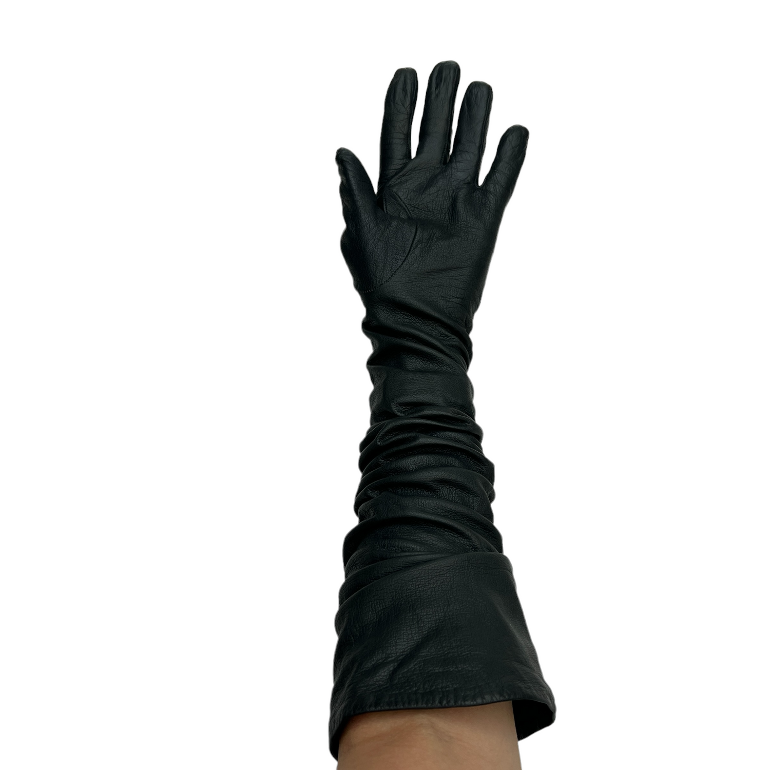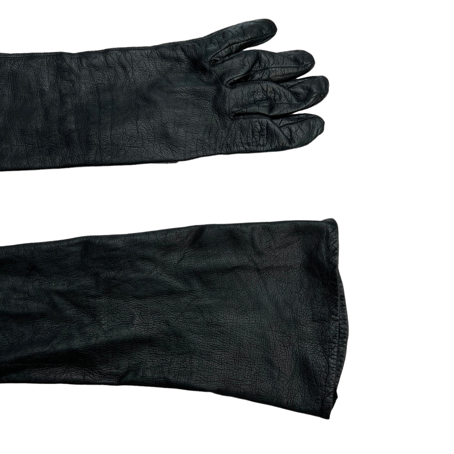Black buttery soft leather gloves. Can be worn up the arm or cringed on forearms. Size 7.