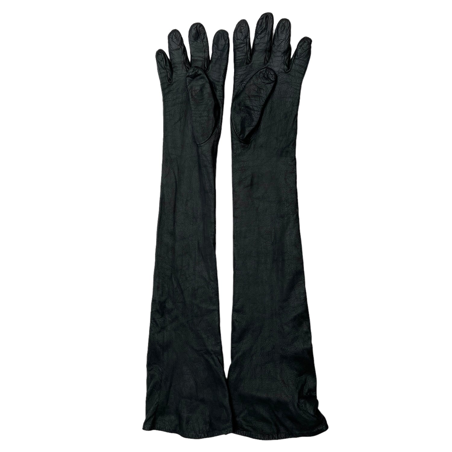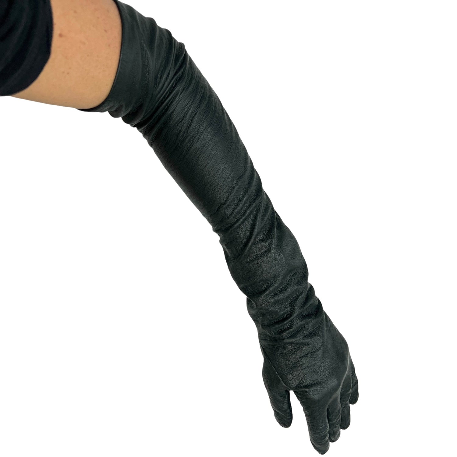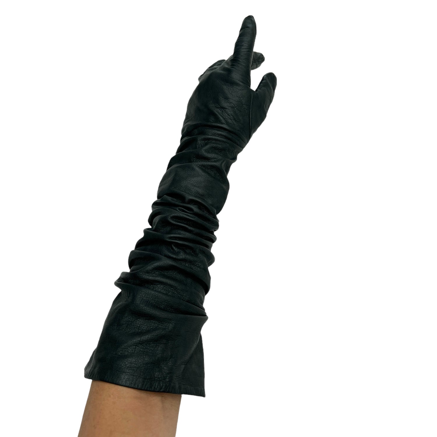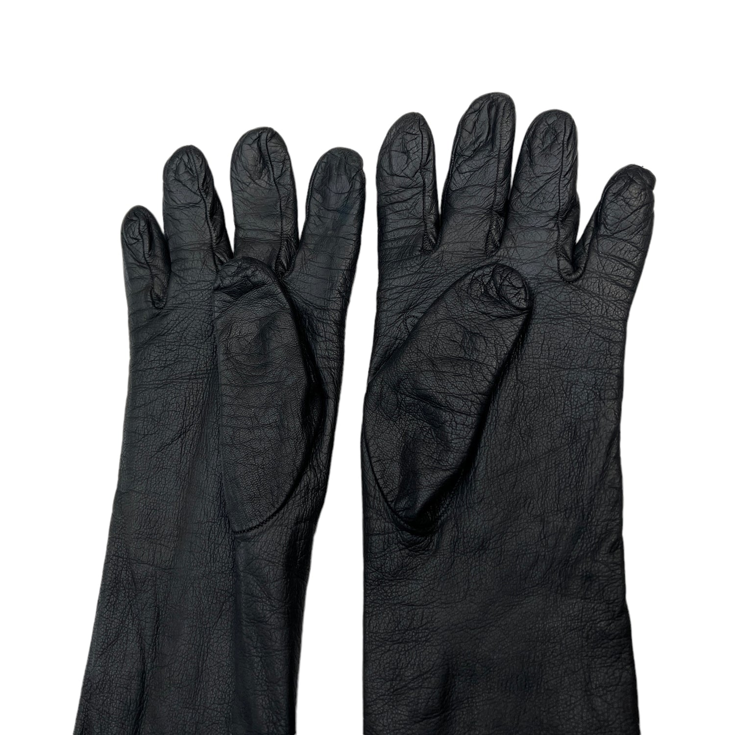 Black buttery soft leather gloves. Can be worn up the arm or cringed on forearms. Size 7.