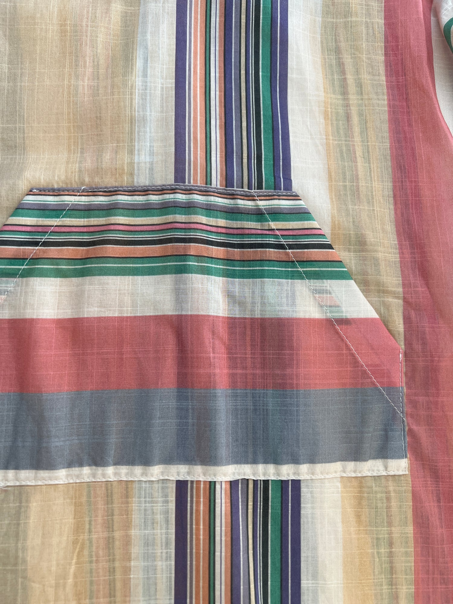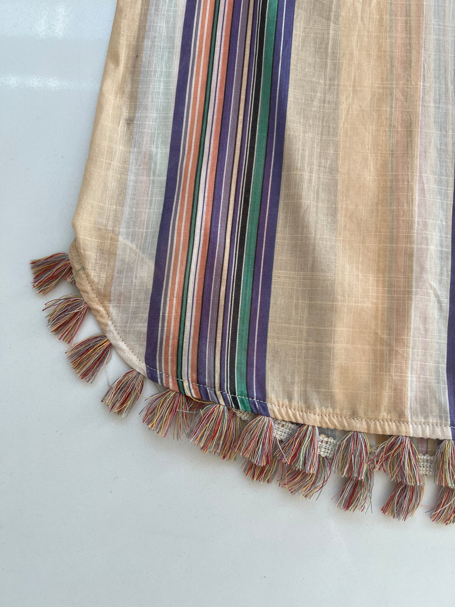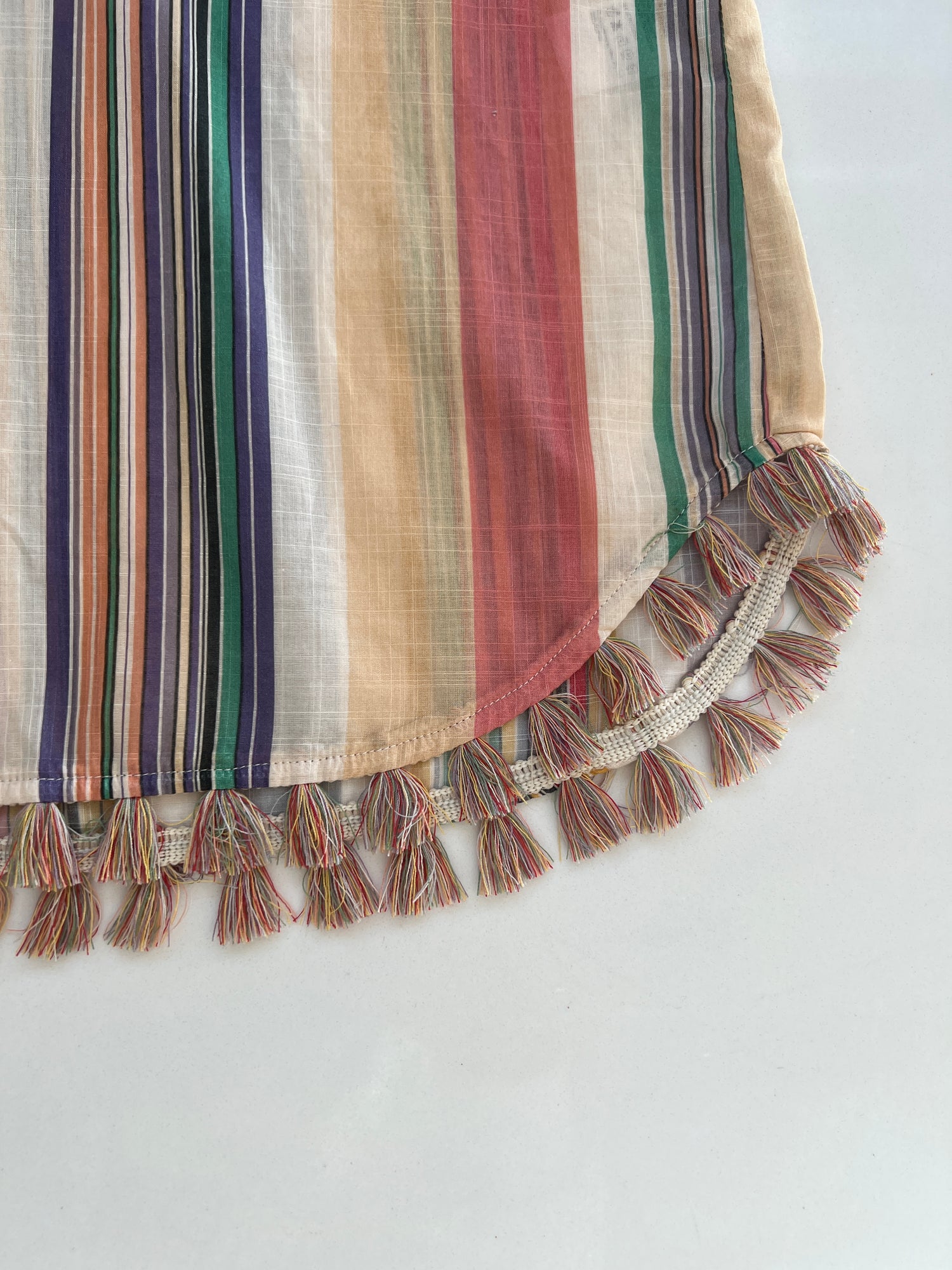 Zimmermann cotton poncho for kids. Lightweight. Drawstrings at neck. Hoodie. Pom Pom details at wrists and bottom. One front pocket.