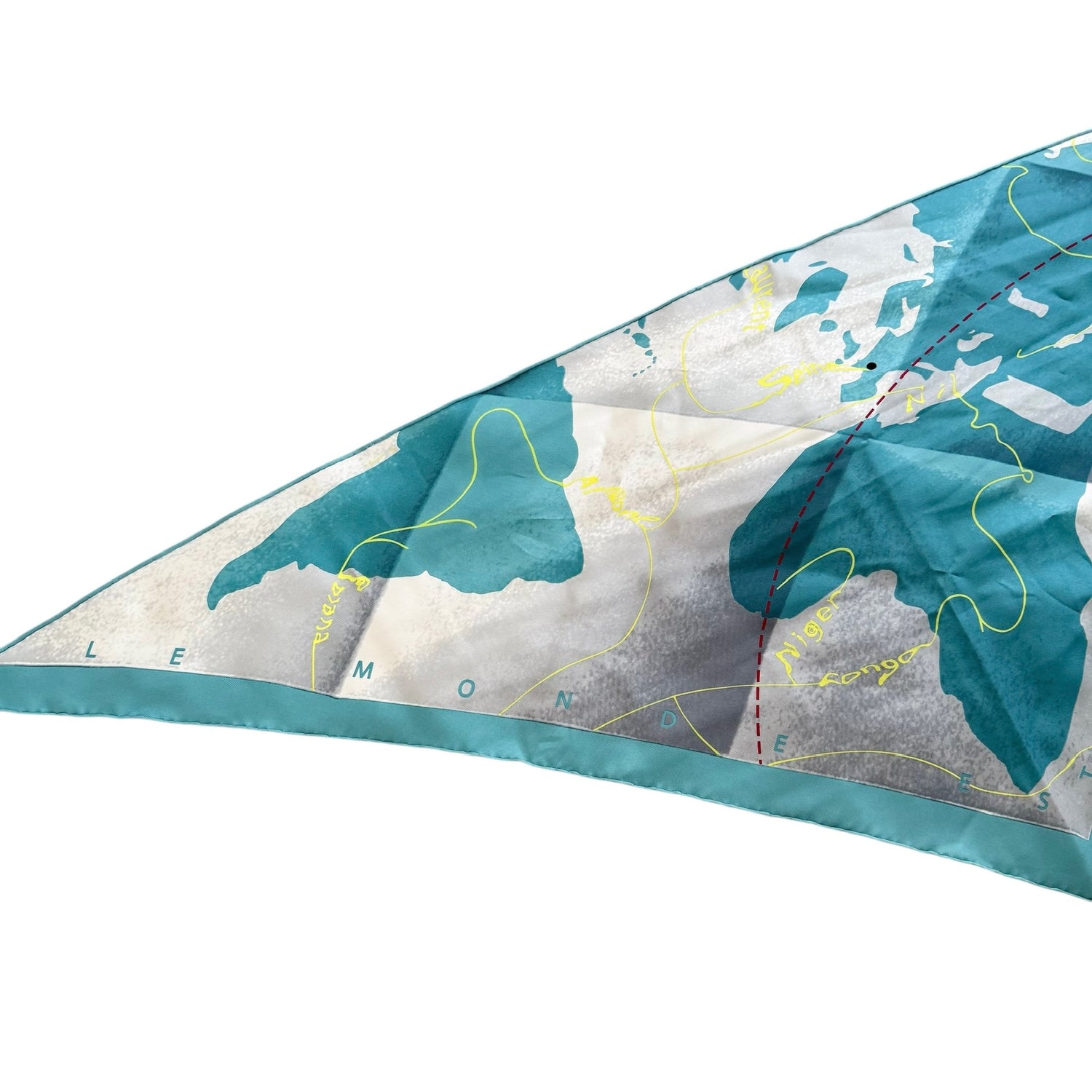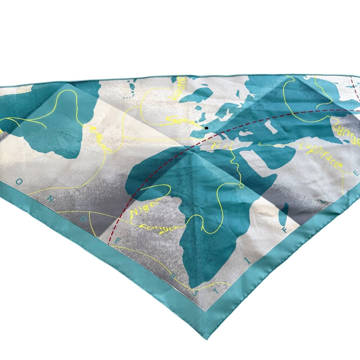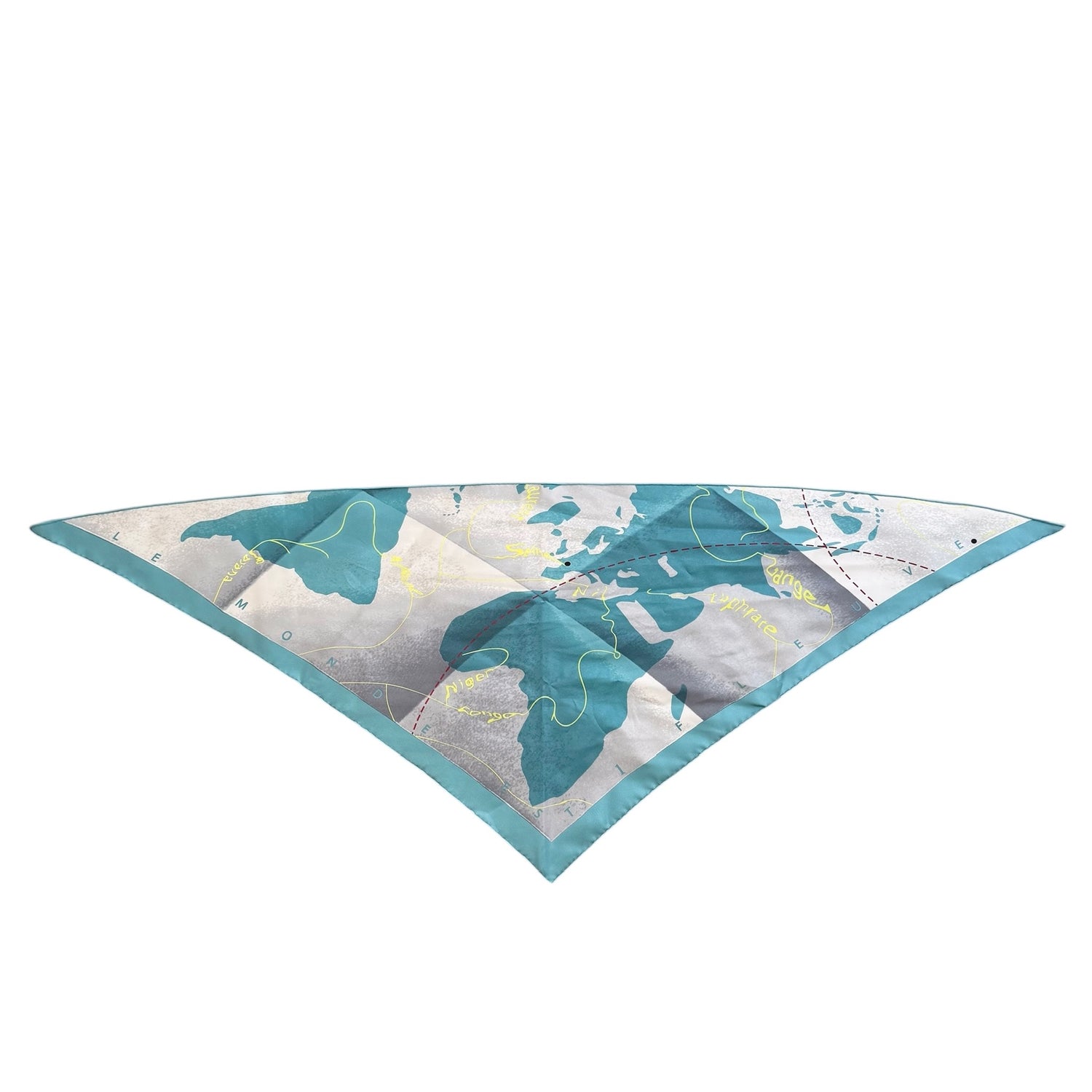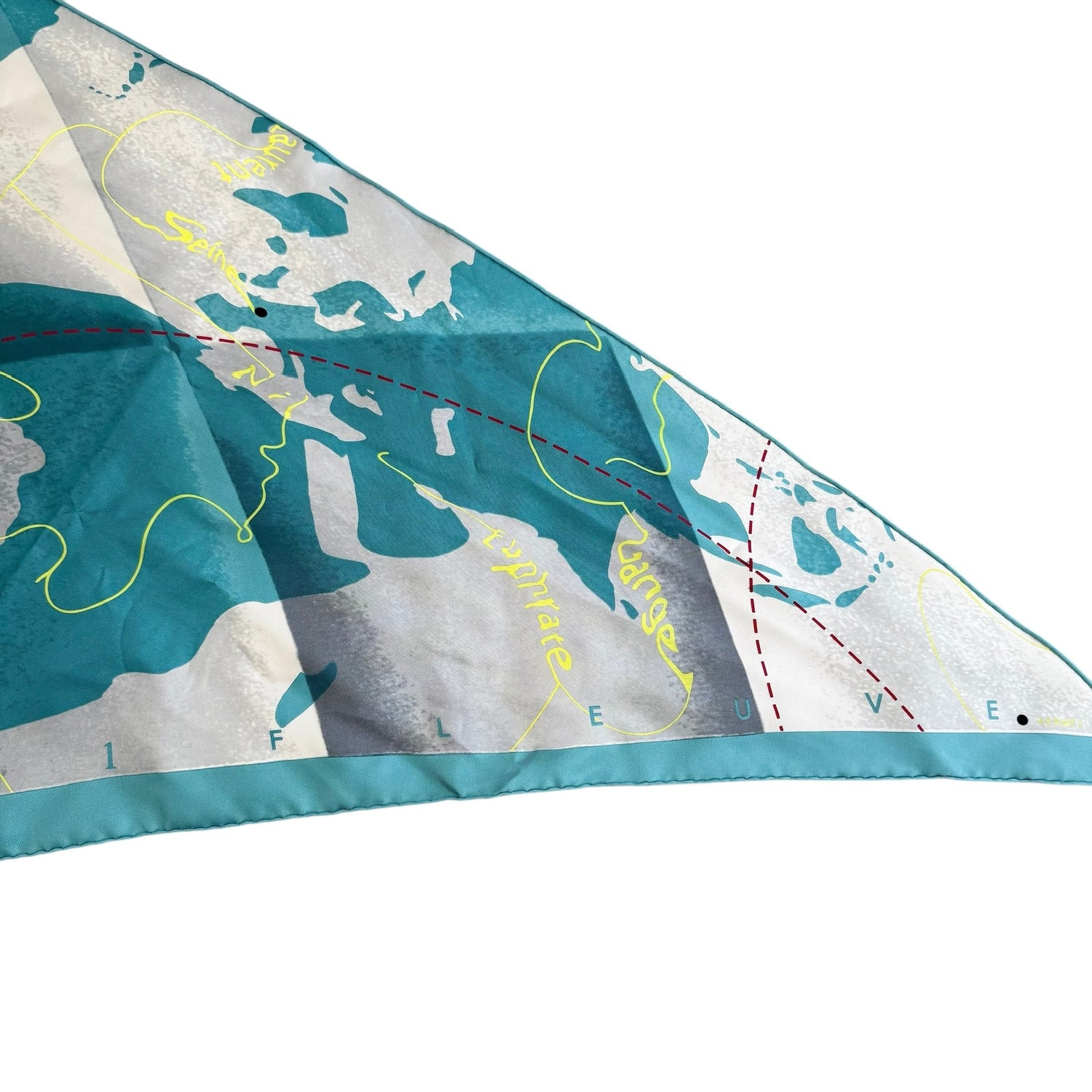 Hermes triangle silk scarf. Blue and light grey map print. Can be worn as a cute top, on neck or as a hair piece.