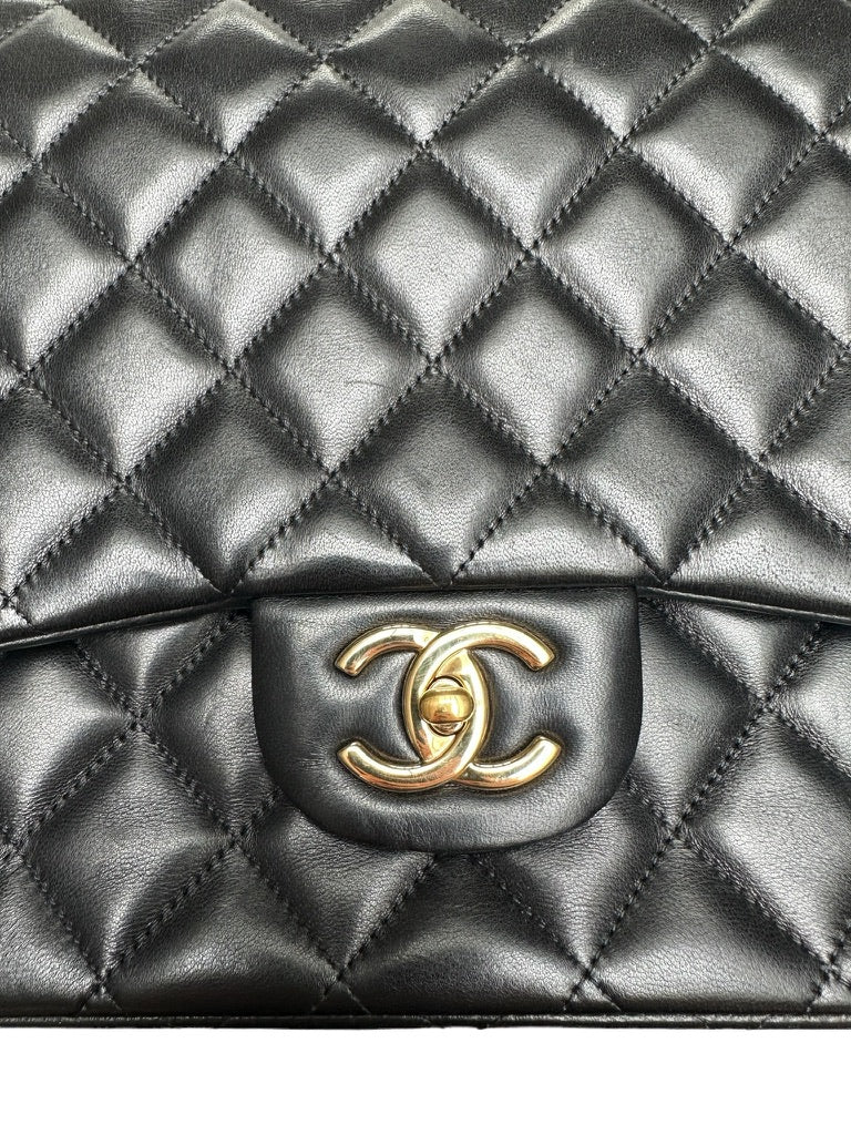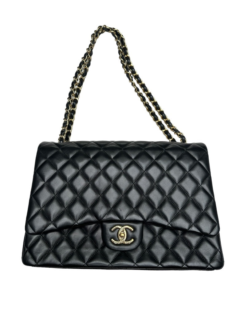 Jumbo Chanel bag in smooth leather. Gold-tone hardware. Double flap. Double chain strap. Burgundy leather lining. One zipper pocket inside. Made in Italy.