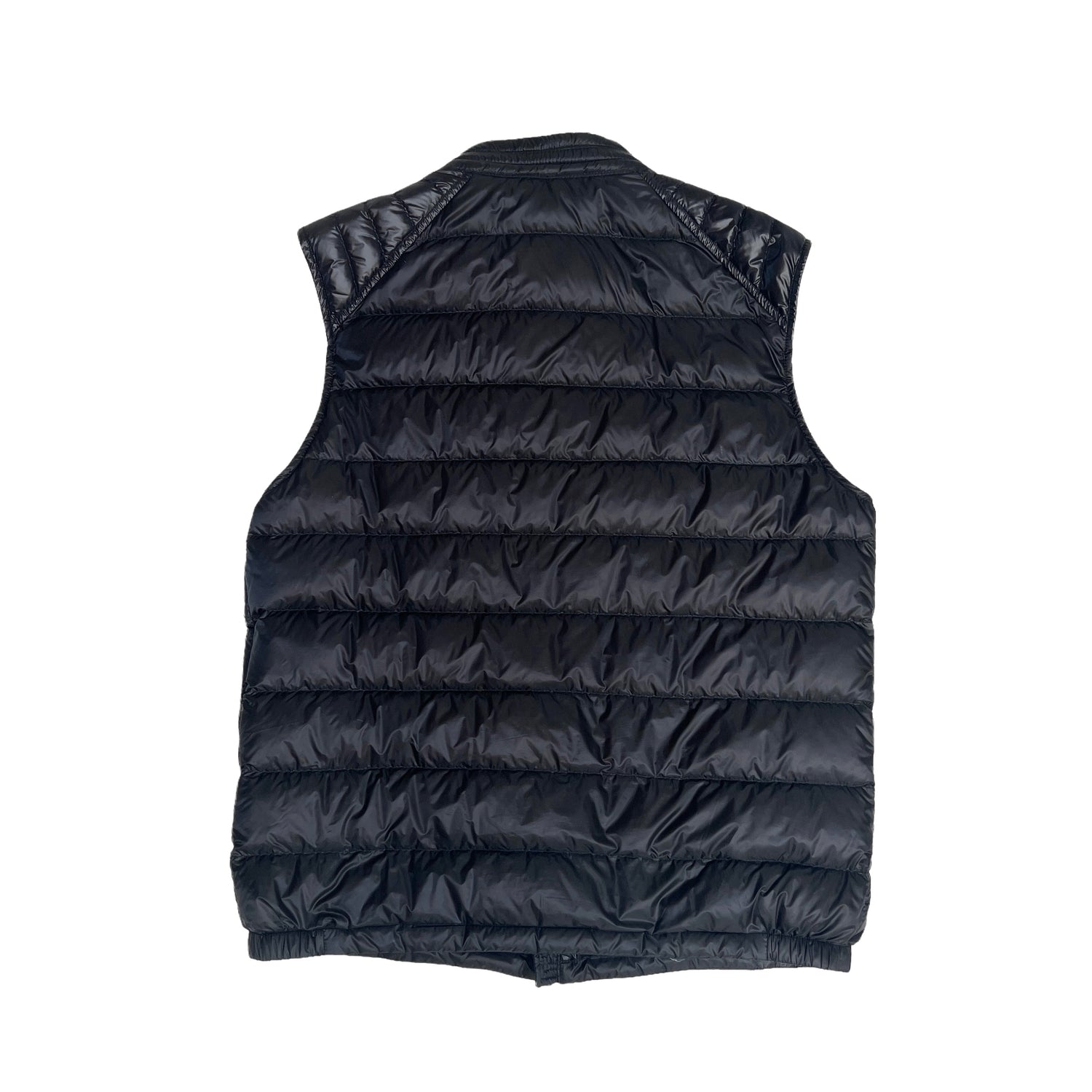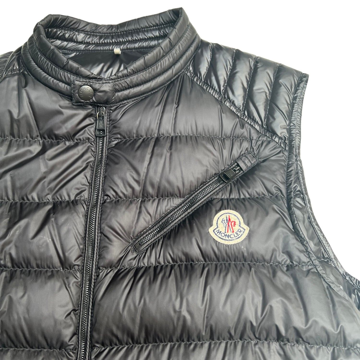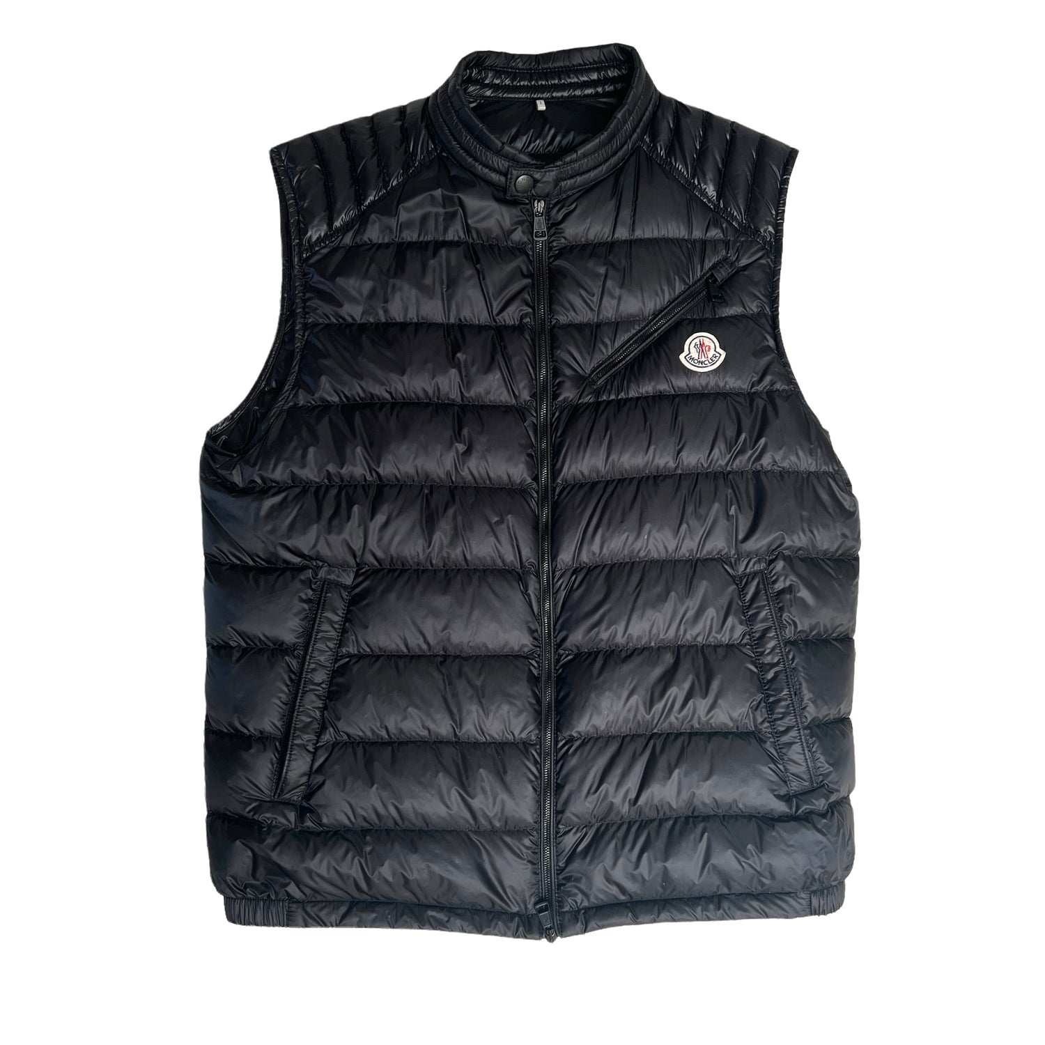 Moncler mid-season down puffer jacket. Black and sleeveless. Size 3.