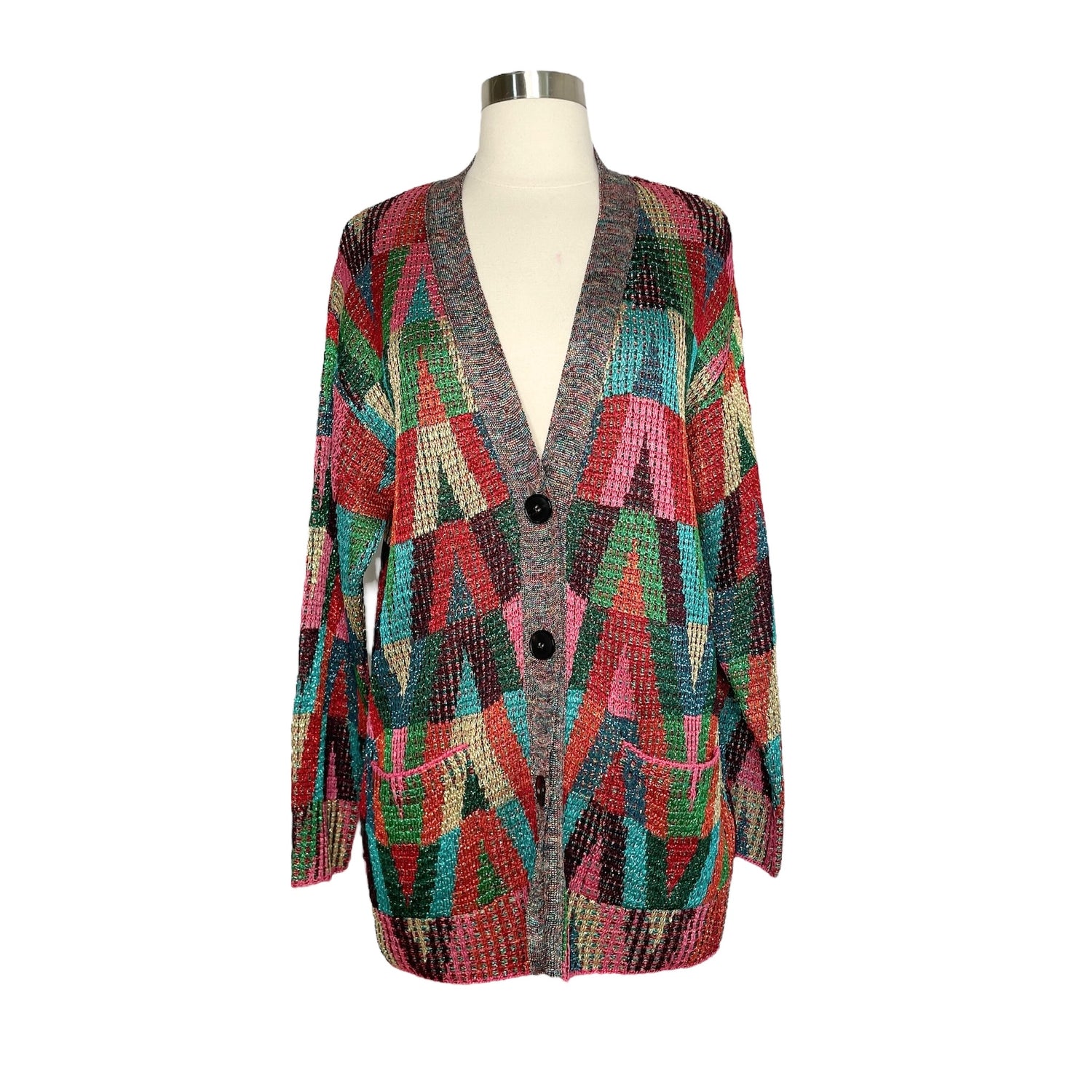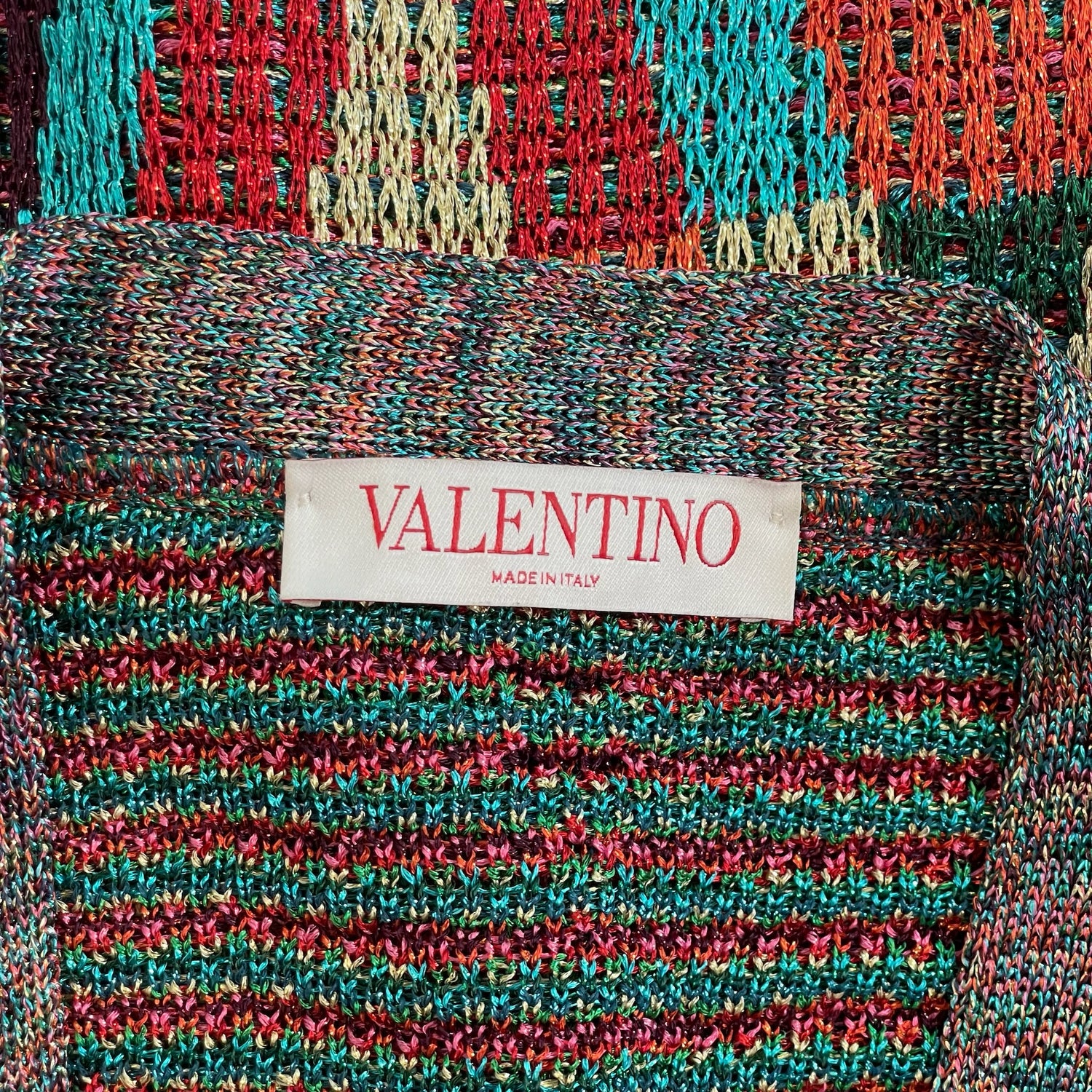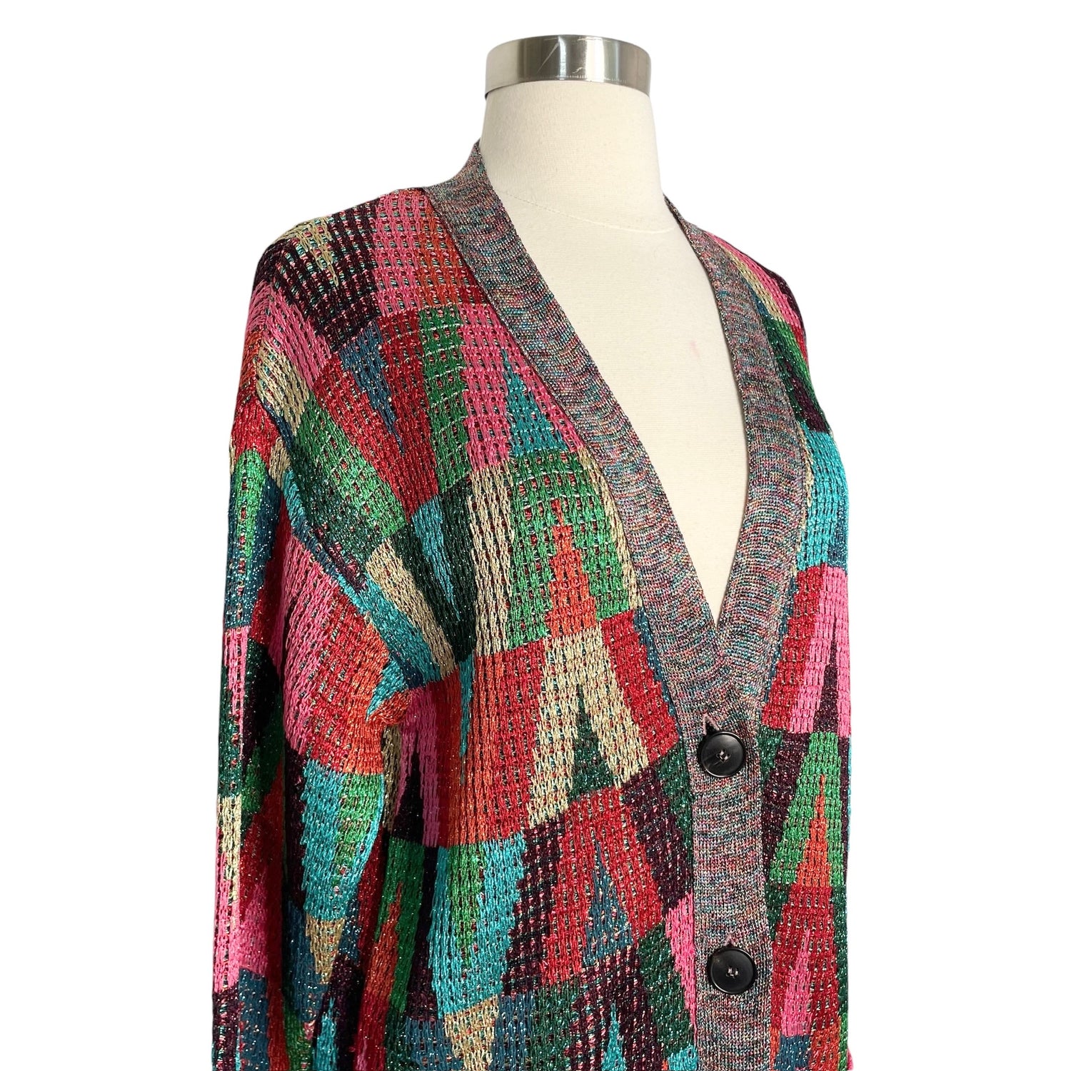 Valentino metallic multicolor sweater. Logo cardigan in bright colors. Button closure at front. Designer size small.