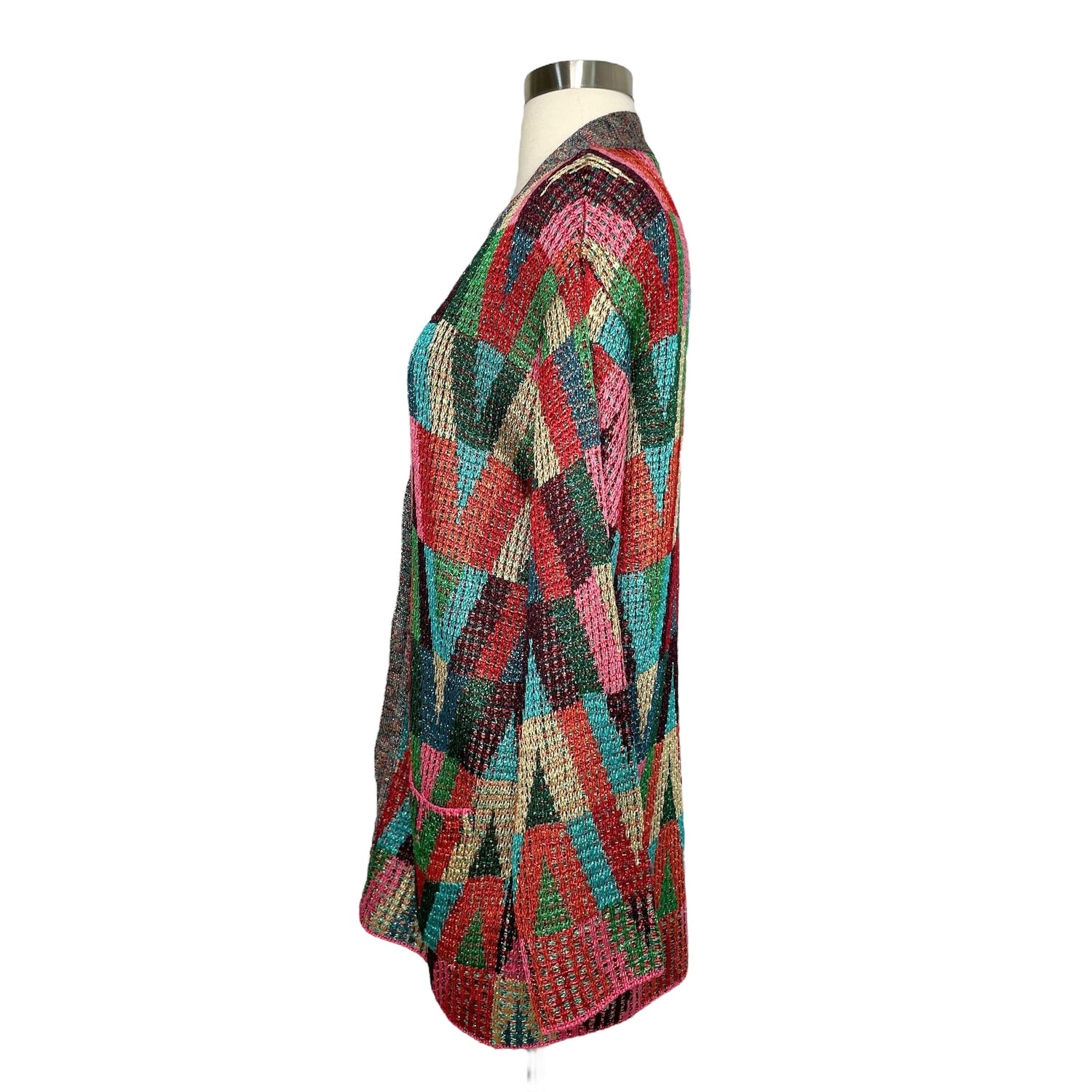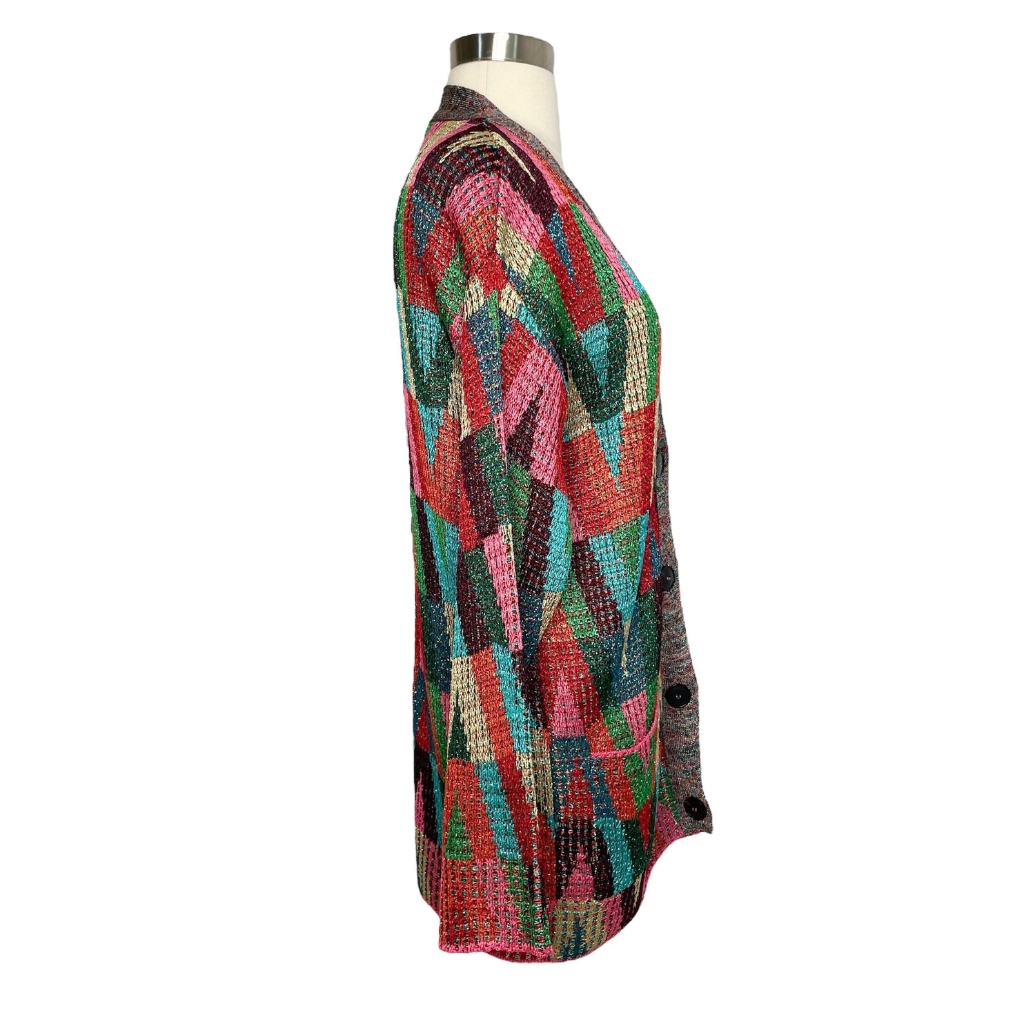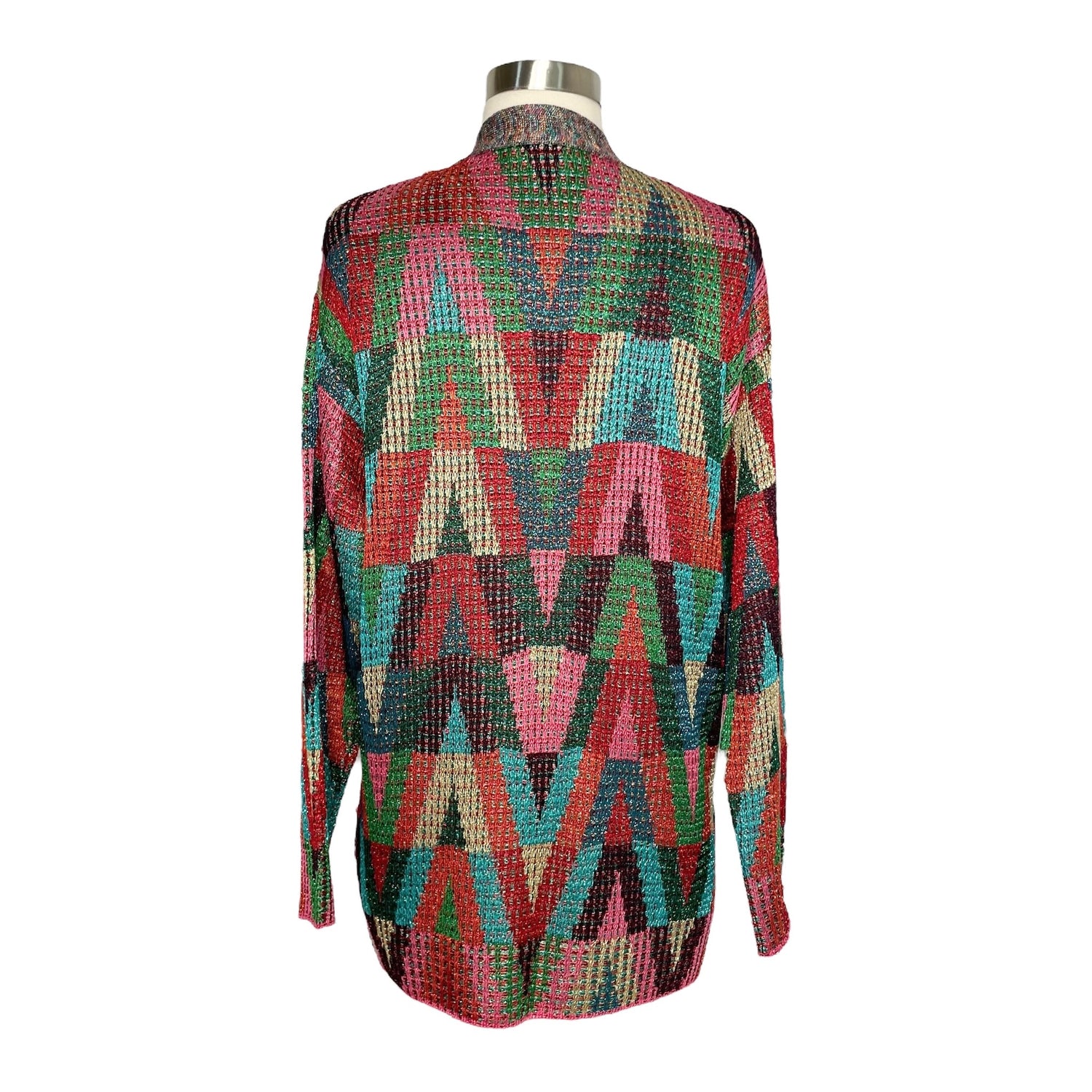 Valentino metallic multicolor sweater. Logo cardigan in bright colors. Button closure at front. Designer size small.