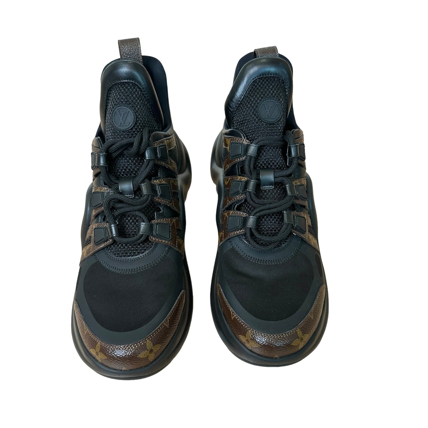 Louis Vuitton Archlight sneakers. Monogram coated canvas and black mesh. Black rubber outer soles. Designer size 42.