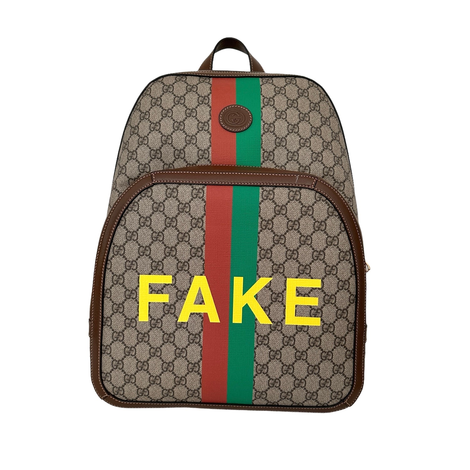 Gucci backpack. Fake/Not collection from 2020. Coated monogram canvas with brown leather trims. Zipper closure. Beige canvas lining.