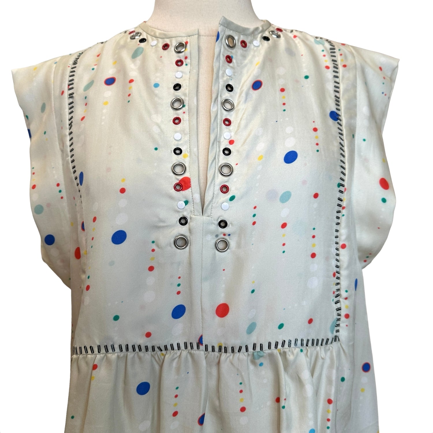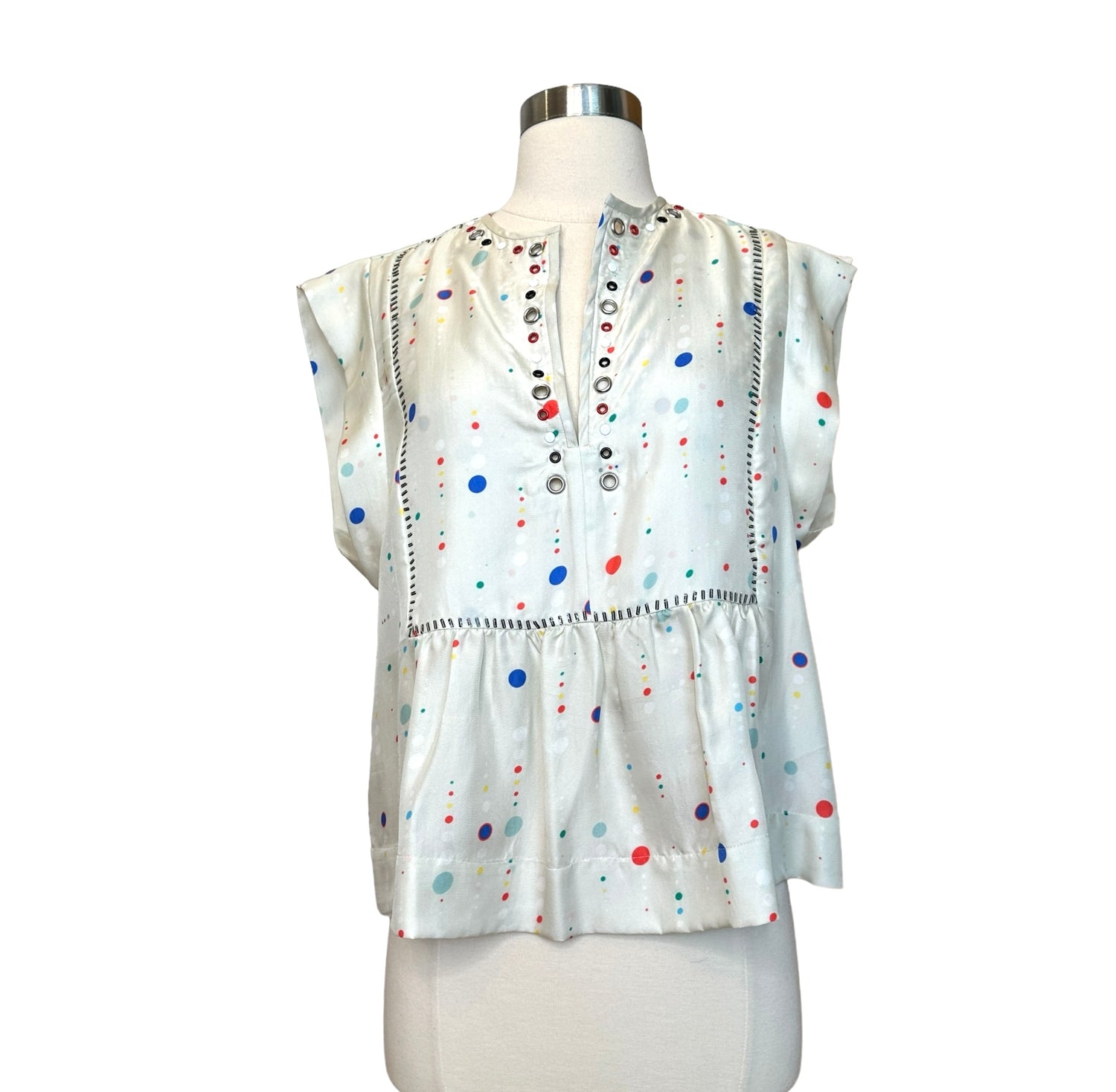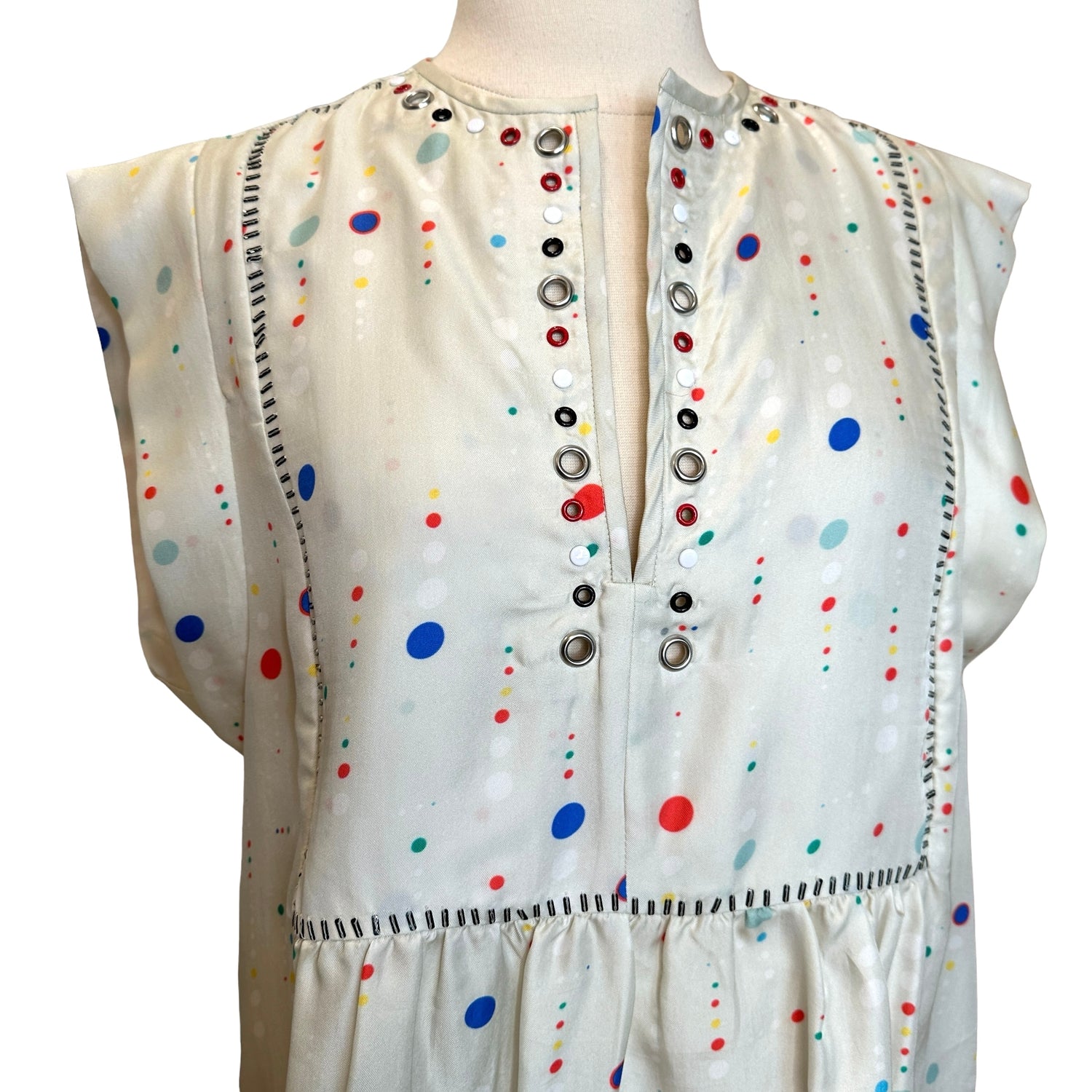 Isabel Marant silk tank top. Off-white silk top. Sequins and beads embellishments. Multicolor and lightweight. Designer size 38.