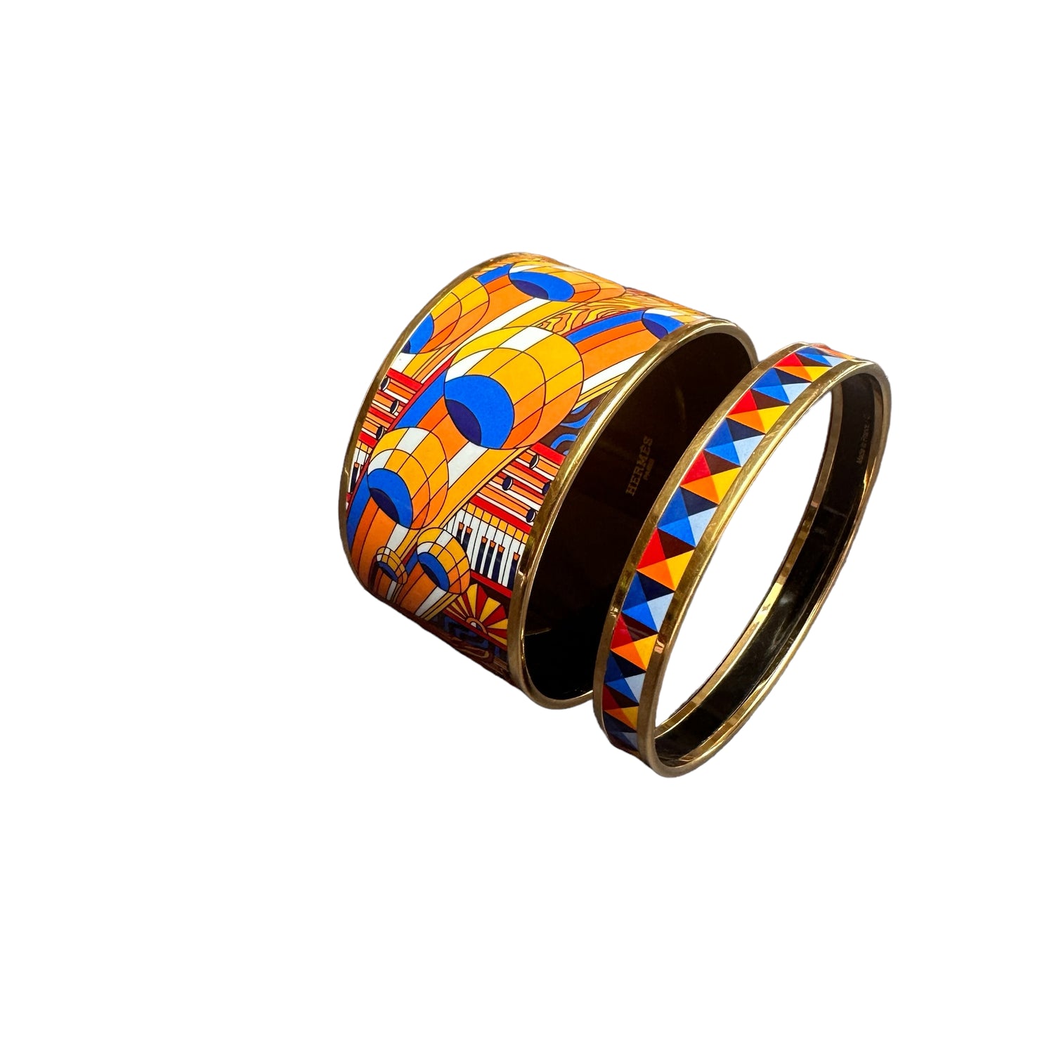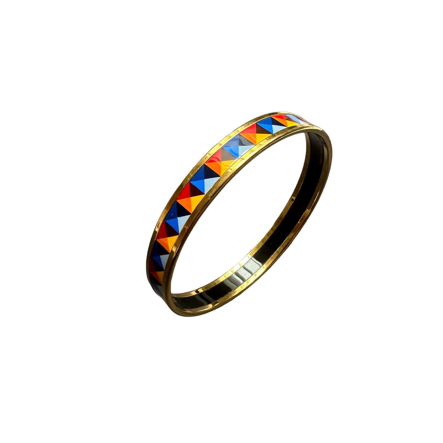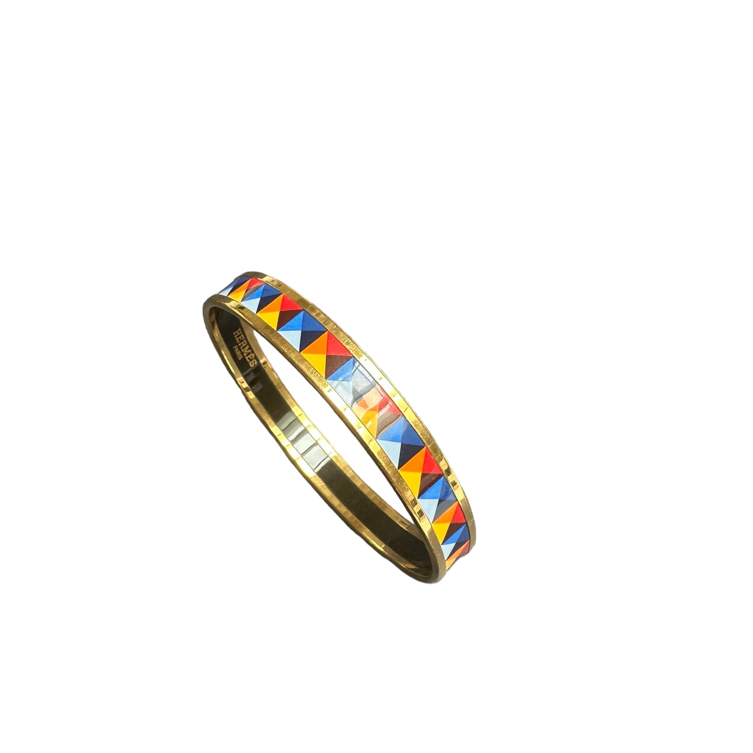 Hermes narrow enamel and gold bangle bracelet. 2012 collection. 18K yellow gold-plated brass.