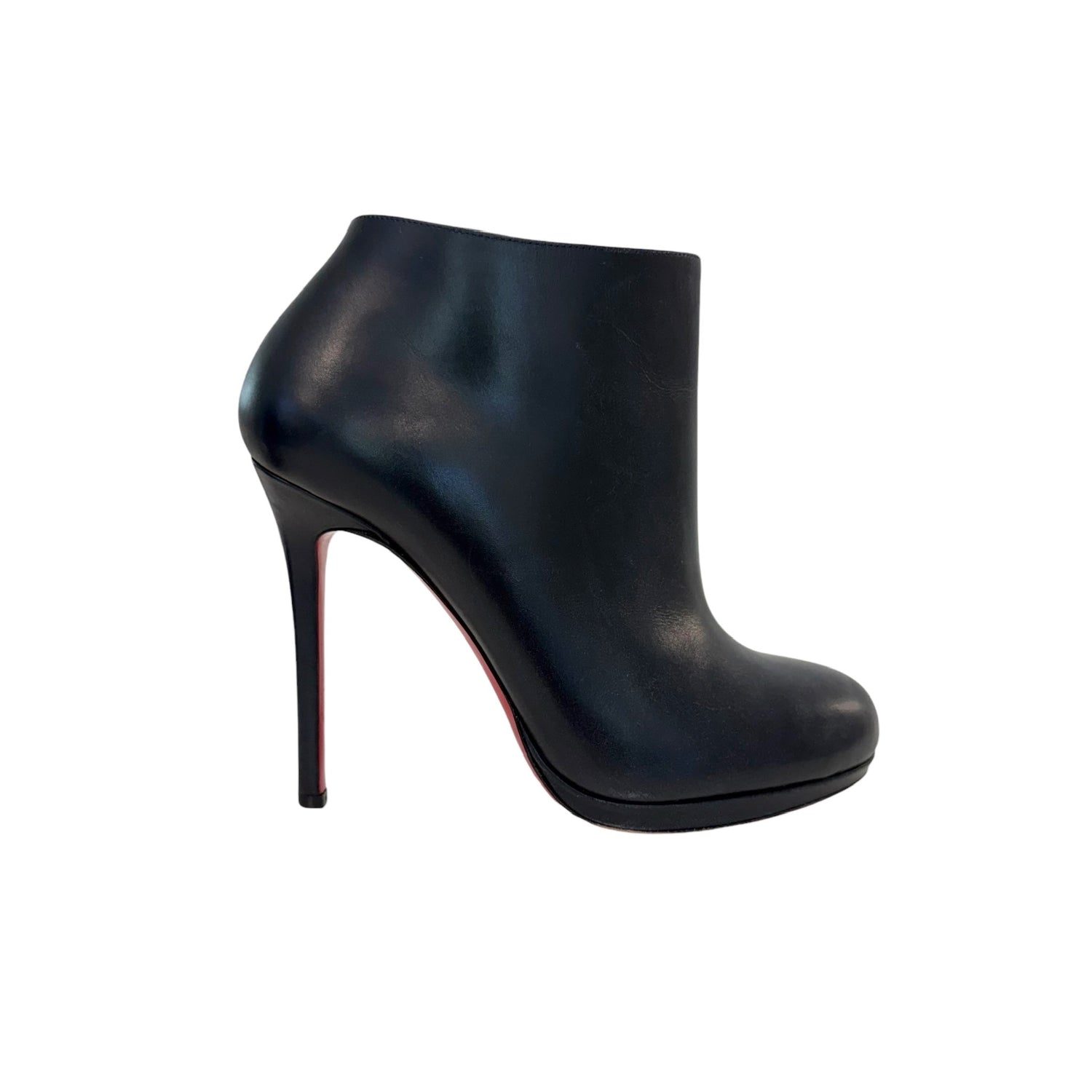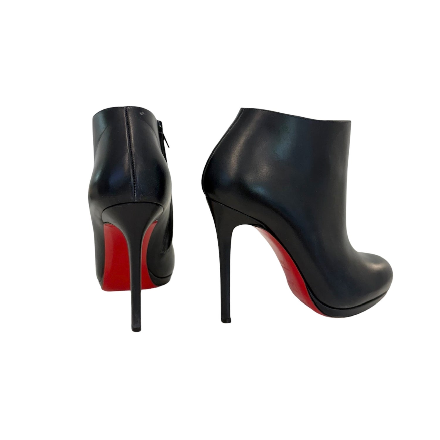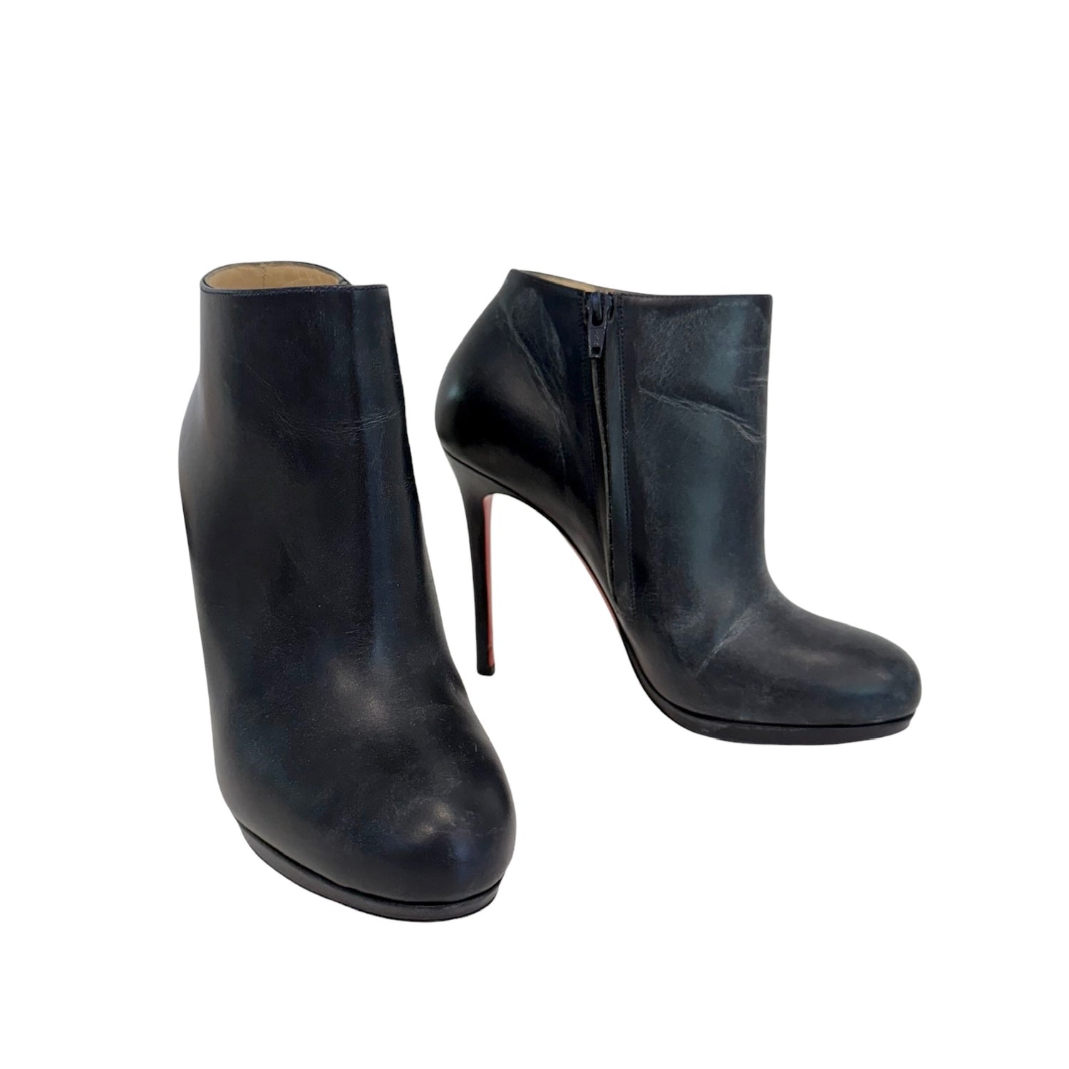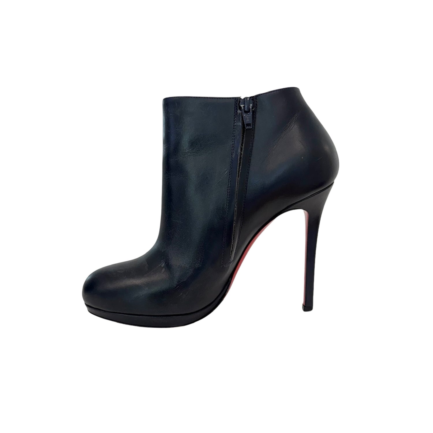 Christian Louboutin navy ankle boots. Round toe. Zipper closure at sides. Designer size 39.5