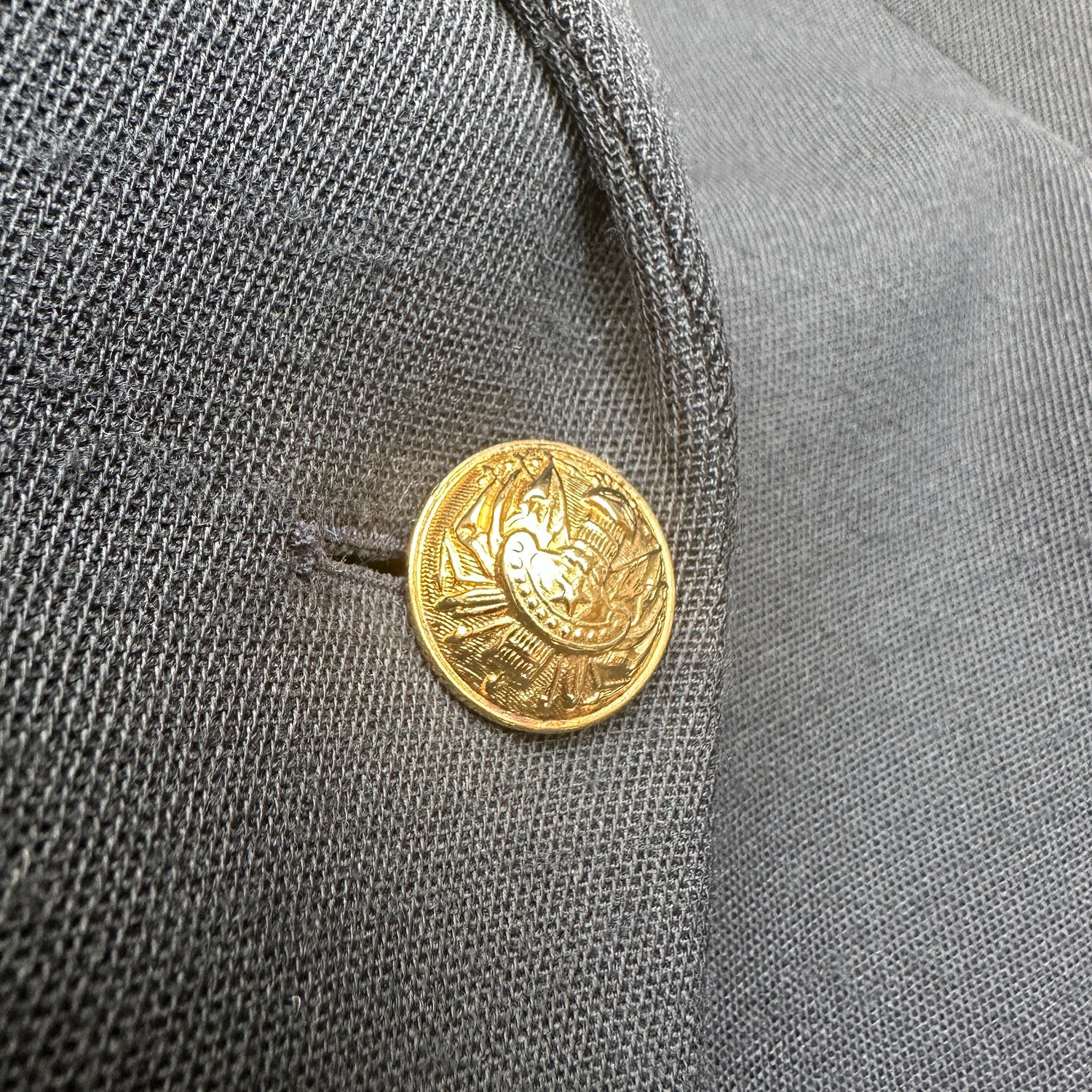 Condition: Good. Light sign of peeling at fabric. One button is missing the top design.