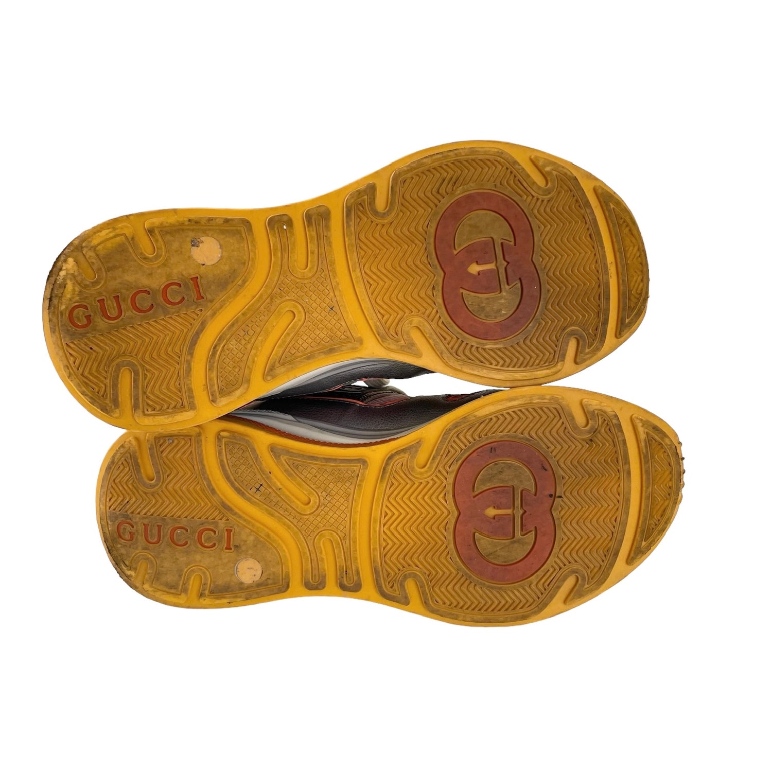 Gucci neon retro sneakers. Logo and monogram at sides. Designer size 38.