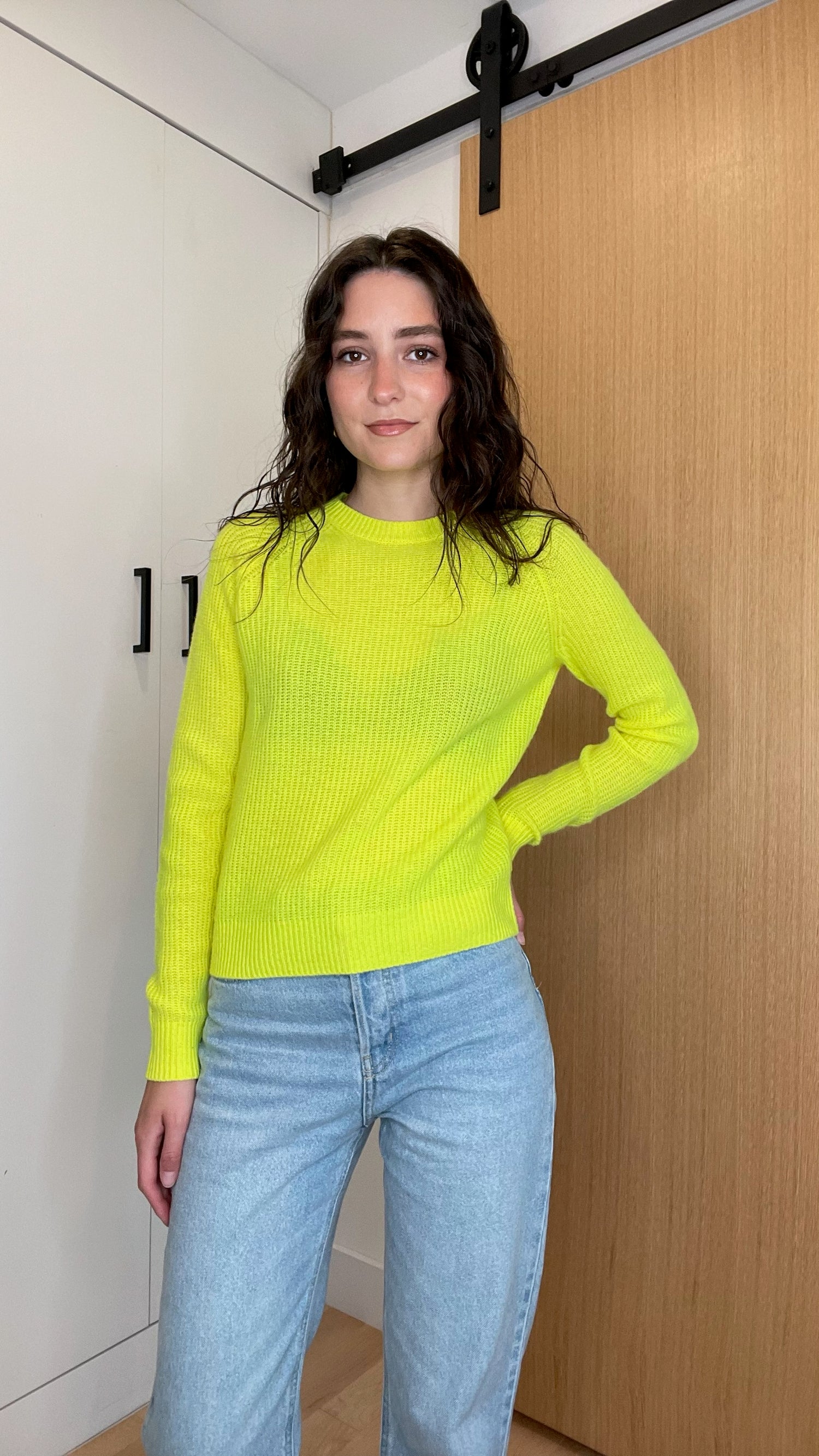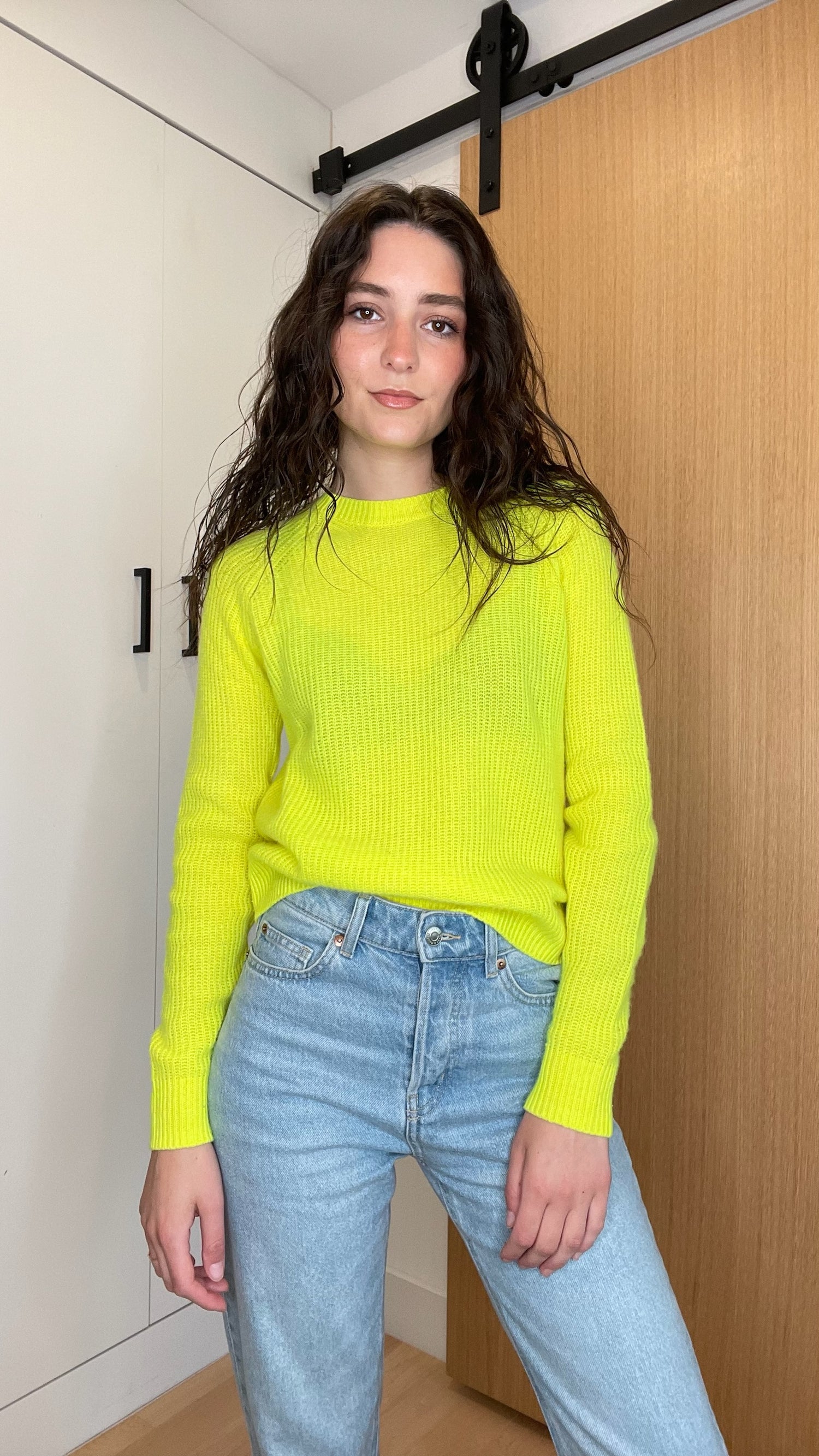 From Future neon yellow cashmere sweater. Round neck. Lightweight. Designer size small.