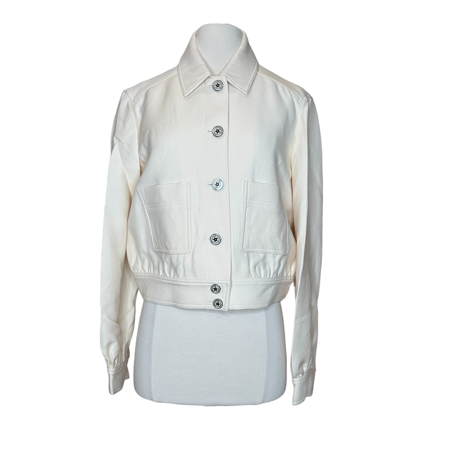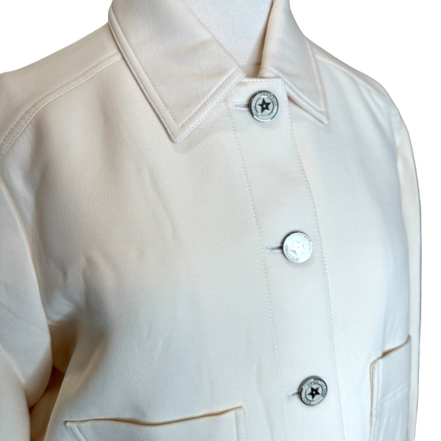 Christian Dior off-white coat.Christian Dior jacket. Patch pockets. Button closure in white and silver hardware. Designer size 42.