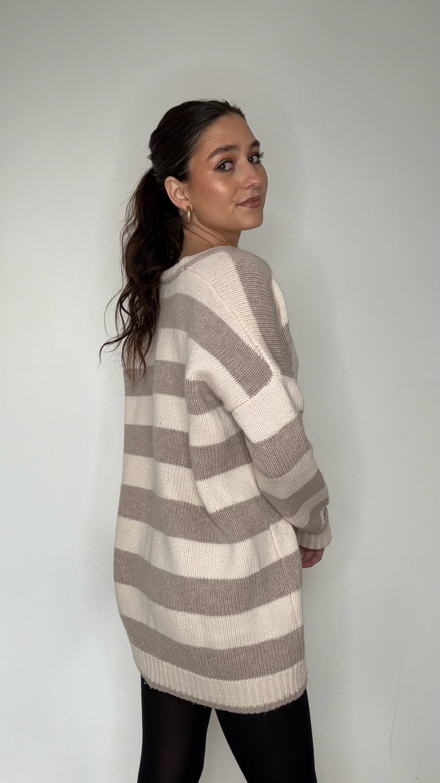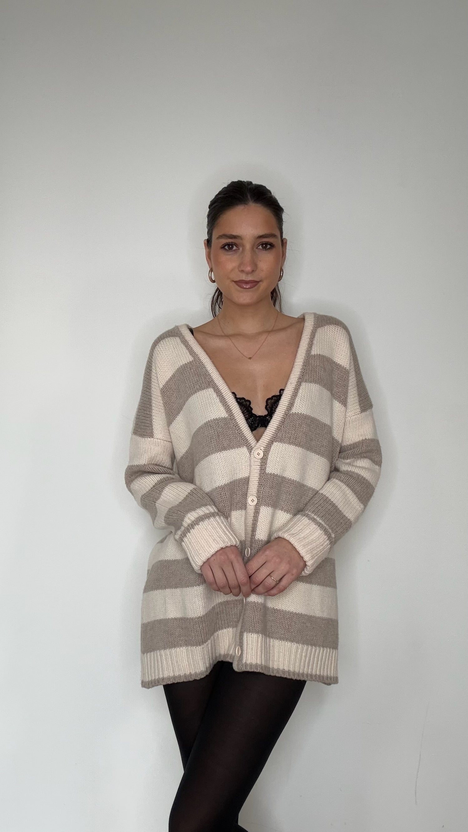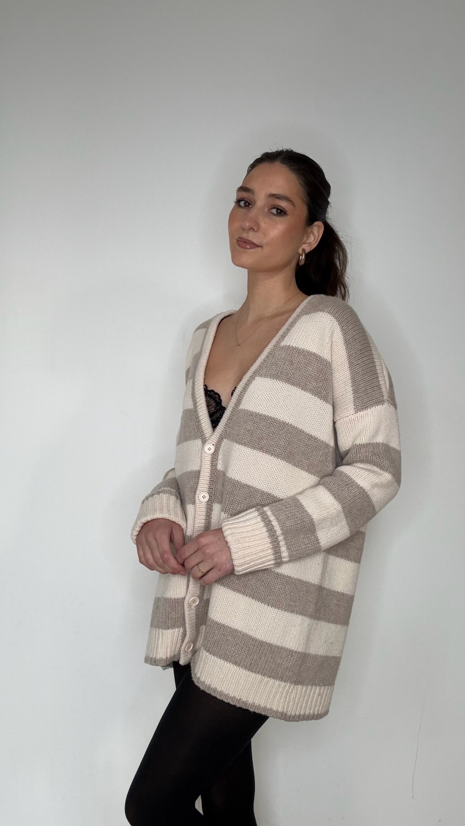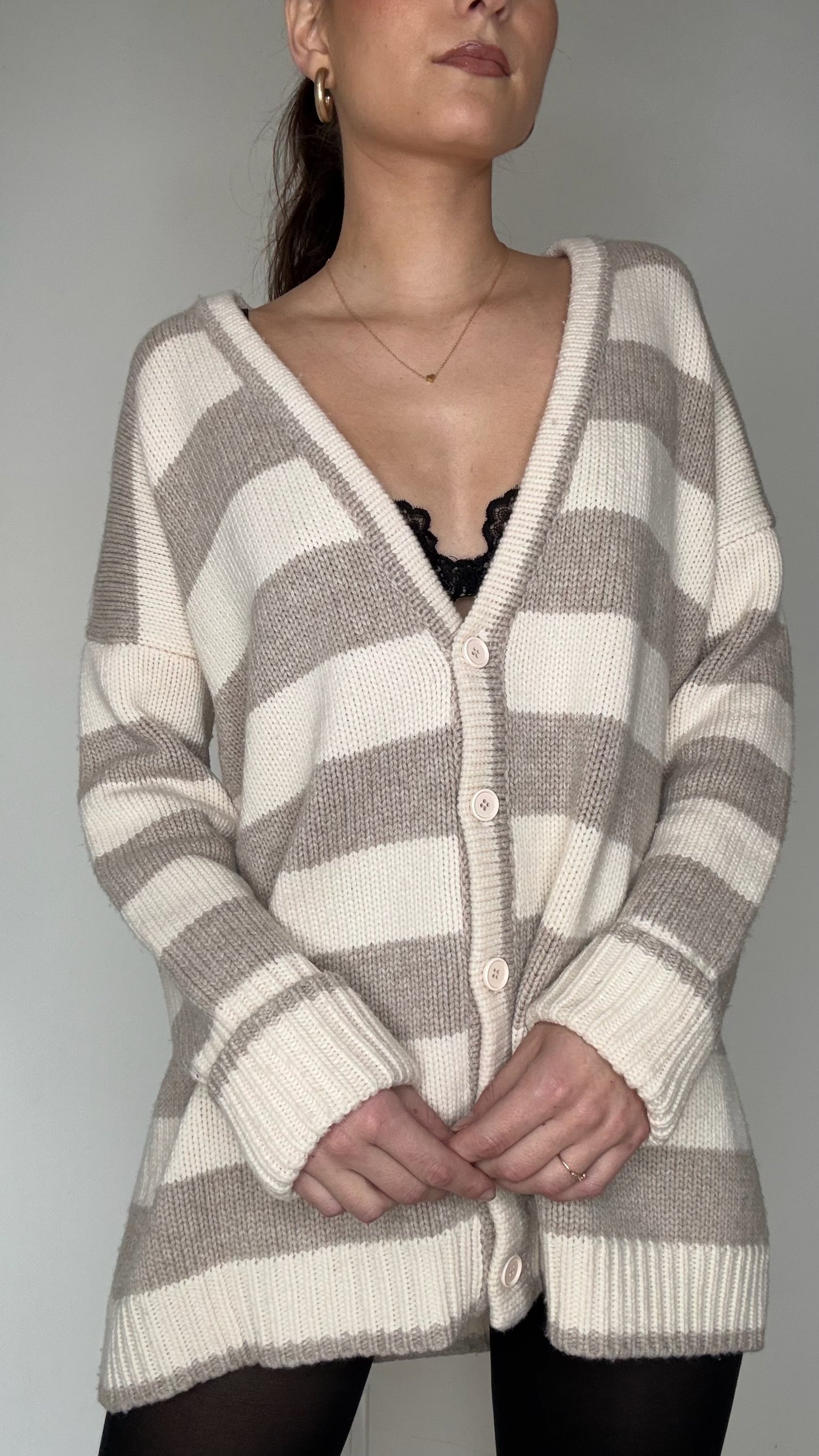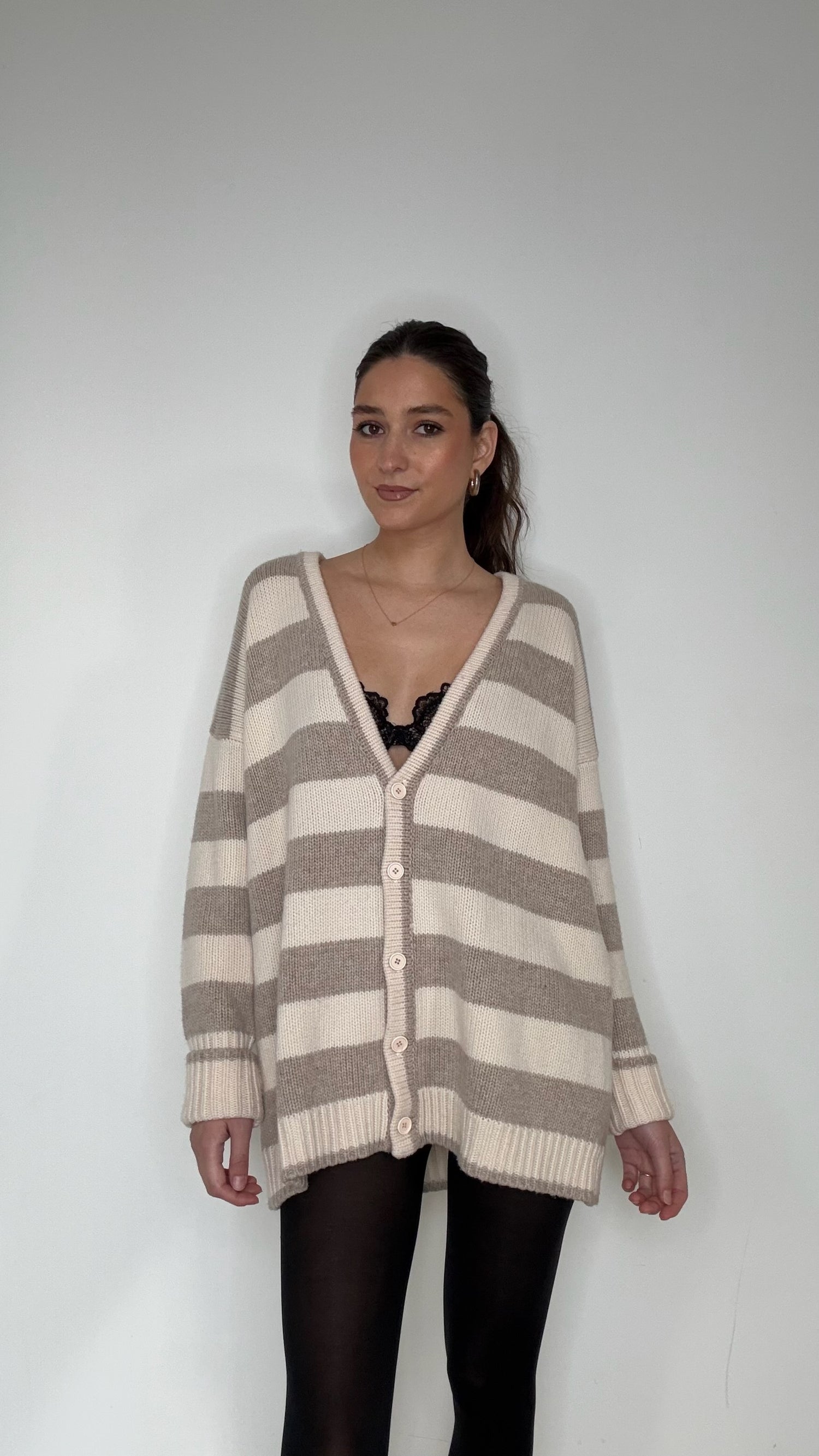 La Ligne knit cardigan. Oversized. Cream and taupe. Button closure at front. Designer size XS.