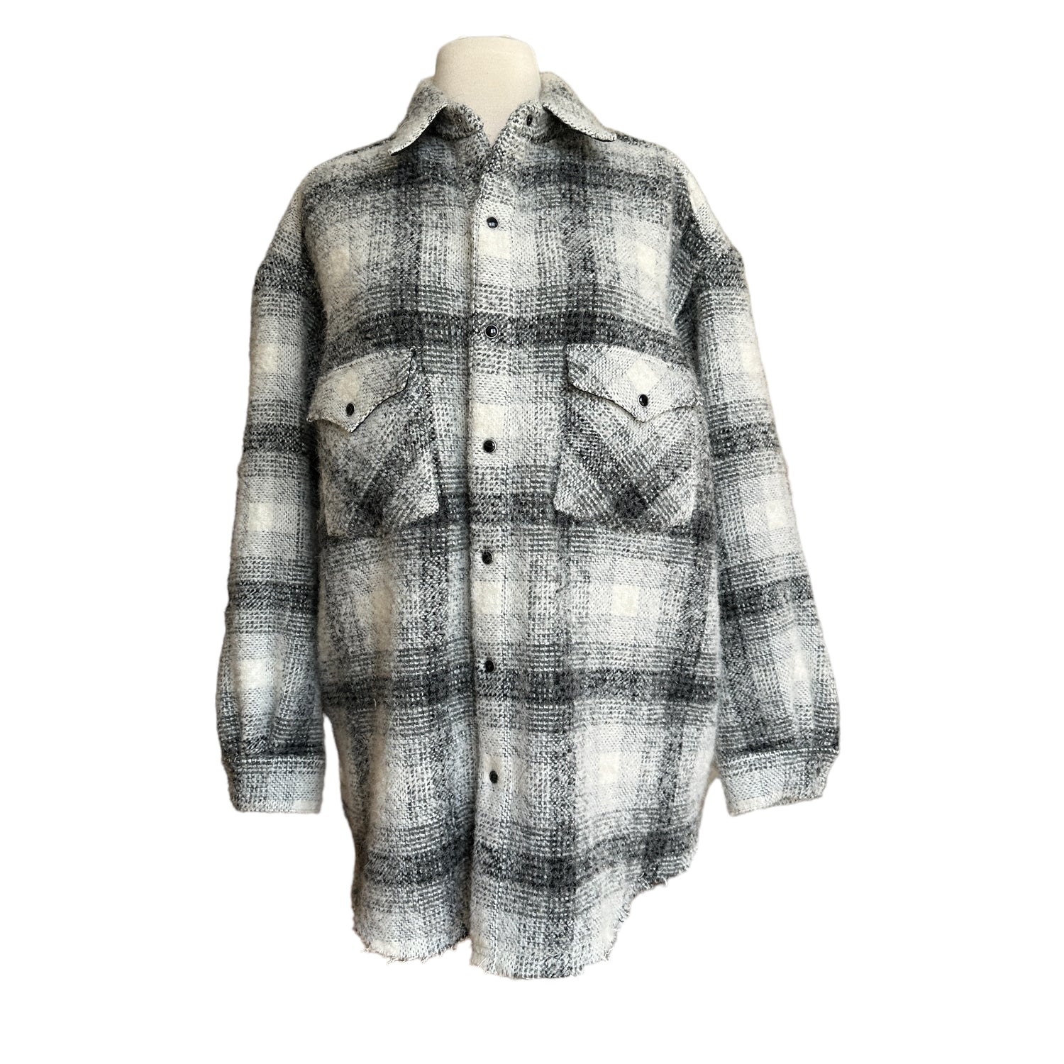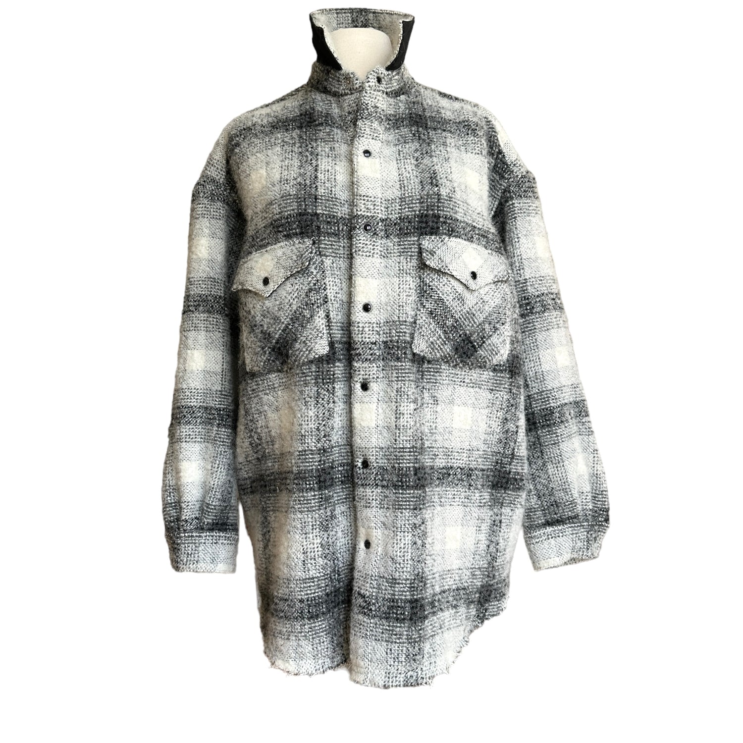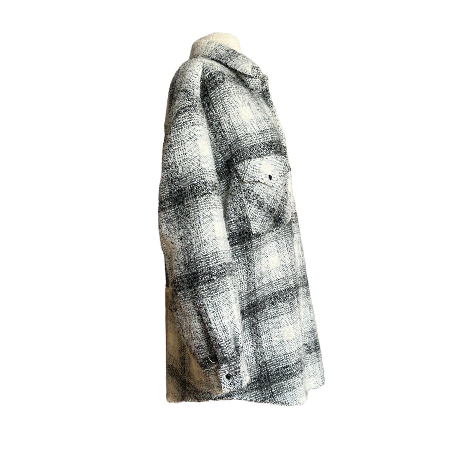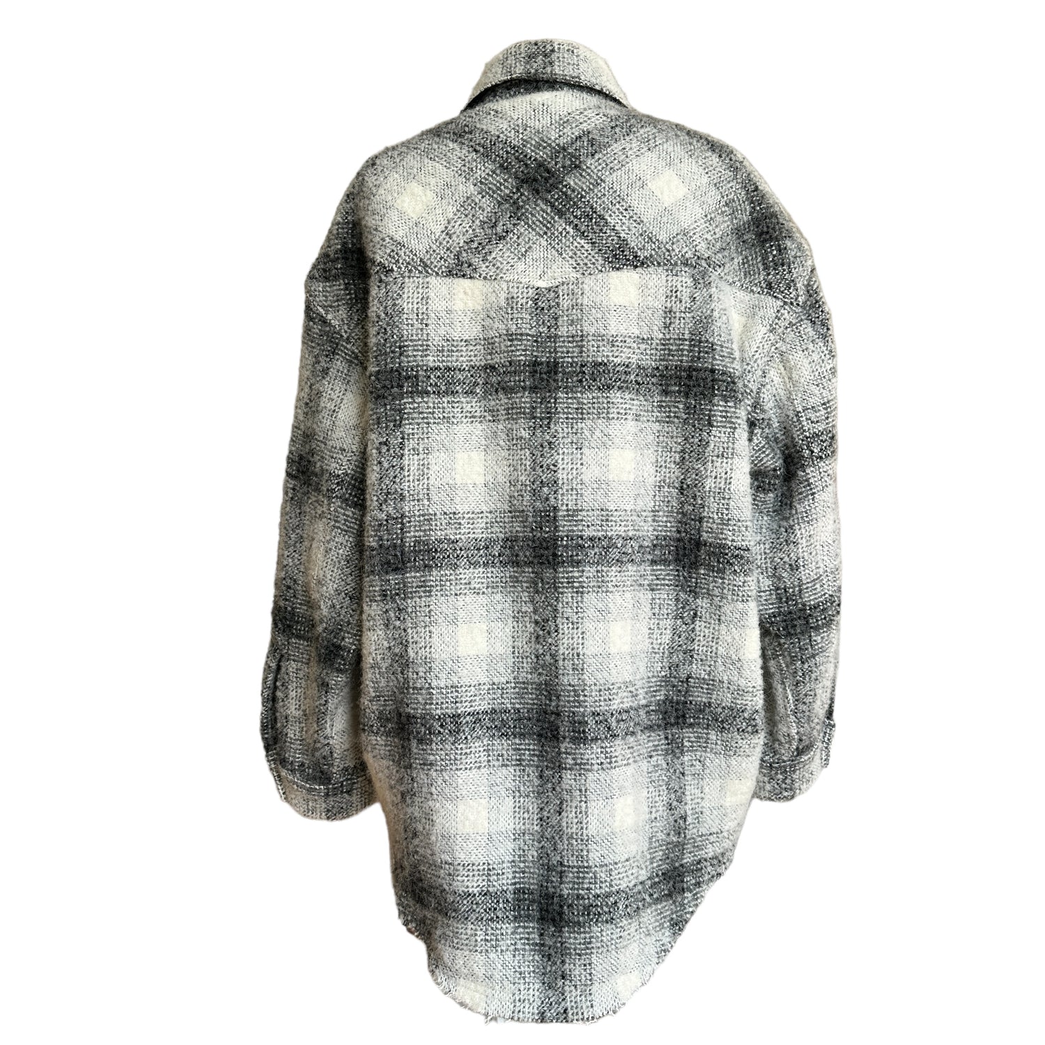 IRO plaid jacket. Snap button closure at front. Pointed collar. Two flap pockets. Designer size 36.