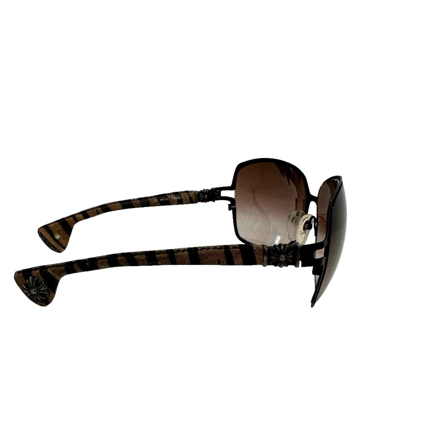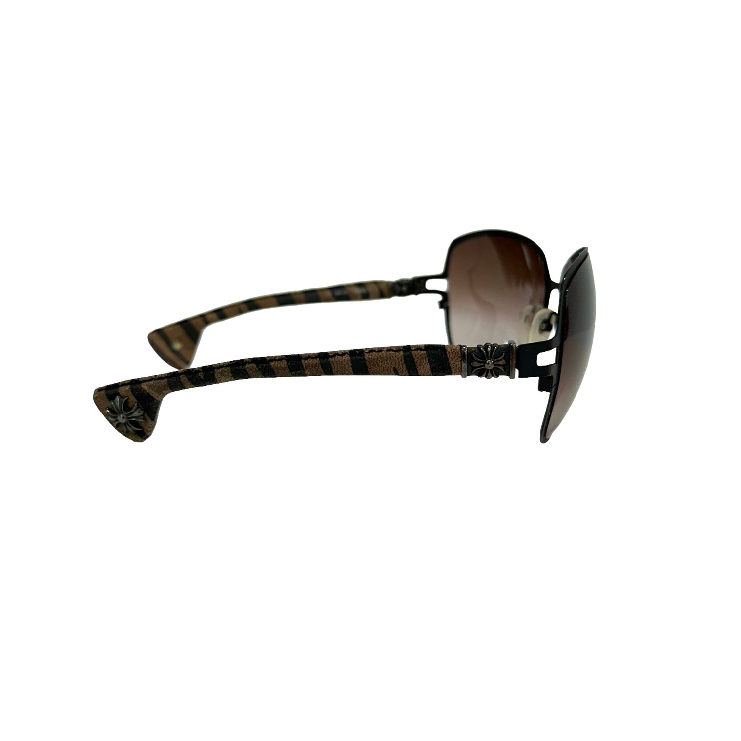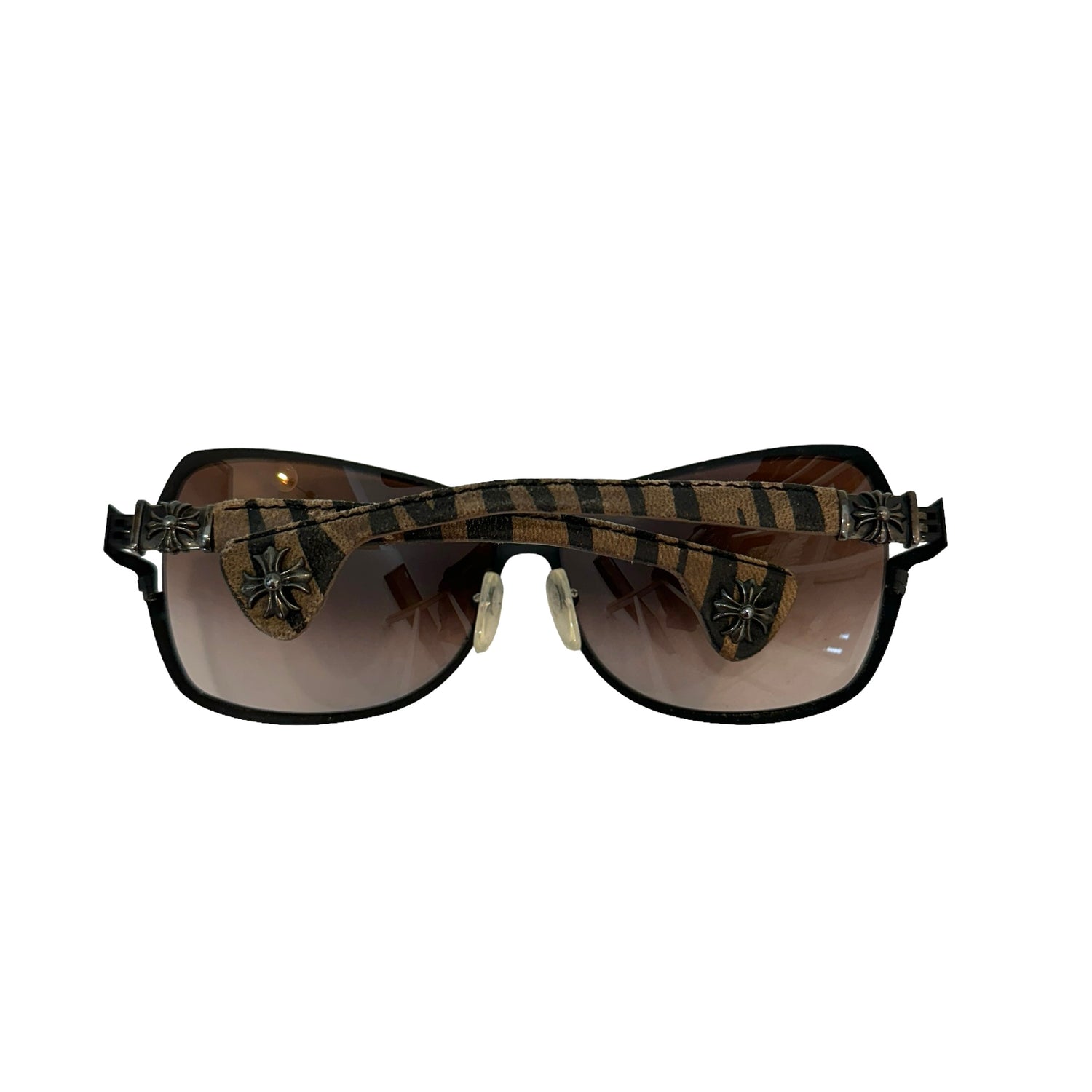 Chrome Hearts sunglasses. Zebra suede branches with silver-tone crosses. Lightweight. Oversized.