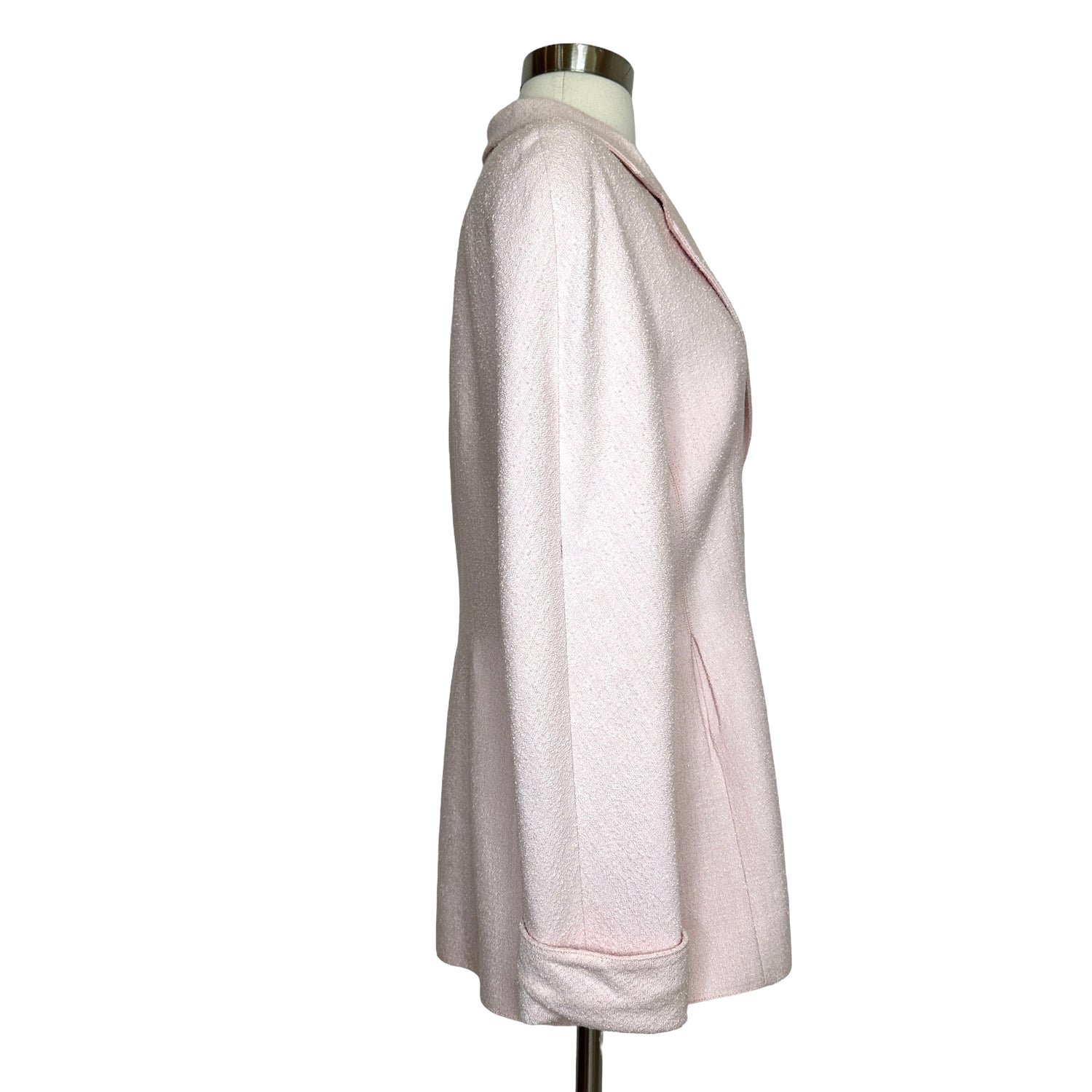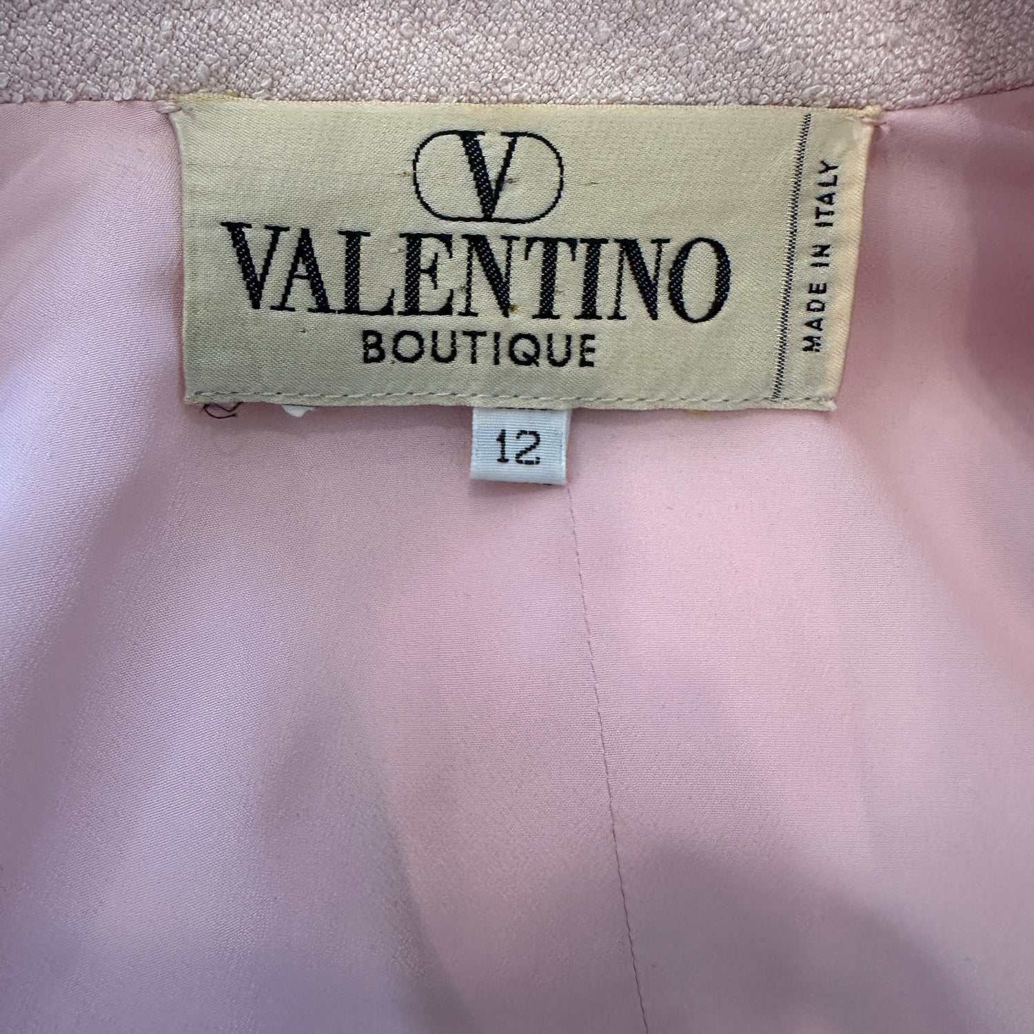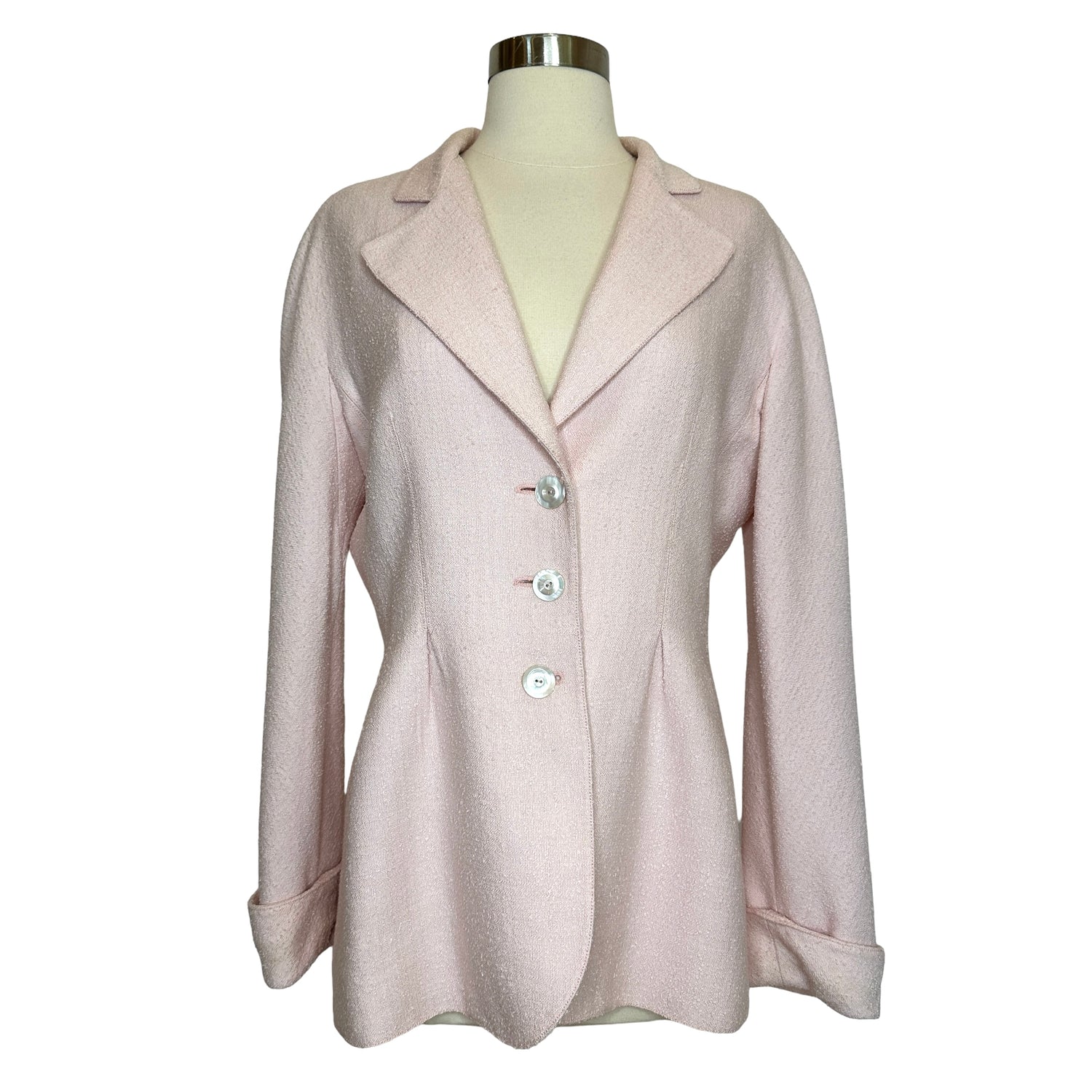 Valentino vintage blazer. Light pink. Pointed collar. Mother-of-pearl large buttons. Designer size 12.