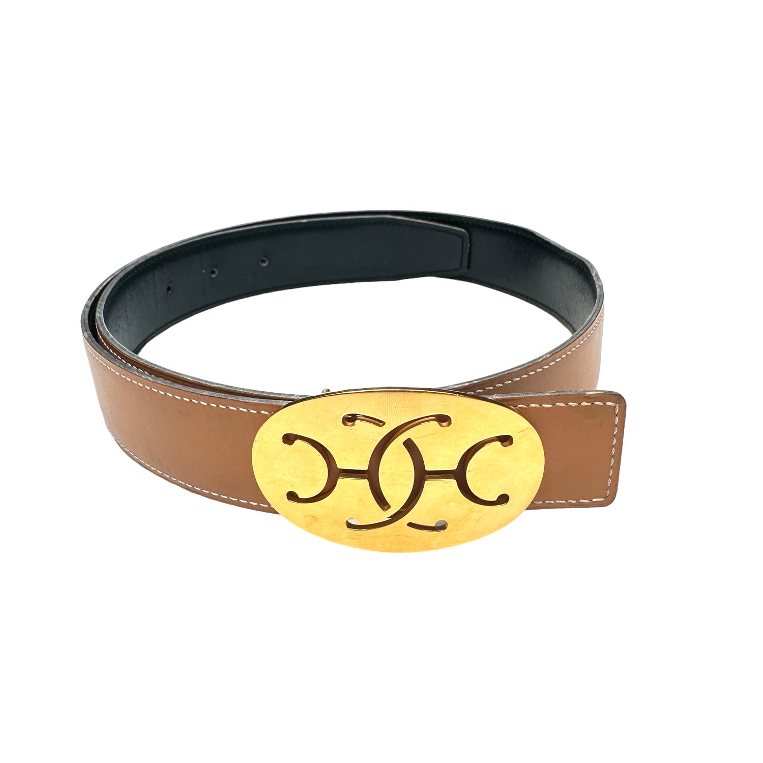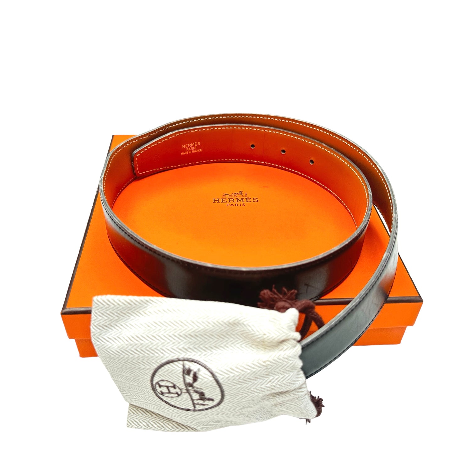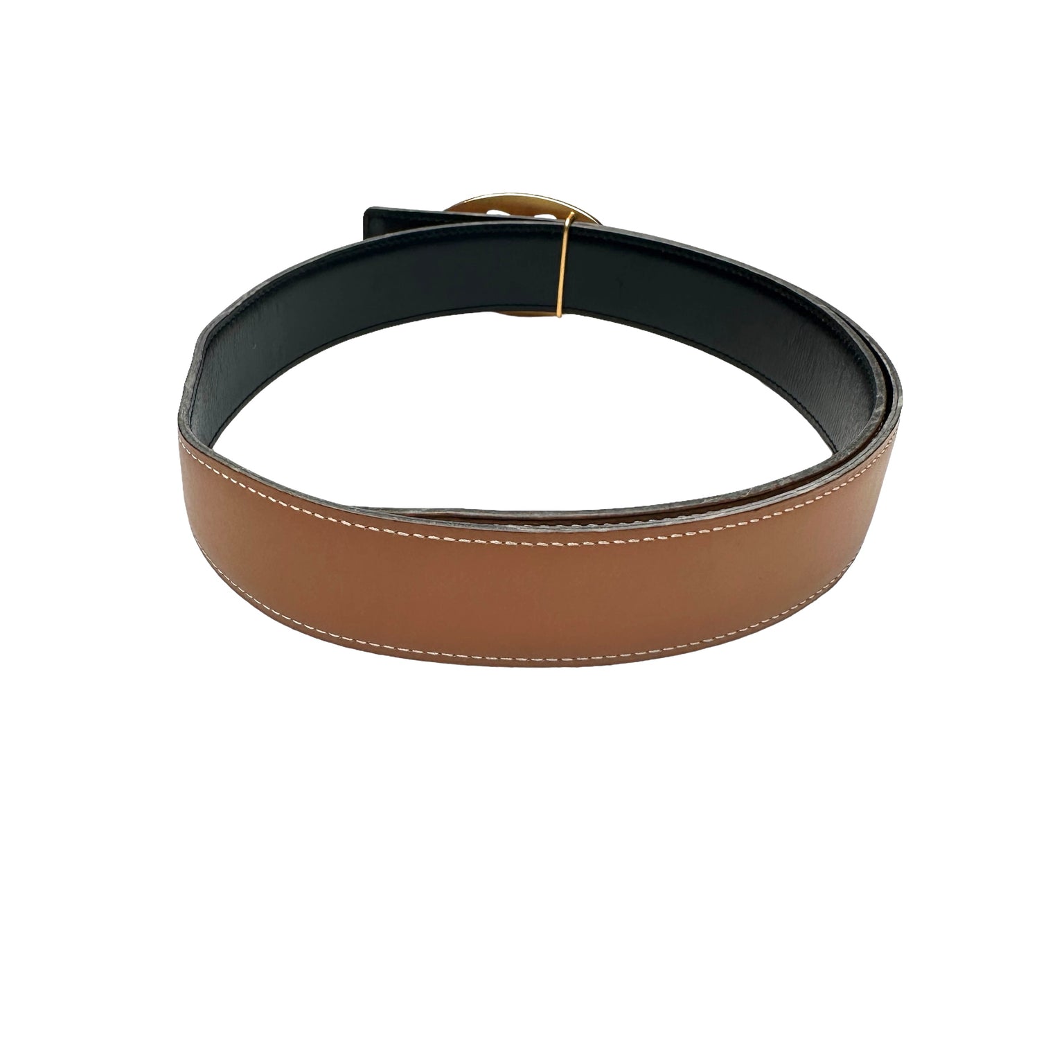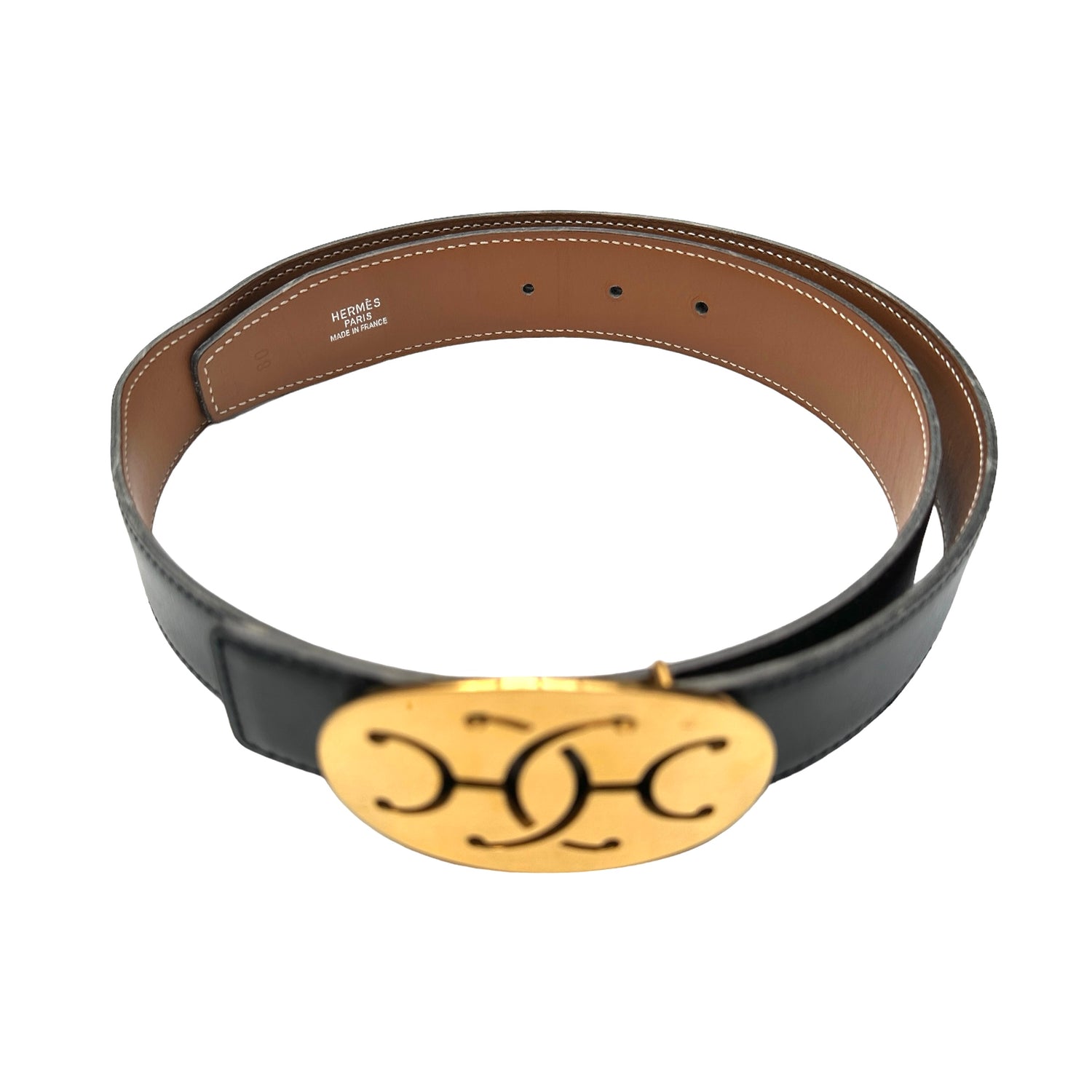 Hermes Philippine belt. Reversible black and gold leather. Gold-tone Peg-in-hole closure. 80 cm.
