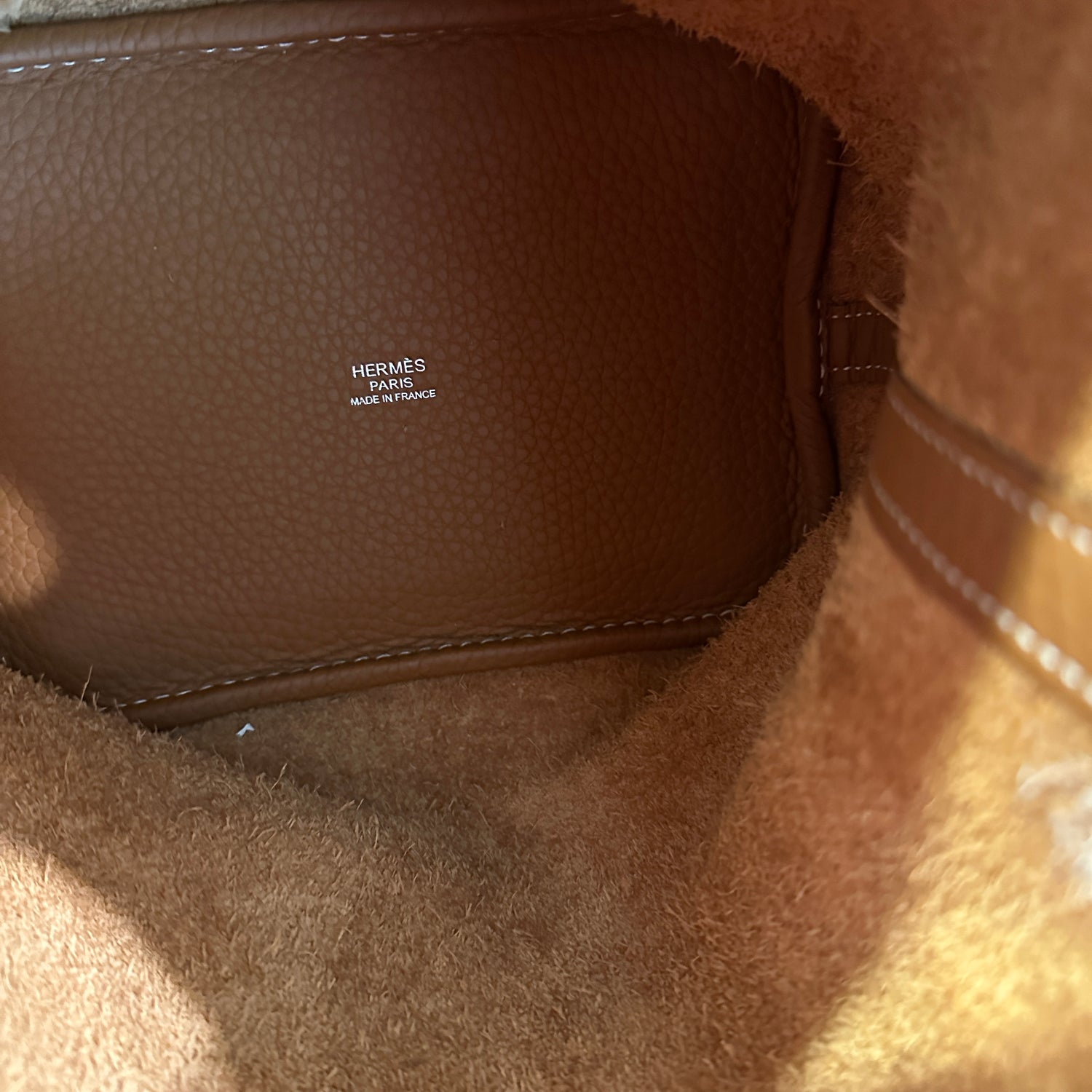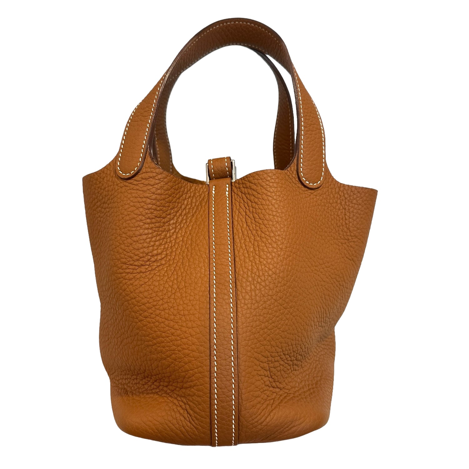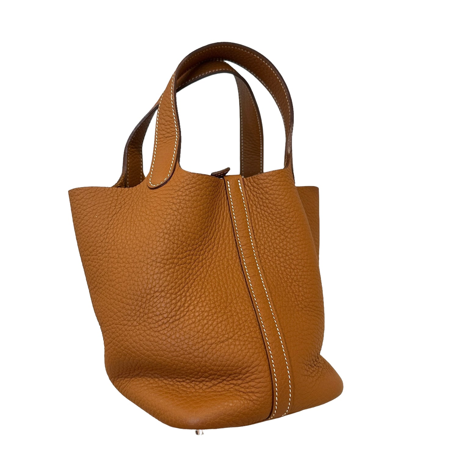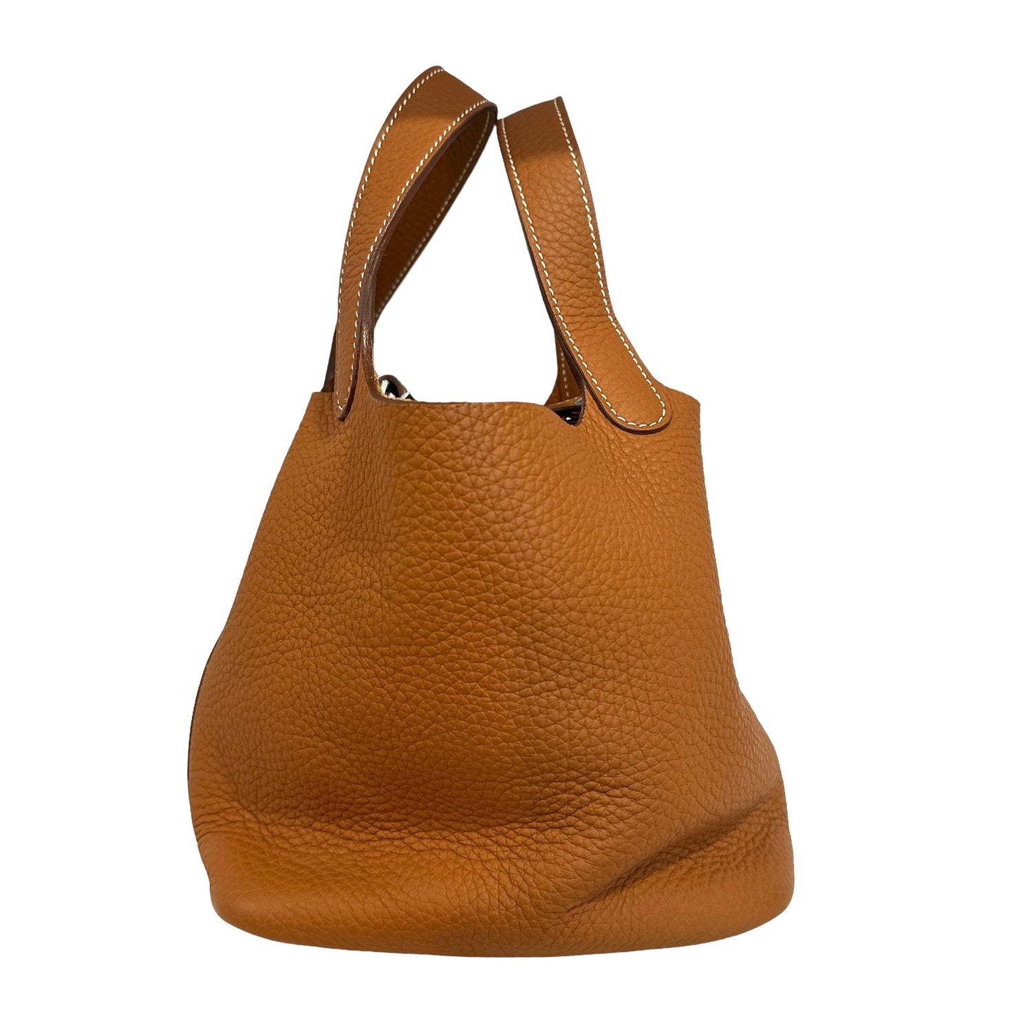Hermes Picotin 18 bag. Gold togo leather. Silver-tone hardware. Double flat handle.