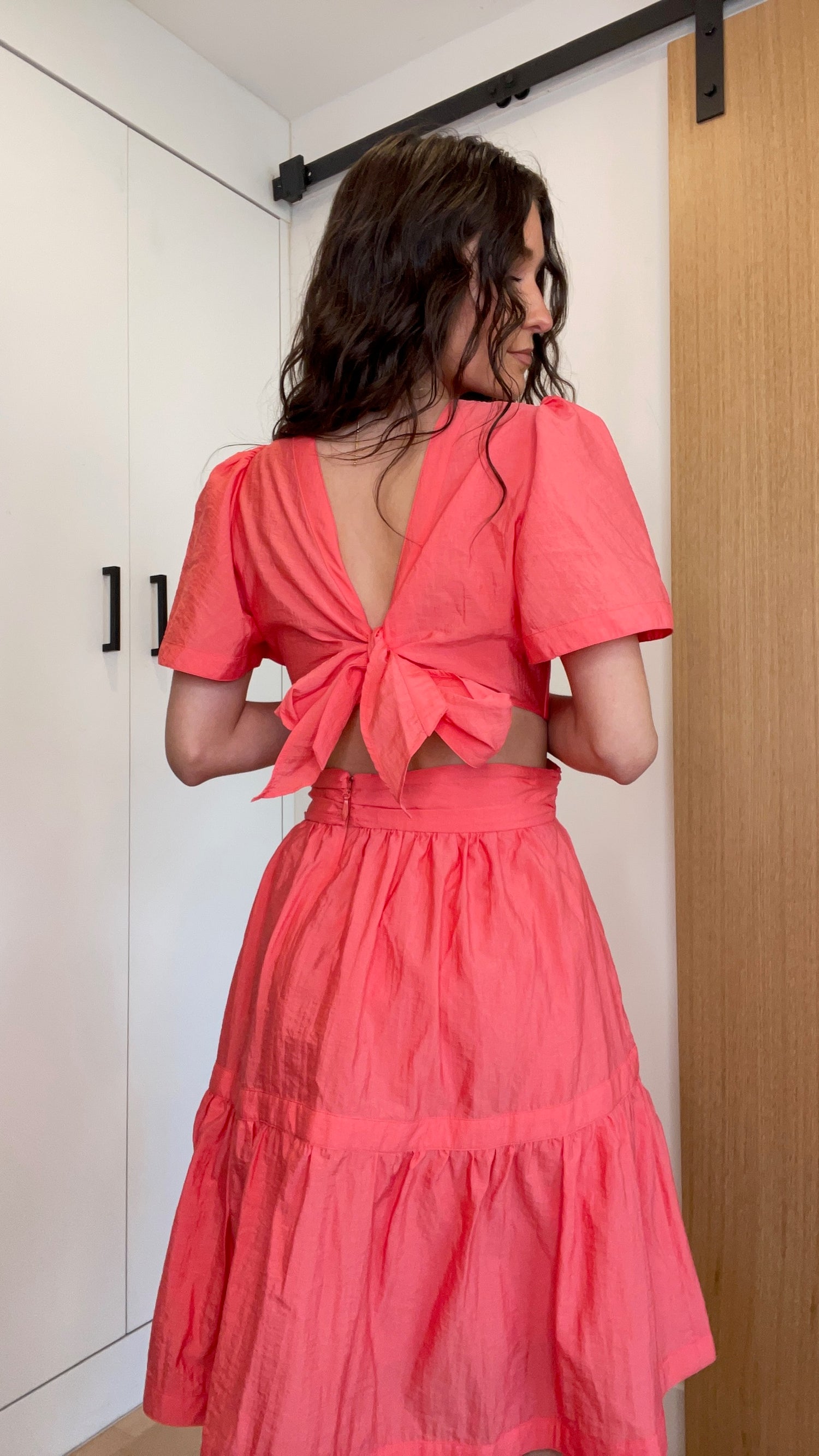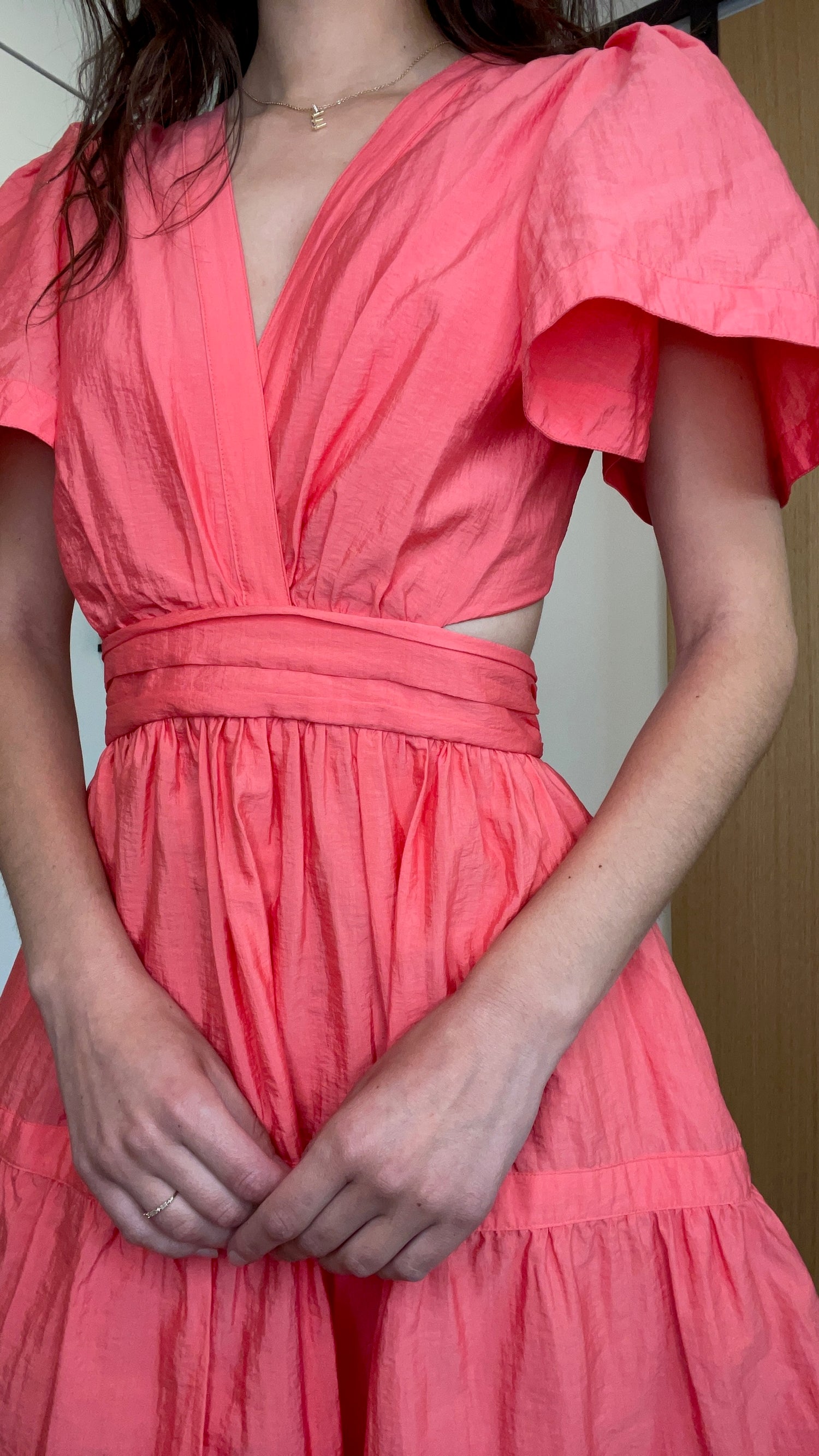Cinq a Sept Pink dress. Cutout at back. Adjustable tie at back. Designer size 12.